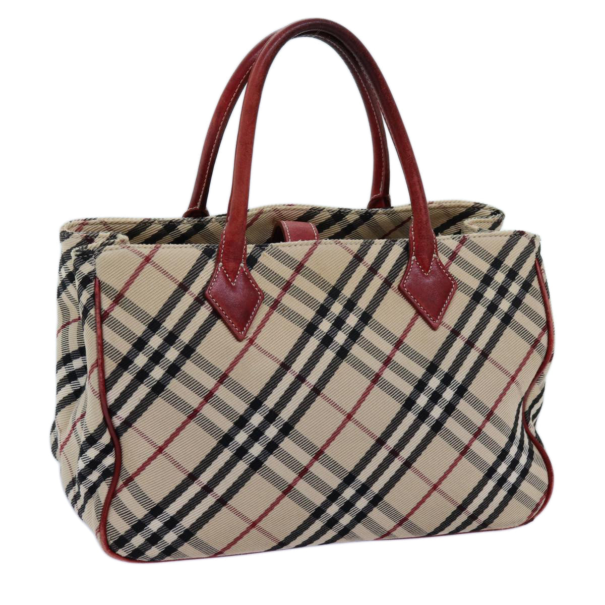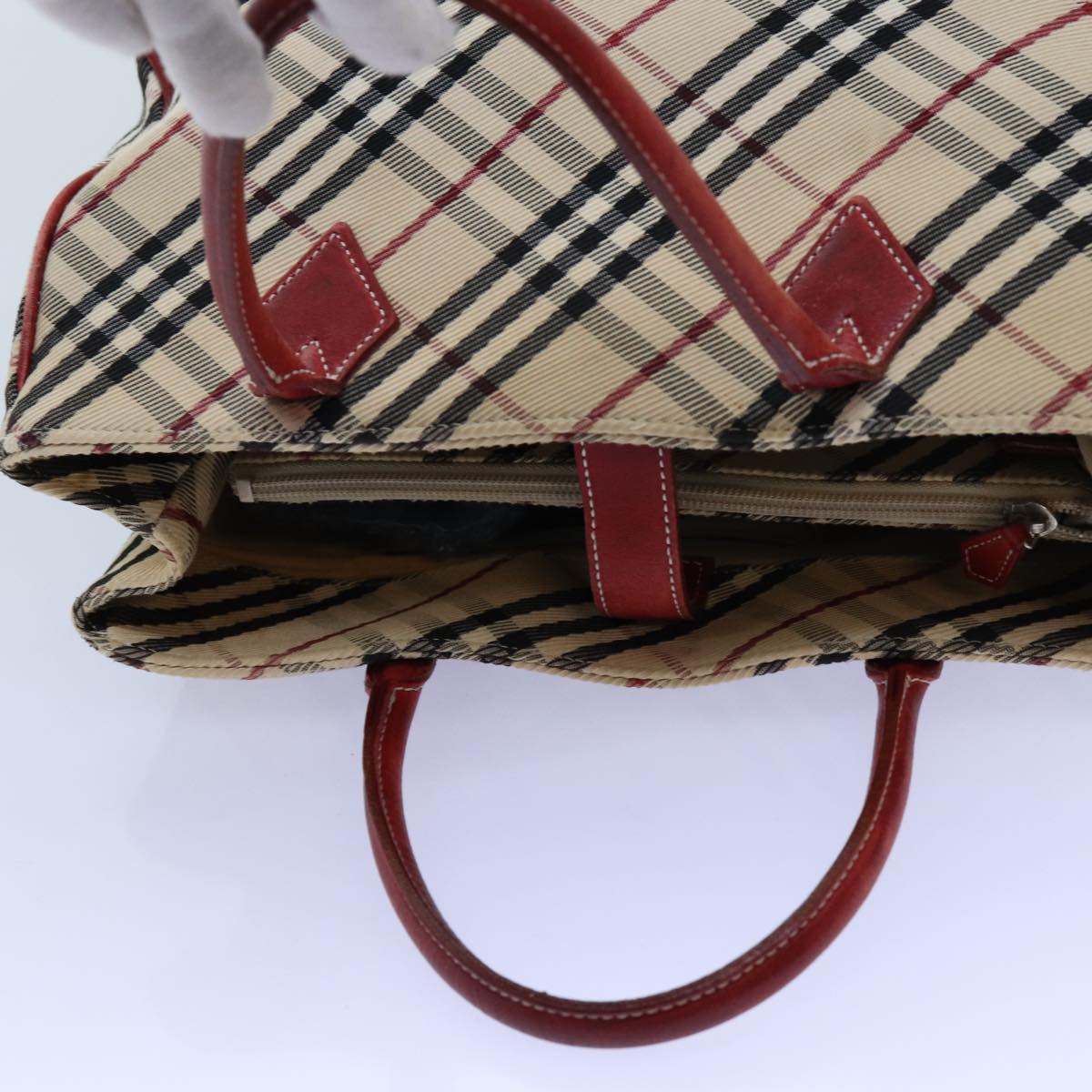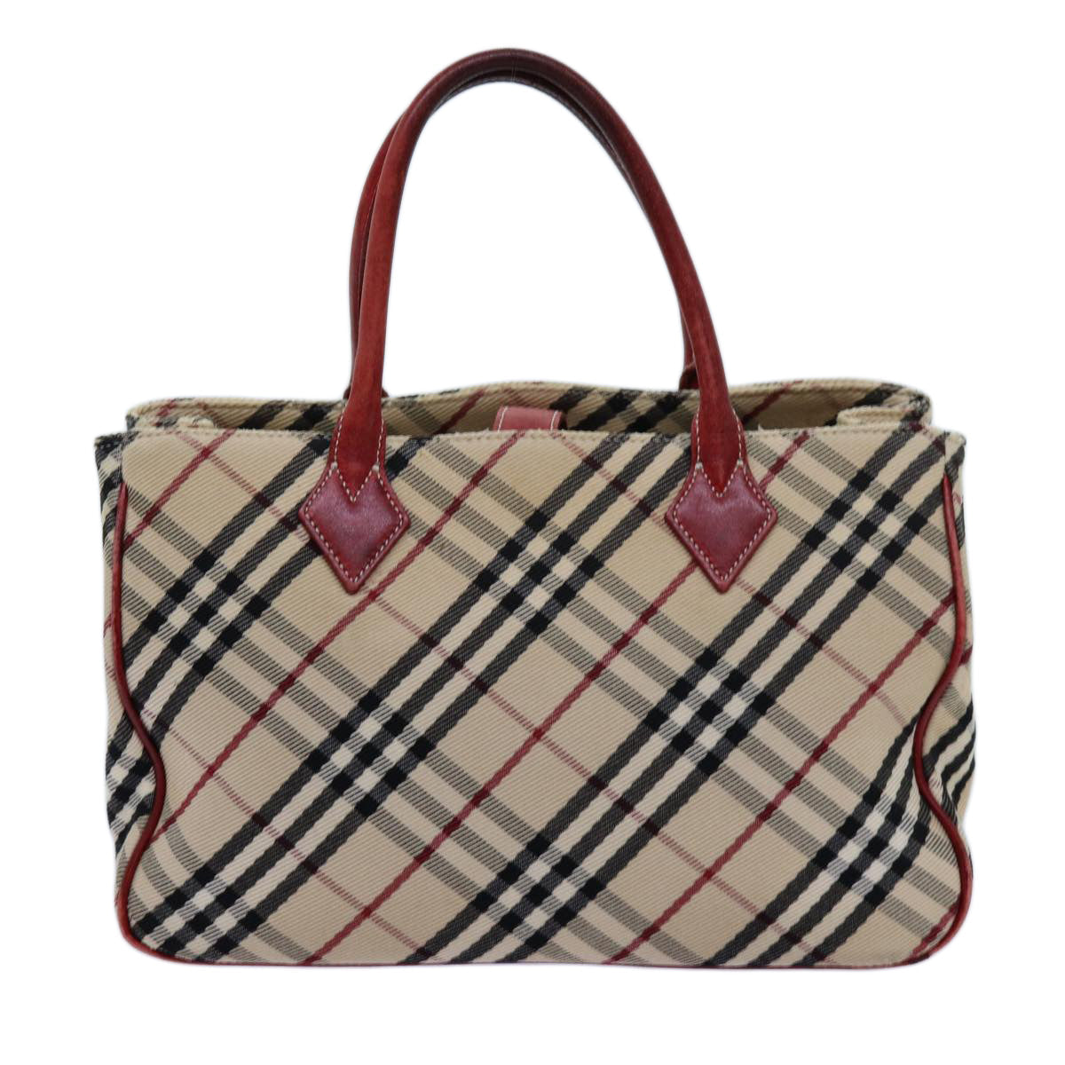 BURBERRY Nova Check Blue Label Hand Bag Canvas Beige Red Auth bs13814