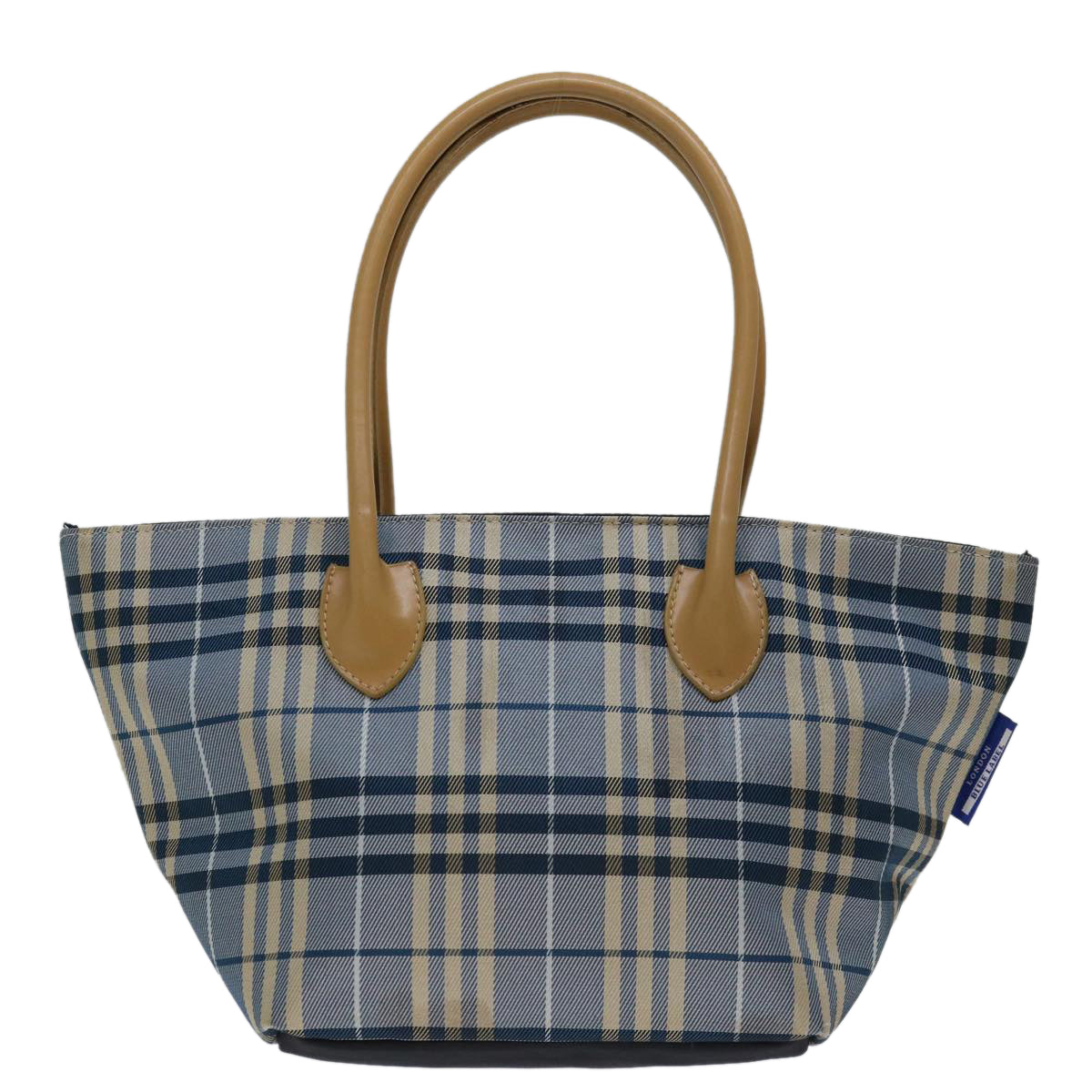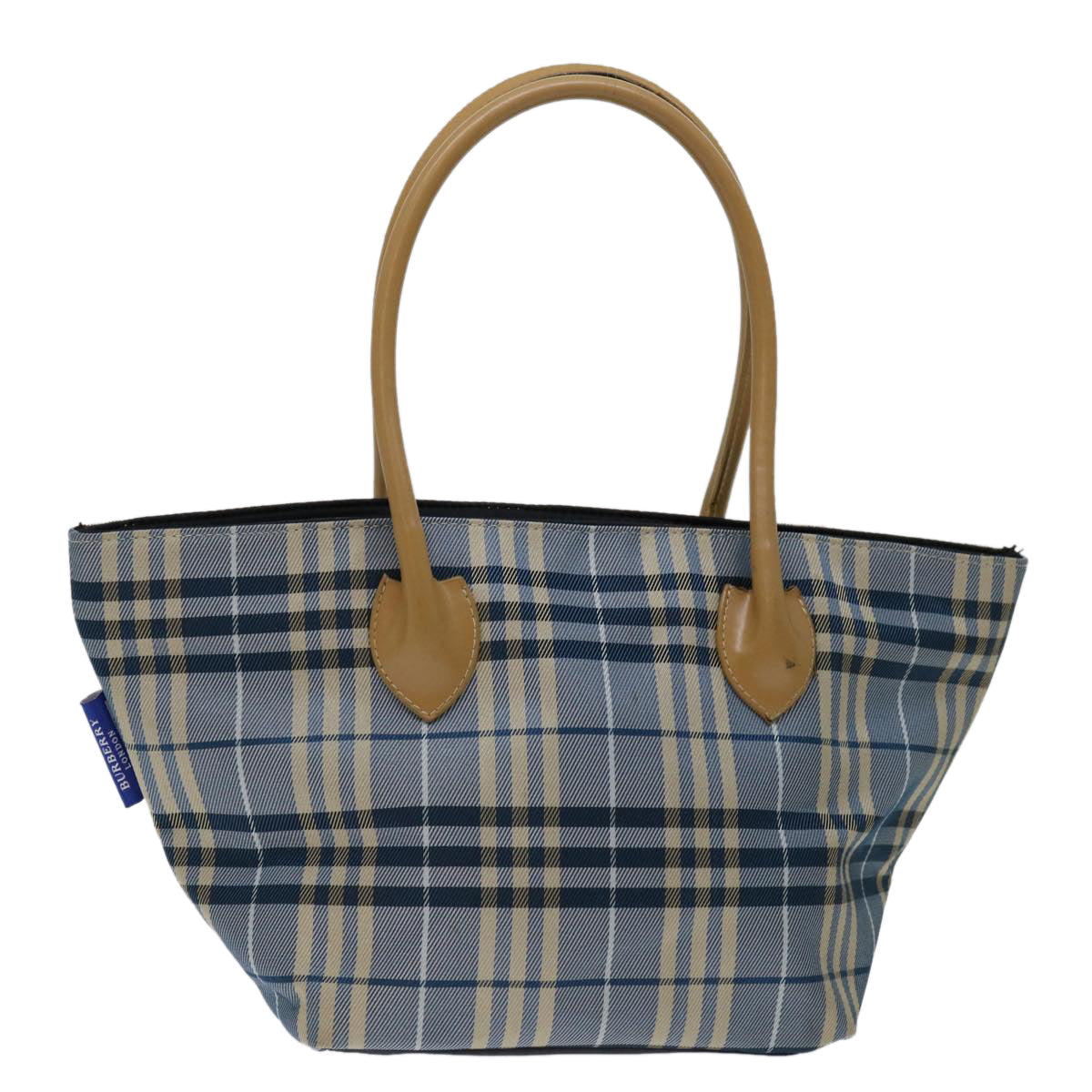 BURBERRY Nova Check Blue Label Hand Bag Canvas Light Blue Beige Auth bs12781