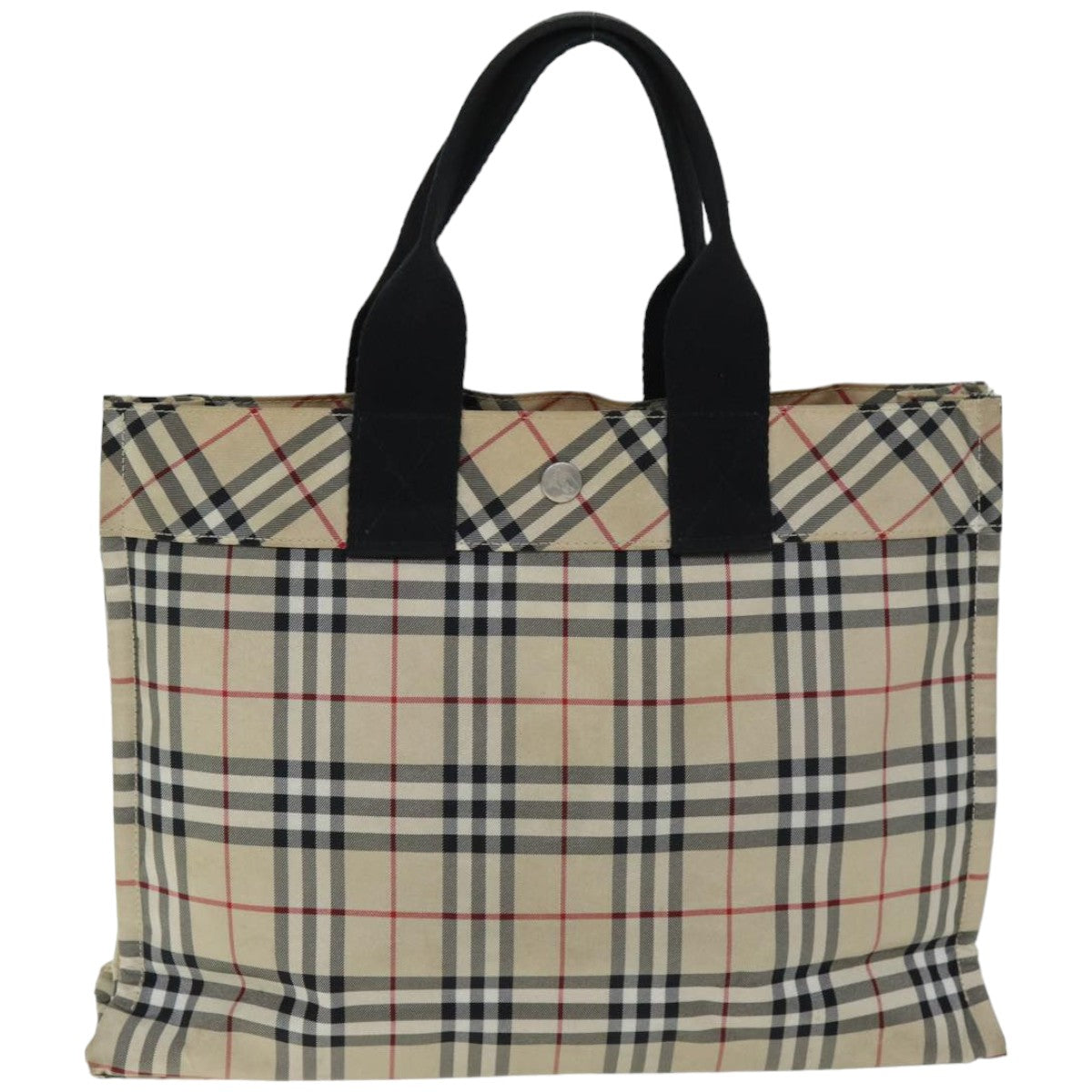 BURBERRY Nova Check Blue Label Hand Bag Nylon Beige Auth yk12680