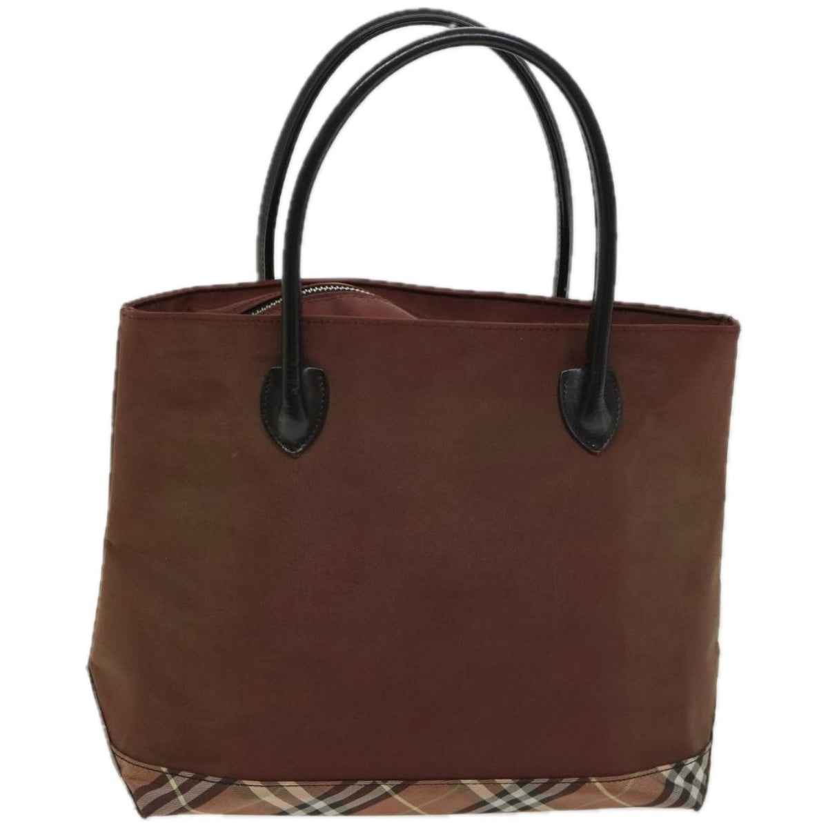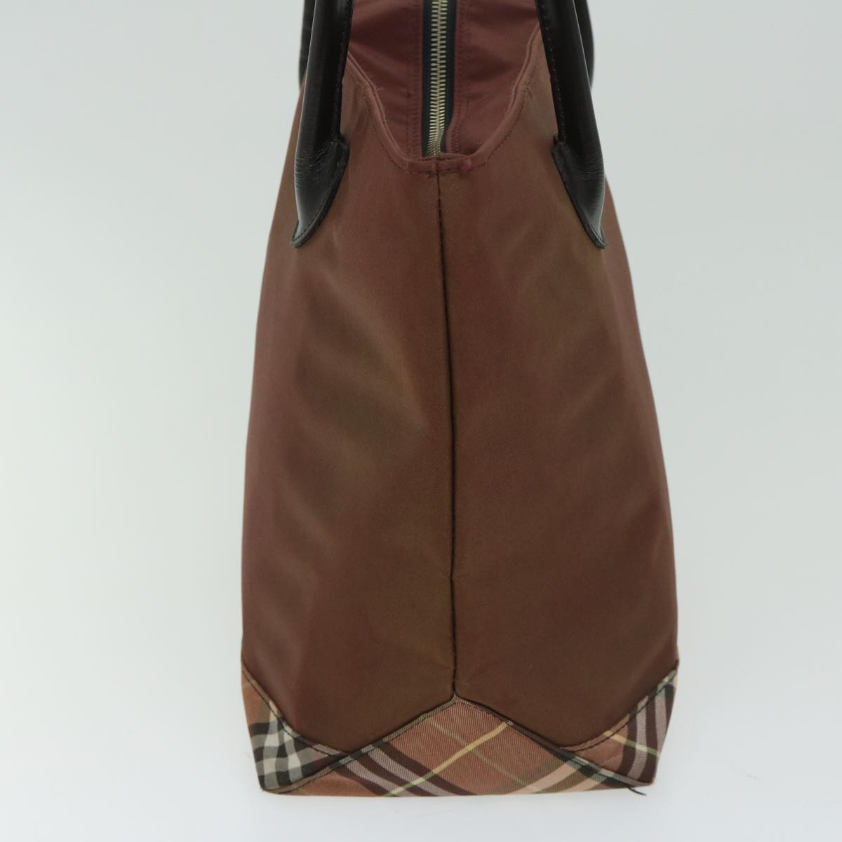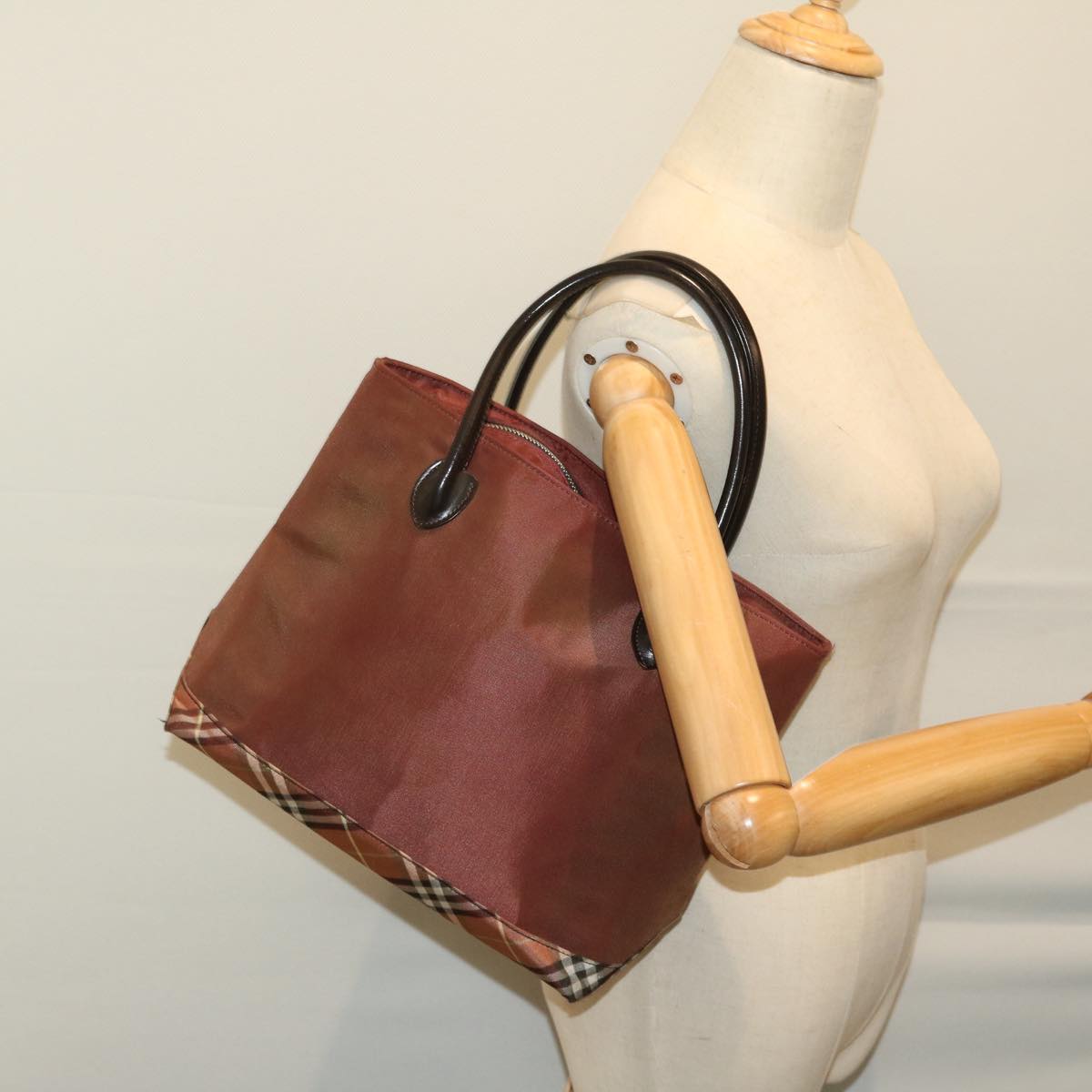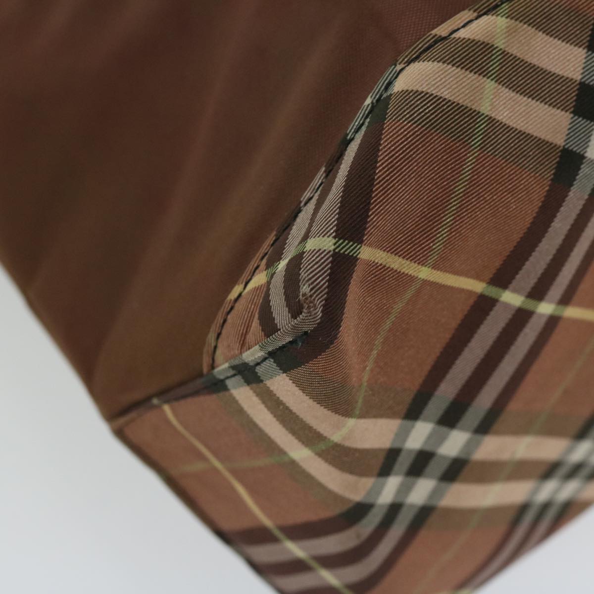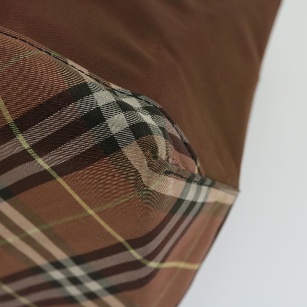 BURBERRY Nova Check Blue Label Hand Bag Nylon Brown Auth 67082