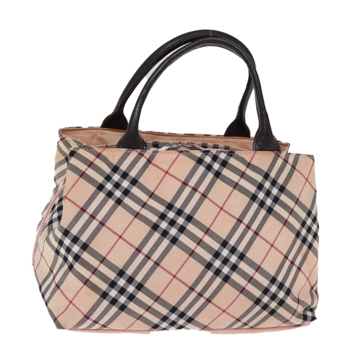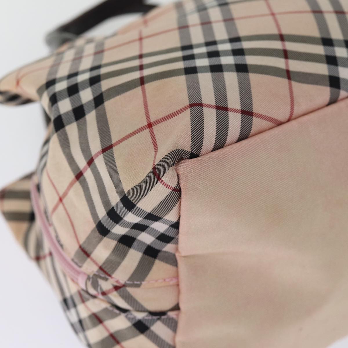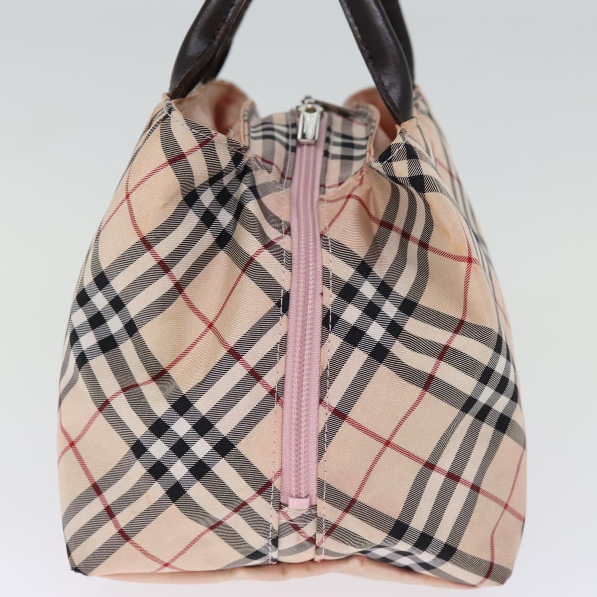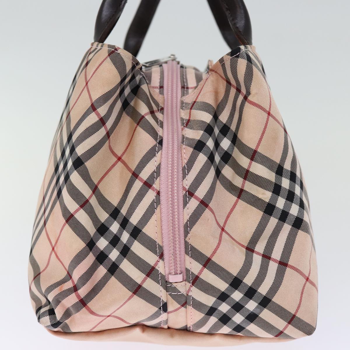 BURBERRY Nova Check Blue Label Hand Bag Nylon Pink Auth bs14256