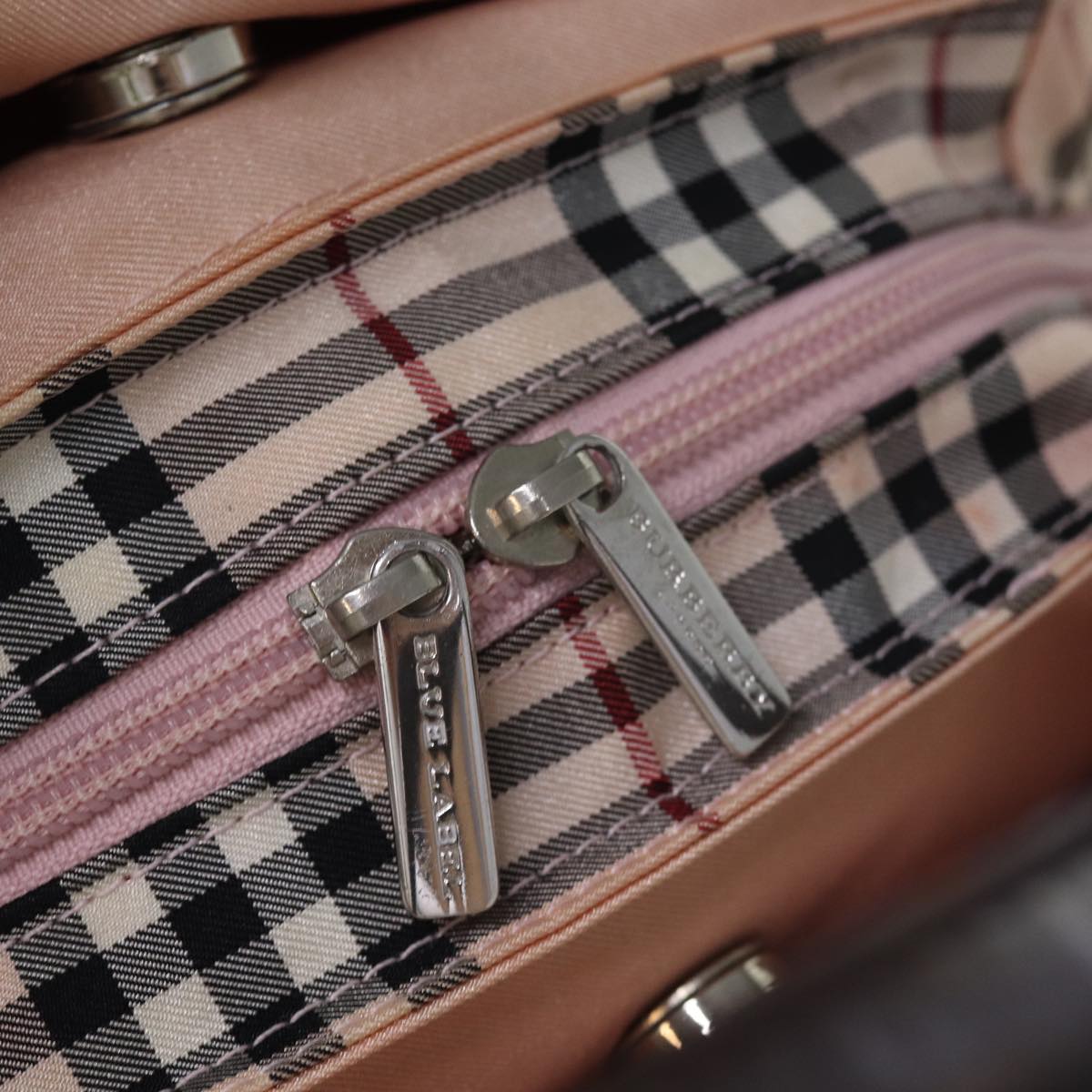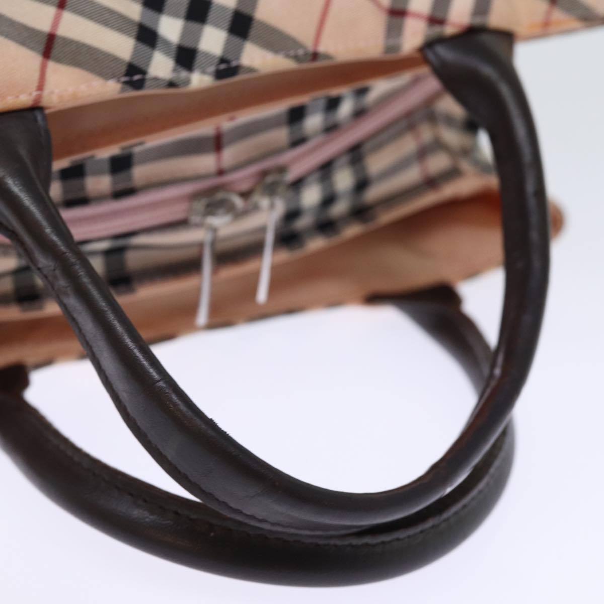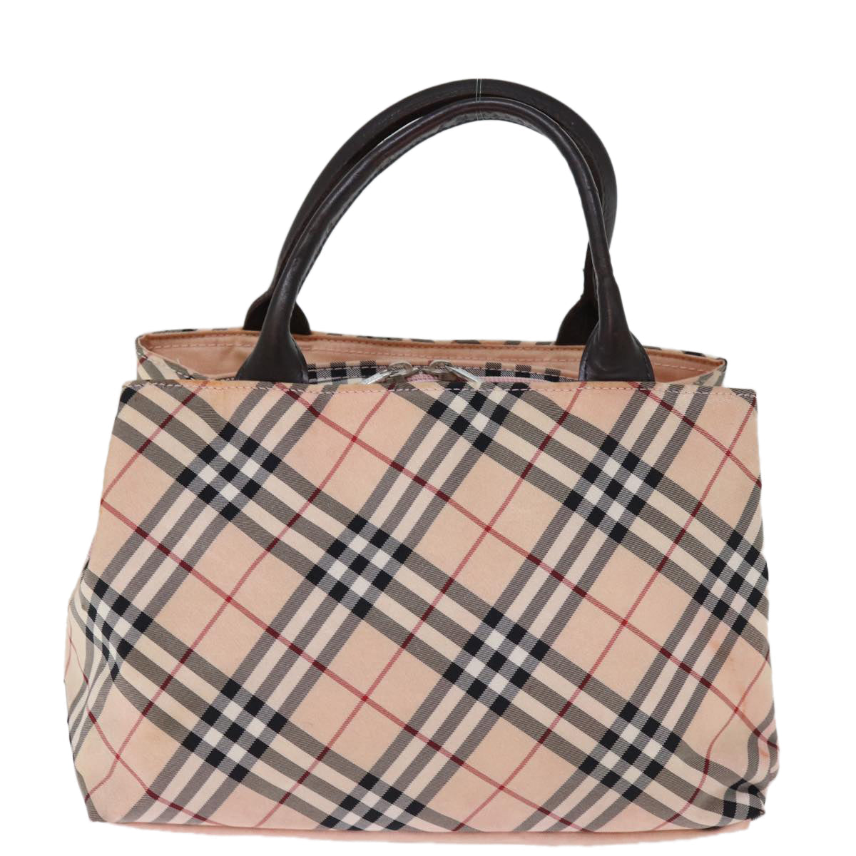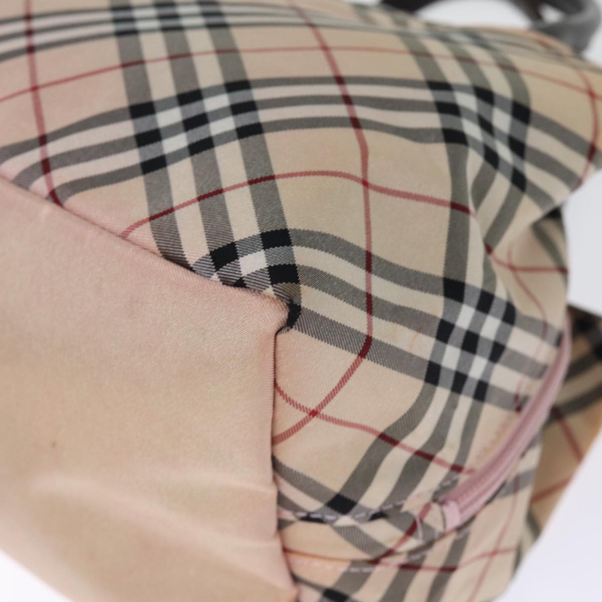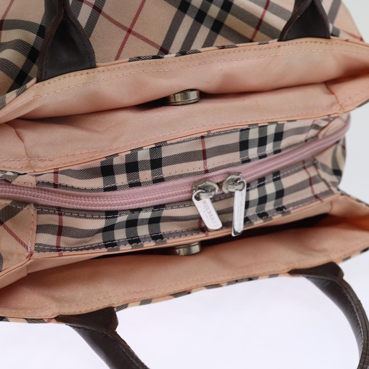 BURBERRY Nova Check Blue Label Hand Bag Nylon Pink Auth bs14256