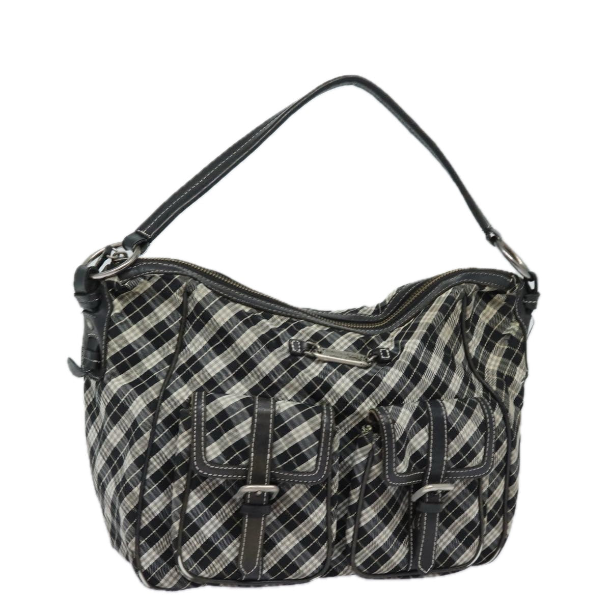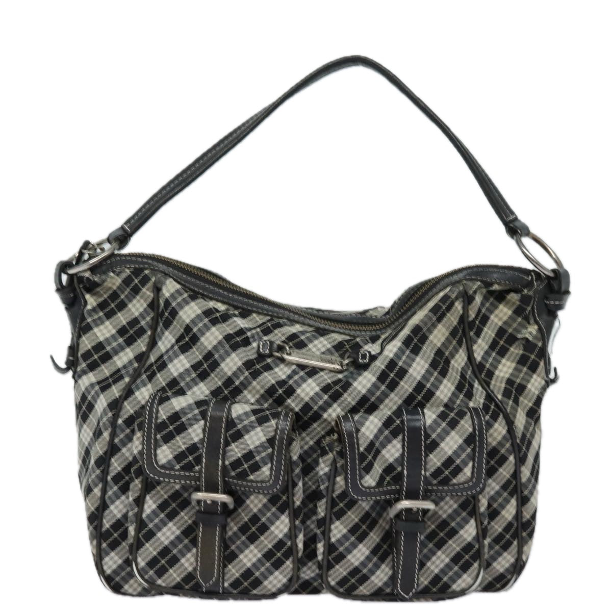 BURBERRY Nova Check Blue Label Shoulder Bag Canvas Black Auth 81677