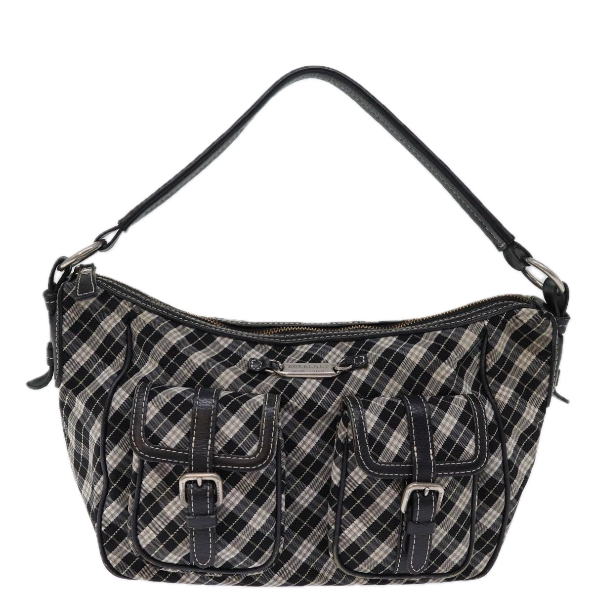BURBERRY Nova Check Blue Label Shoulder Bag Canvas Black Auth bs14510