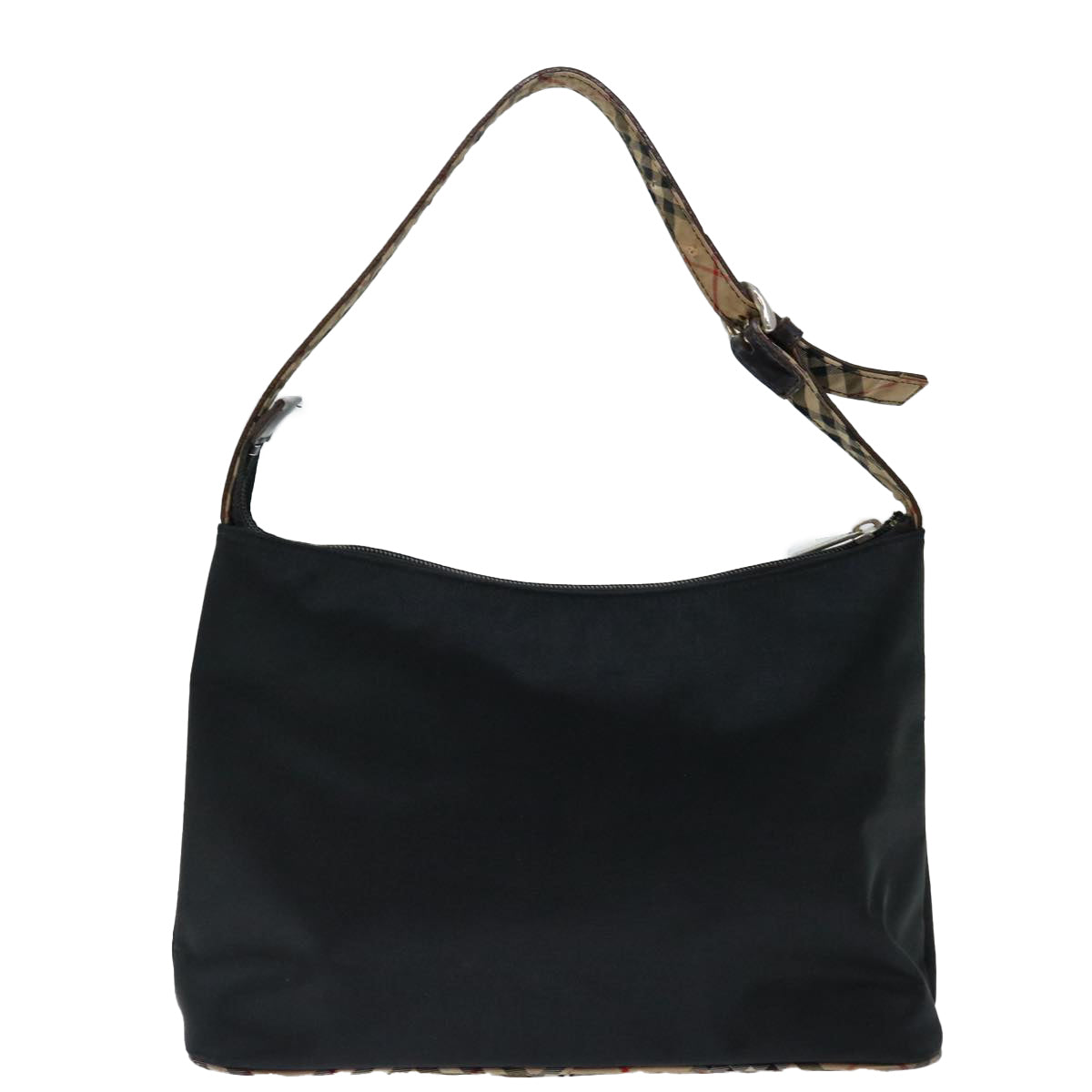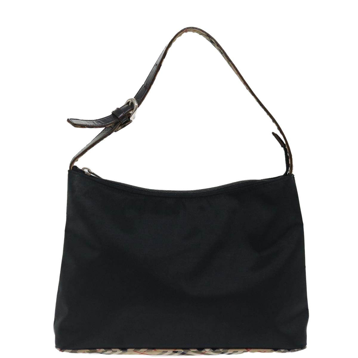 BURBERRY Nova Check Blue Label Shoulder Bag Nylon Beige Black Auth bs13514