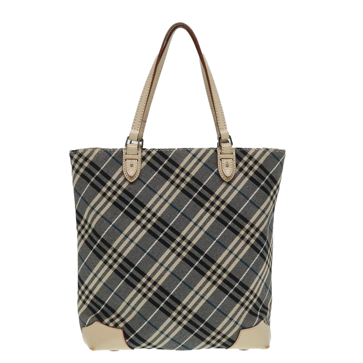 Burberry Nova Check Blue Label Tote Bag Canvas Blue Silver Auth bs17615