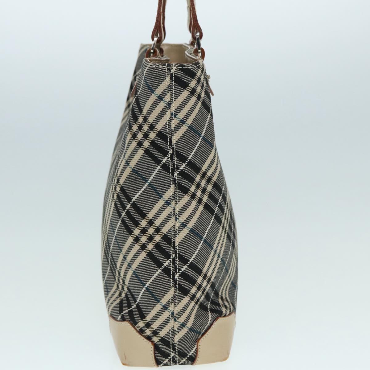BURBERRY Nova Check Blue Label Tote Bag Canvas Blue Silver Auth bs17615
