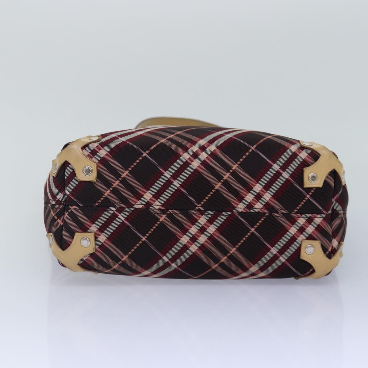 Burberry Nova Check Blue Label Tote Bag Canvas Red Silver Auth bs17113