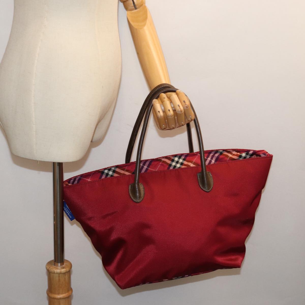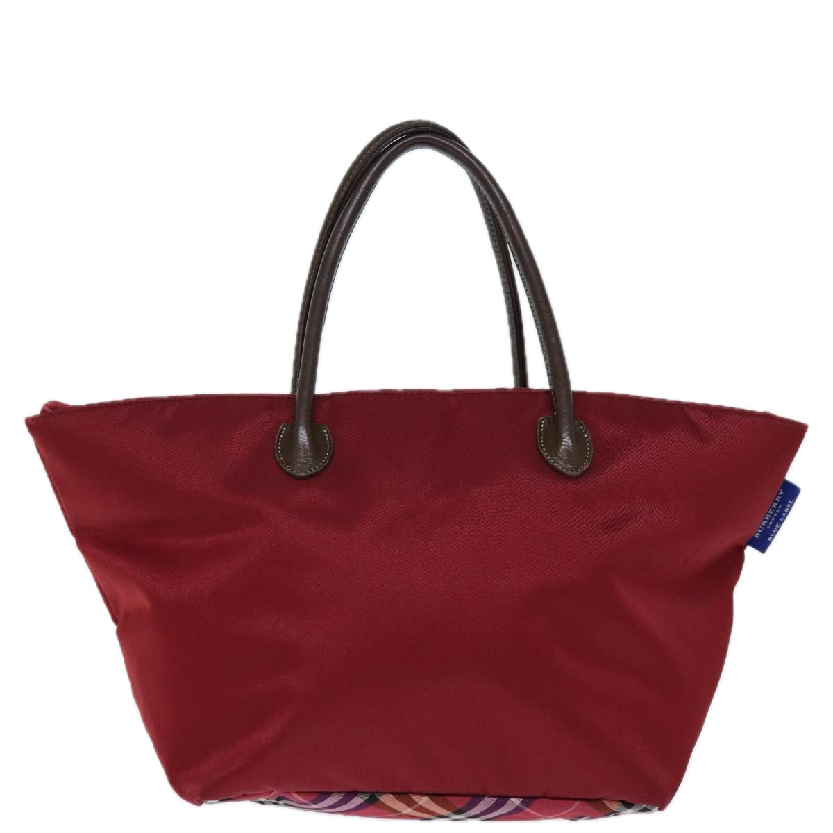 BURBERRY Nova Check Blue Label Tote Bag Nylon Red Auth bs14255