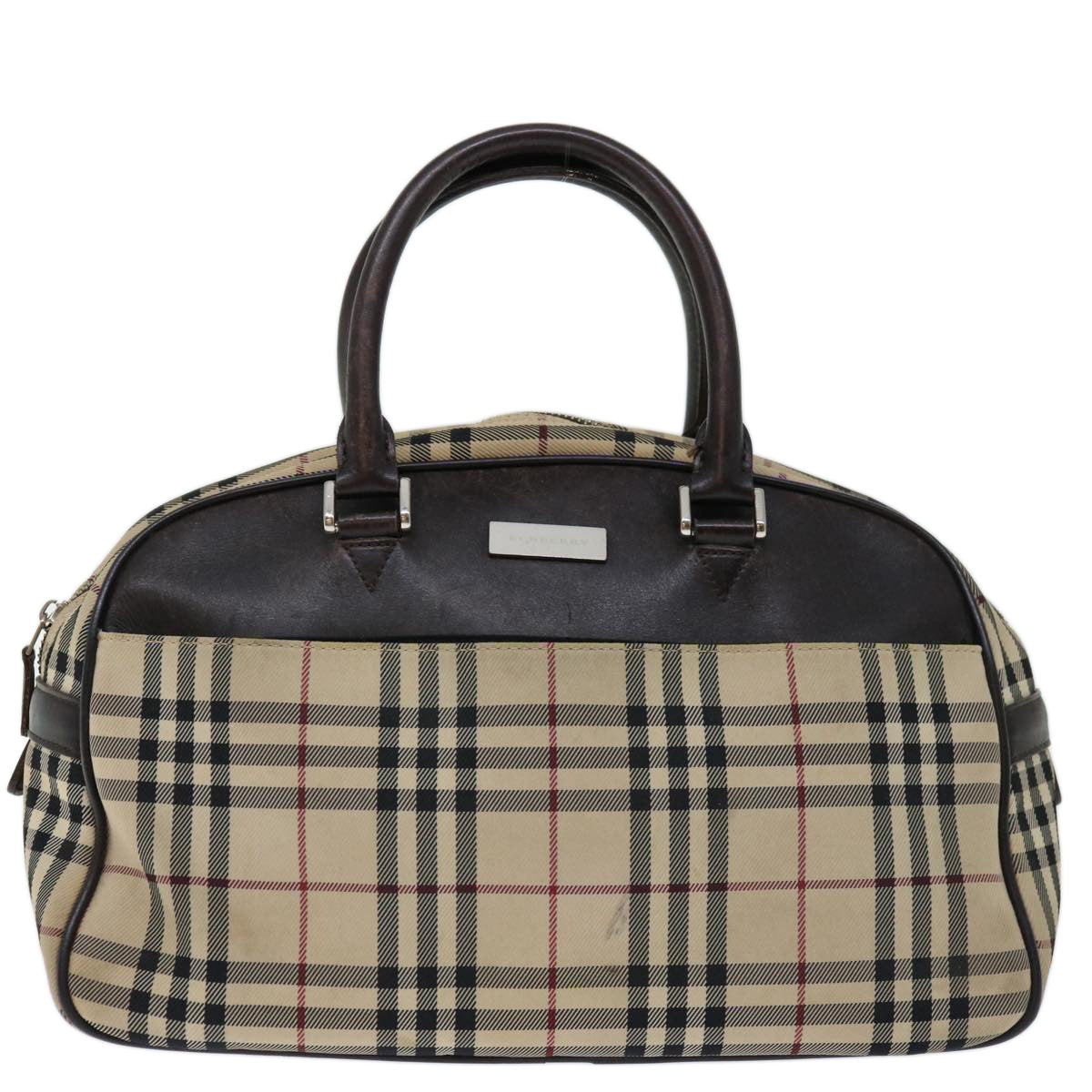 Burberry Nova Check Boston Bag Canvas Beige Auth 67656