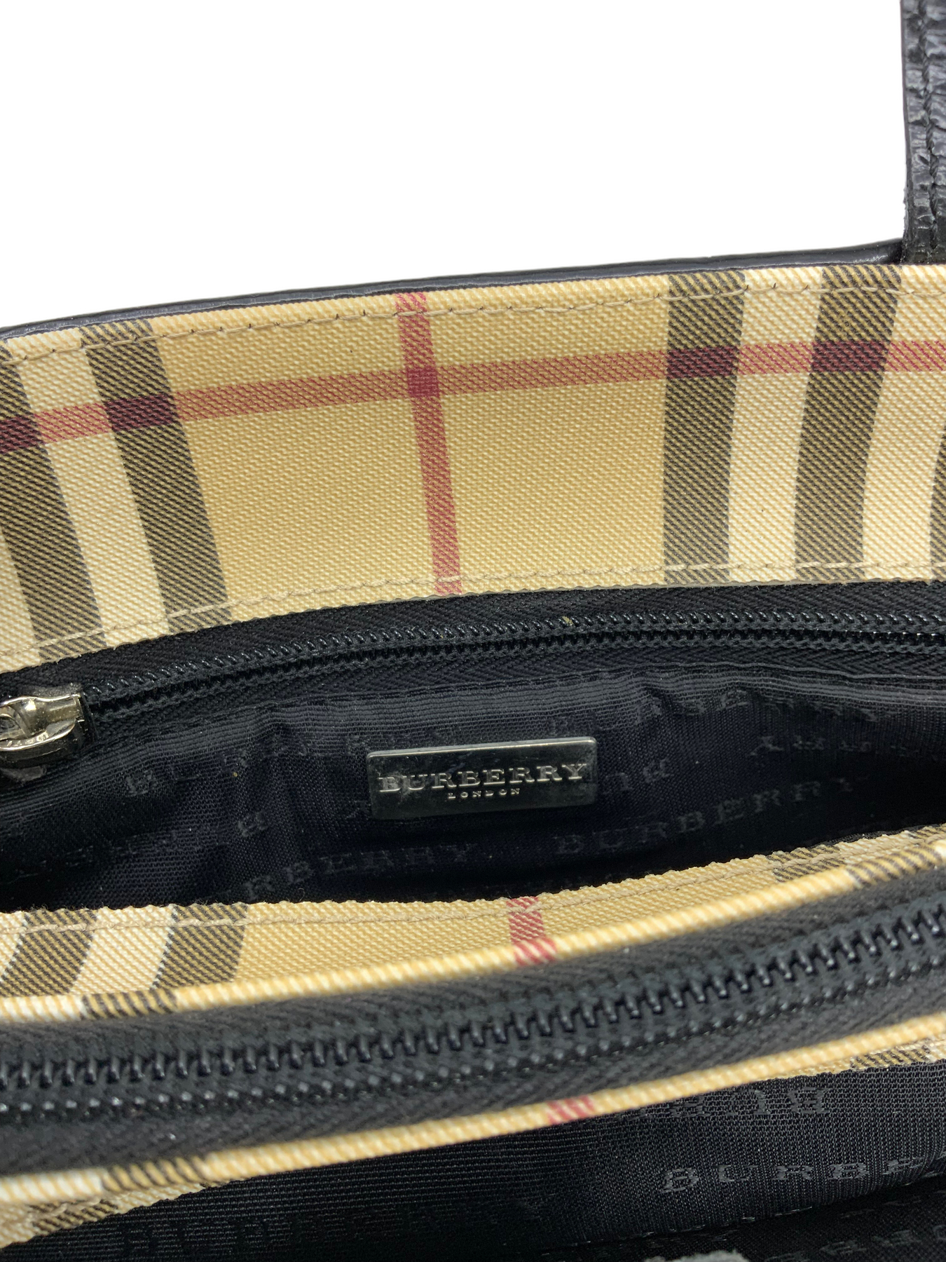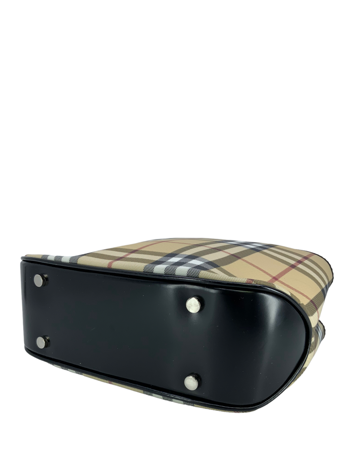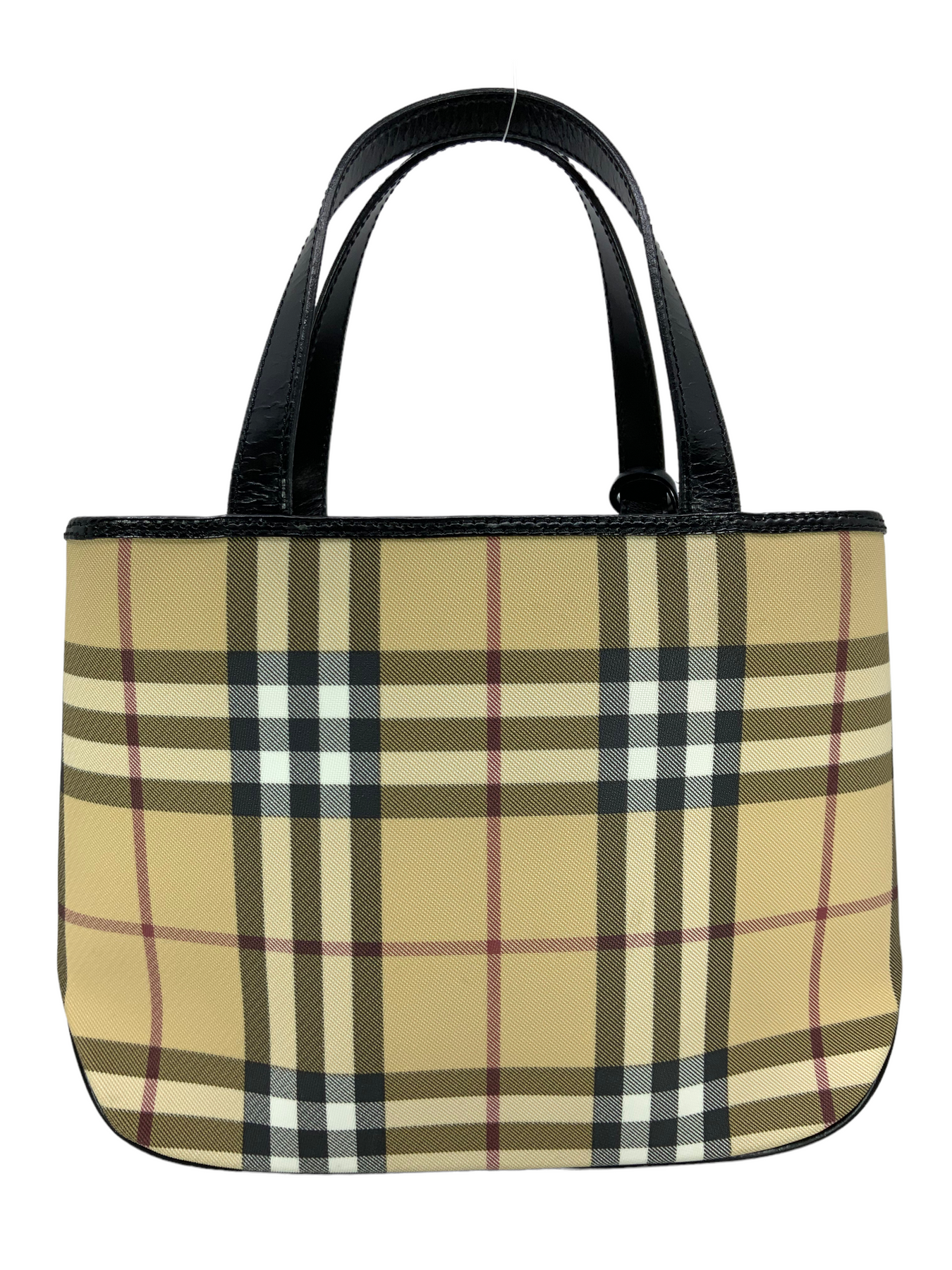 Add to your collection this Burberry Nova Check Canvas Small Tote Bag crafted from durable Haymarket coated canvas with a smooth brown leather trim. This stylish bag features dual flat leather top handles and silver-tone hardware, including a signature engraved logo charm