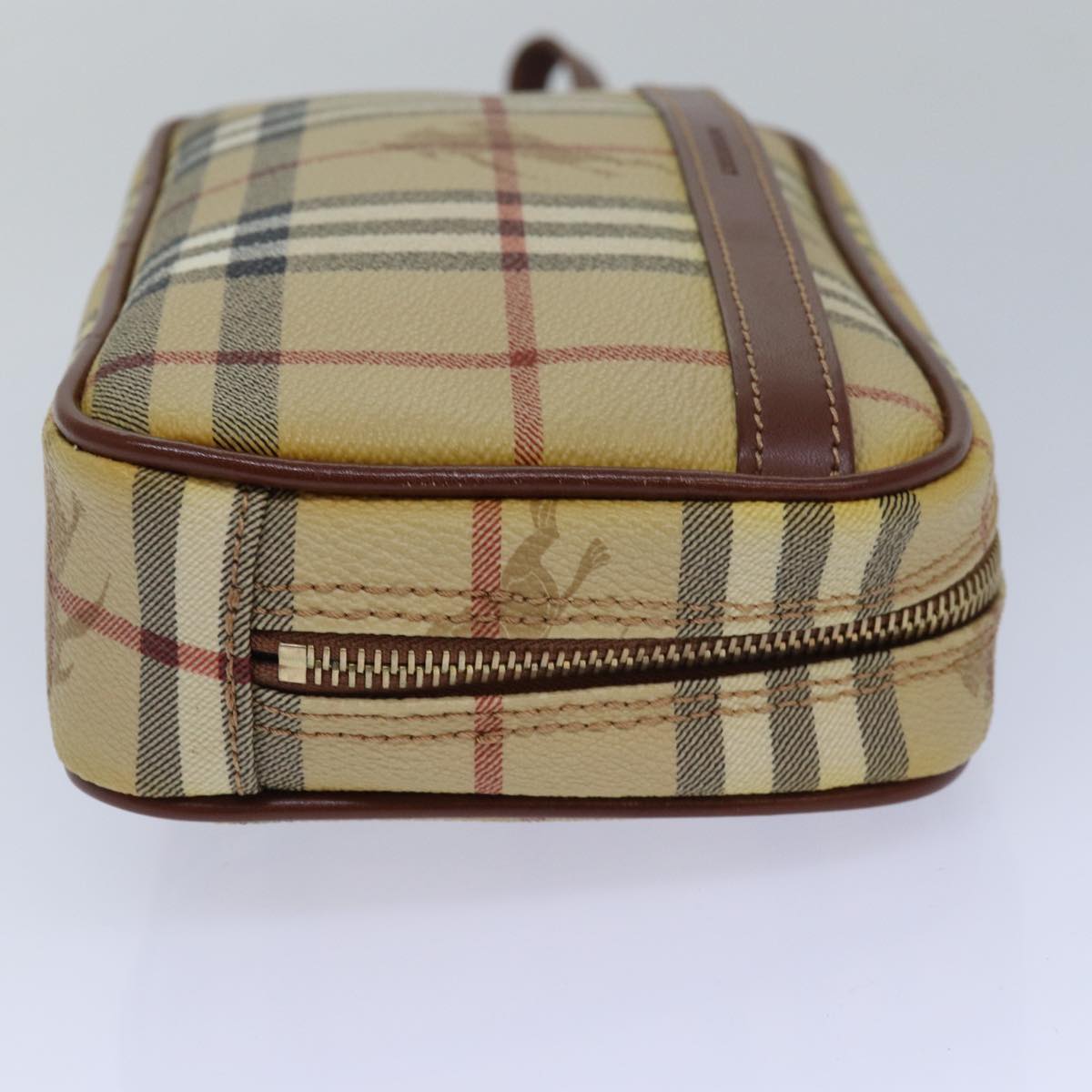 BURBERRY Nova Check Clutch Bag PVC Leather Beige Auth 81460