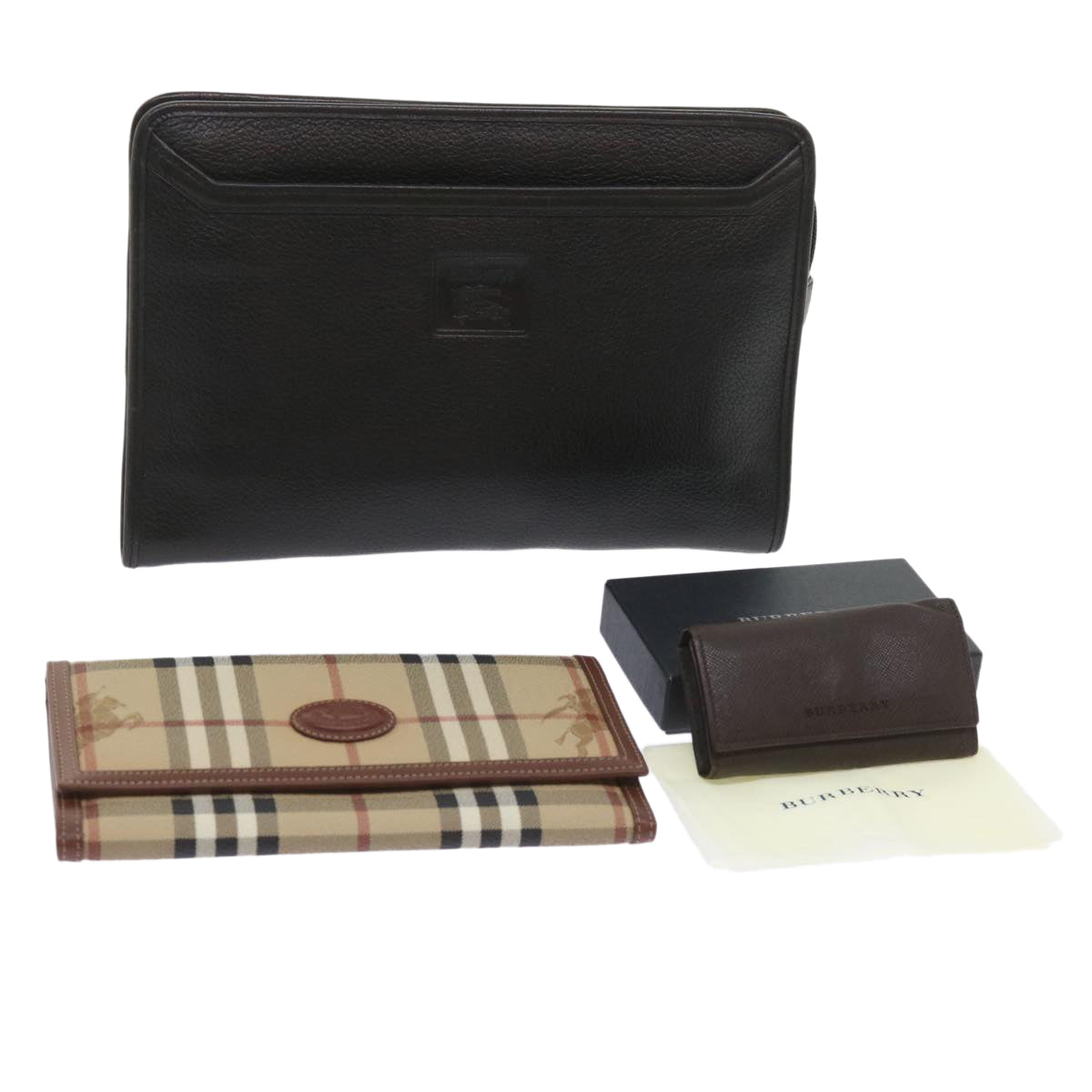BURBERRY Nova Check Clutch Key Case Wallet Leather 3Set Black Auth ac2238