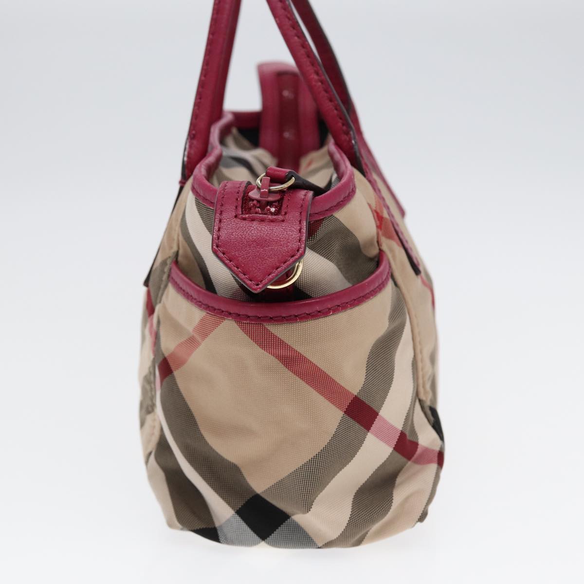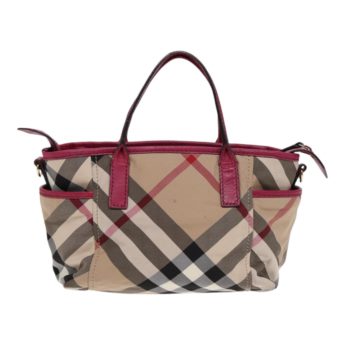 BURBERRY Nova Check Hand Bag Canvas 2way Beige Gold Auth 88617