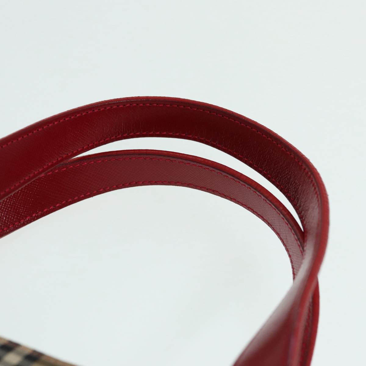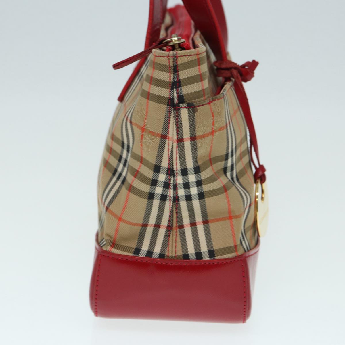 Burberry Nova Check Hand Bag Canvas Beige Red Auth 87634