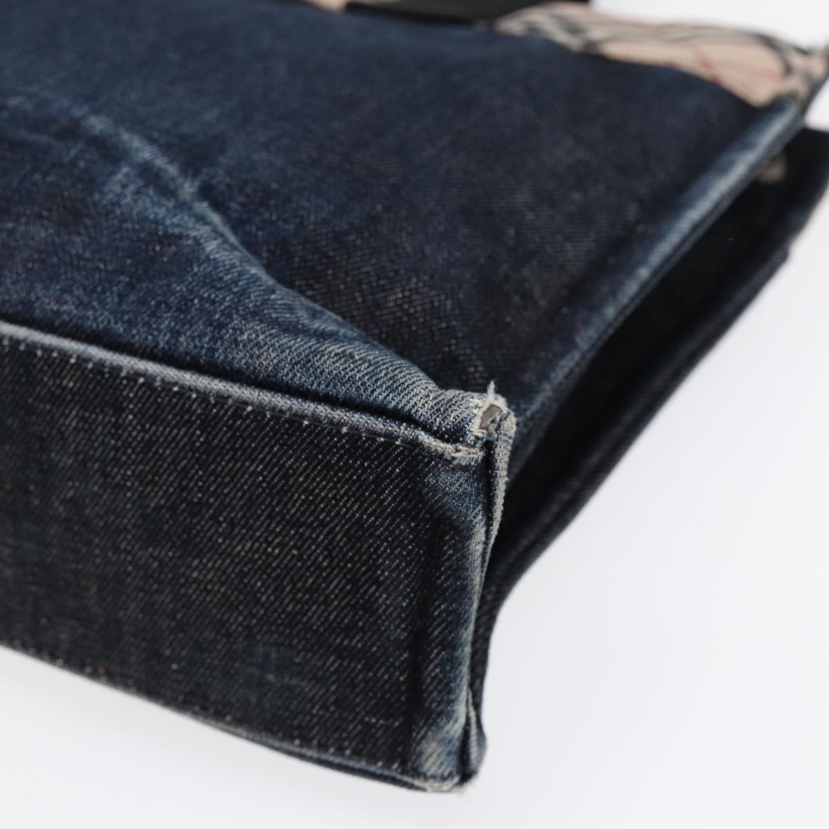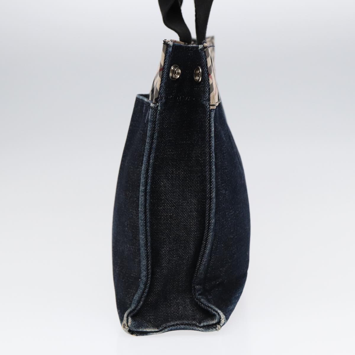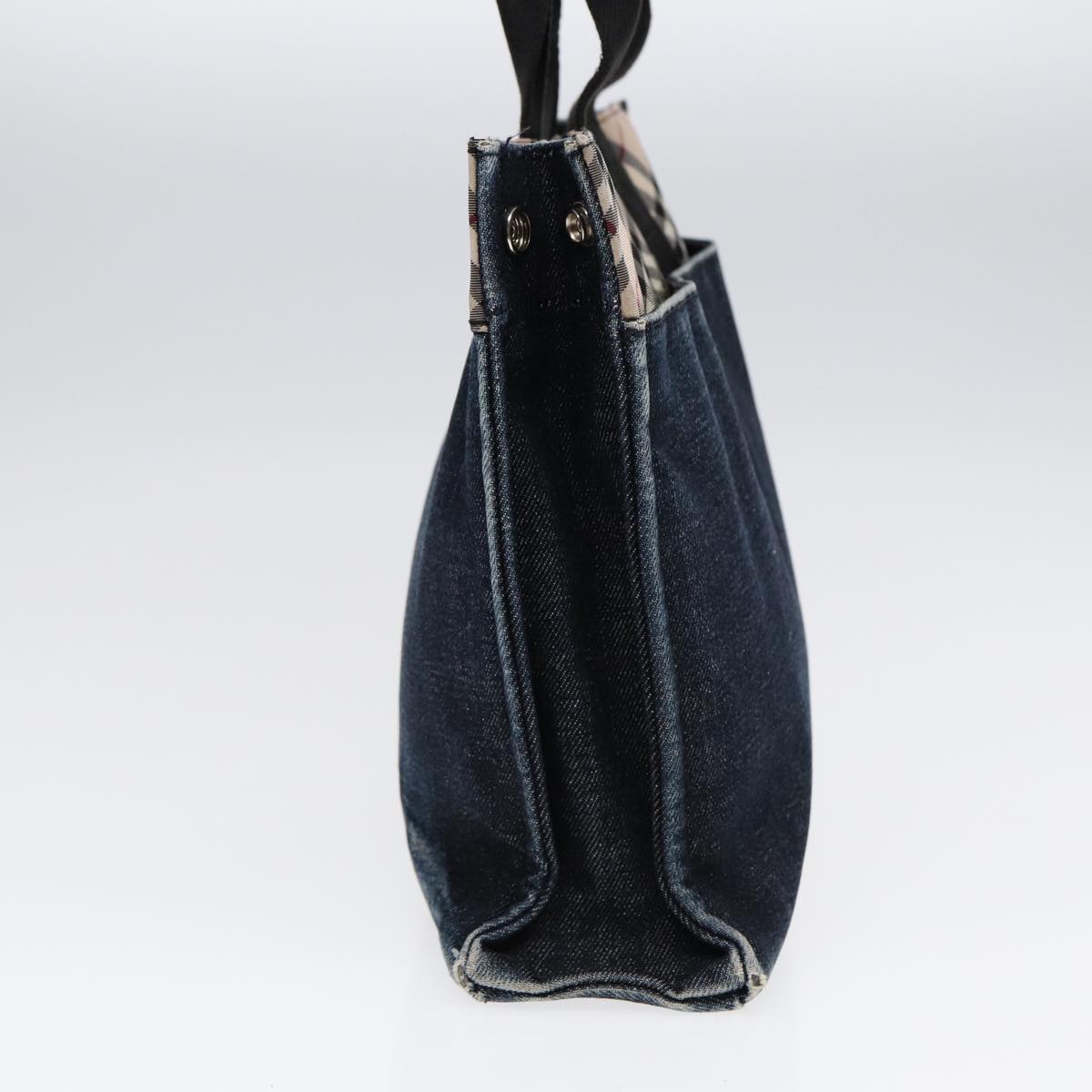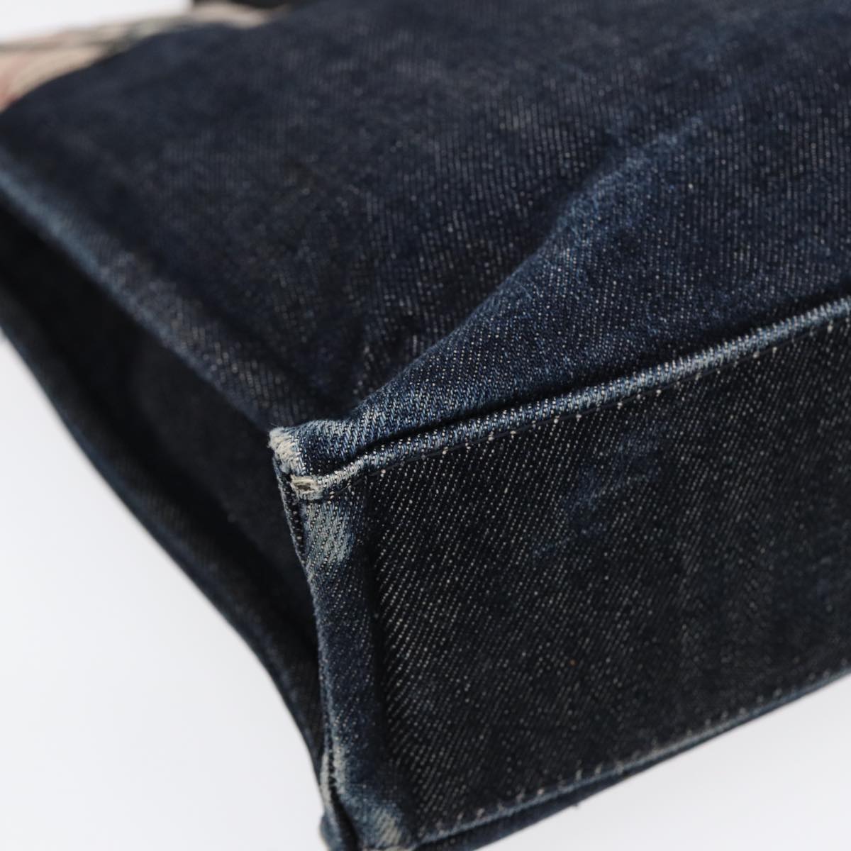 BURBERRY Nova Check Hand Bag Denim Nylon Navy Beige Silver Auth hk1572