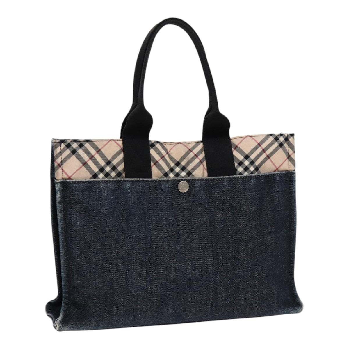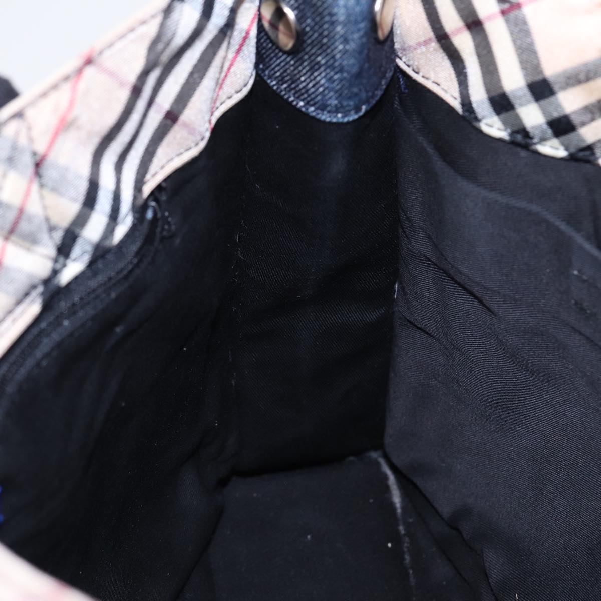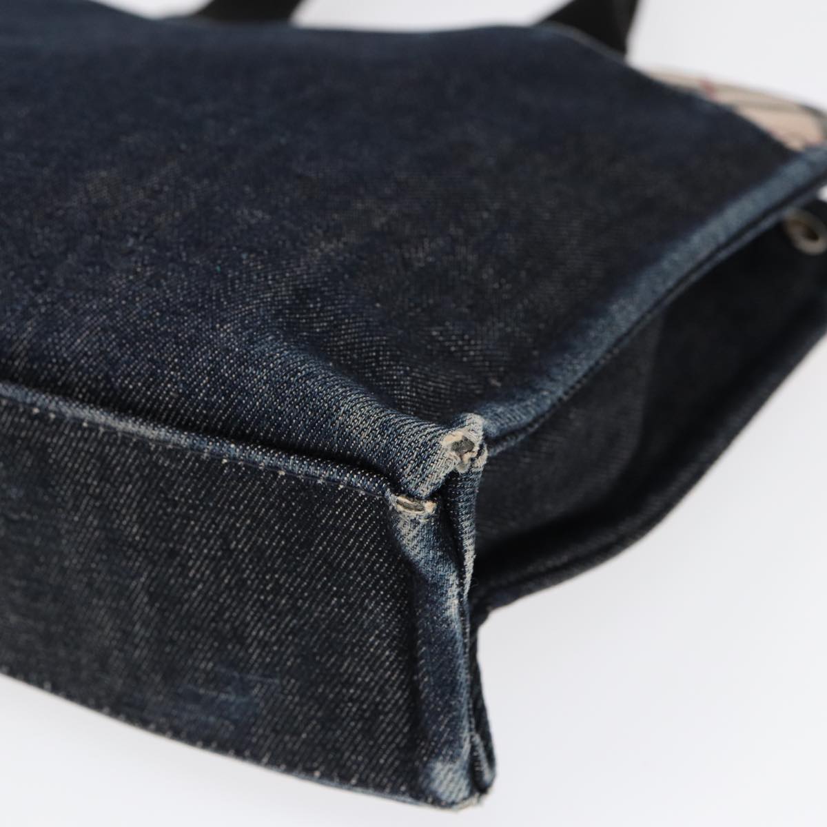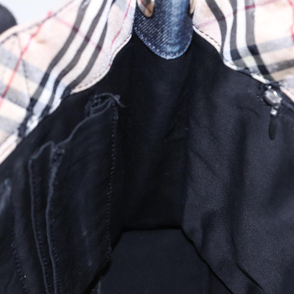 BURBERRY Nova Check Hand Bag Denim Nylon Navy Beige Silver Auth hk1572