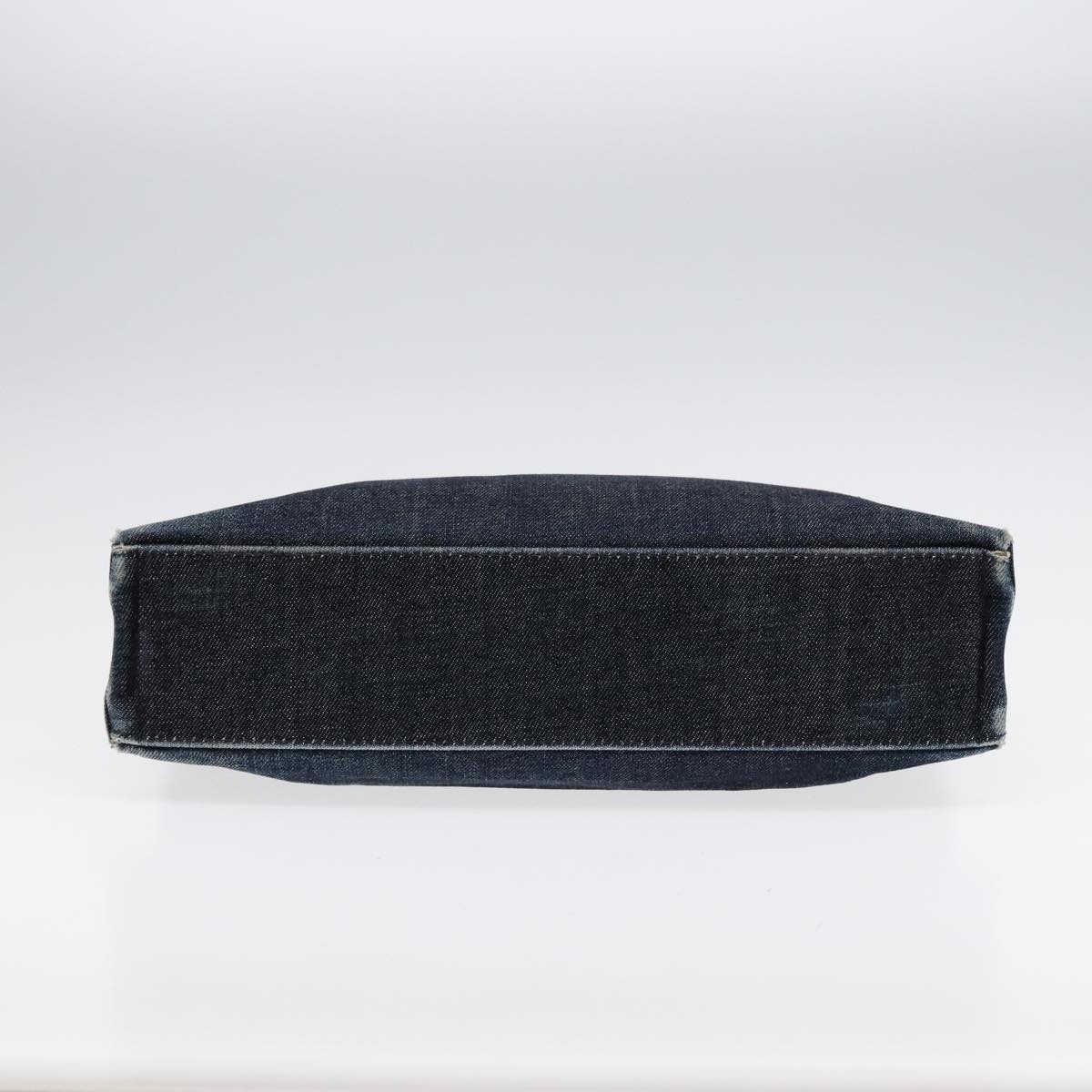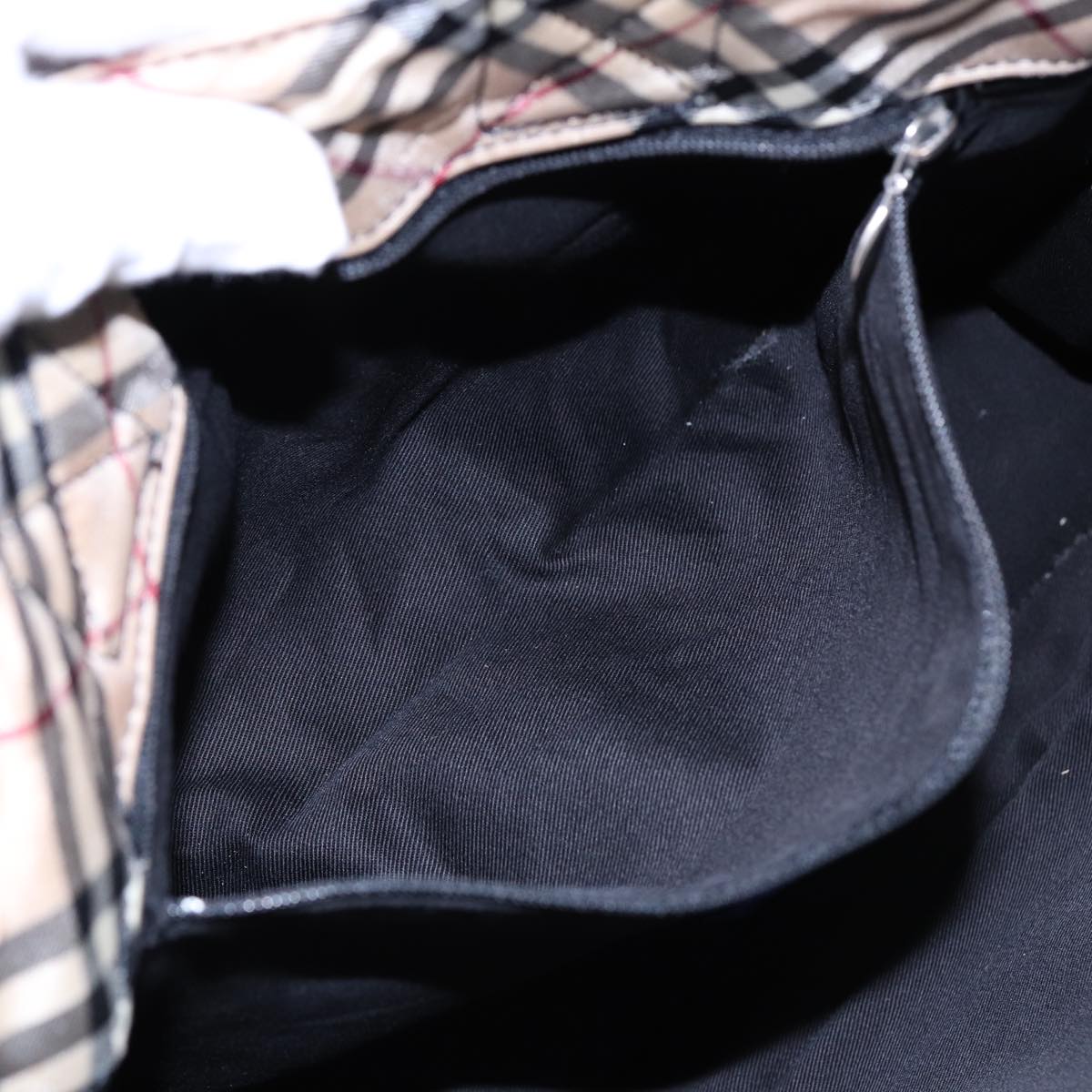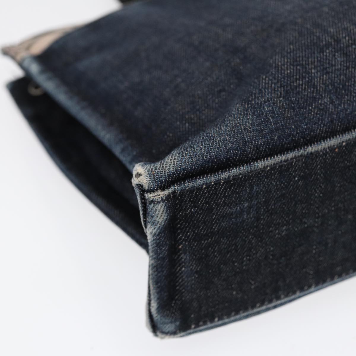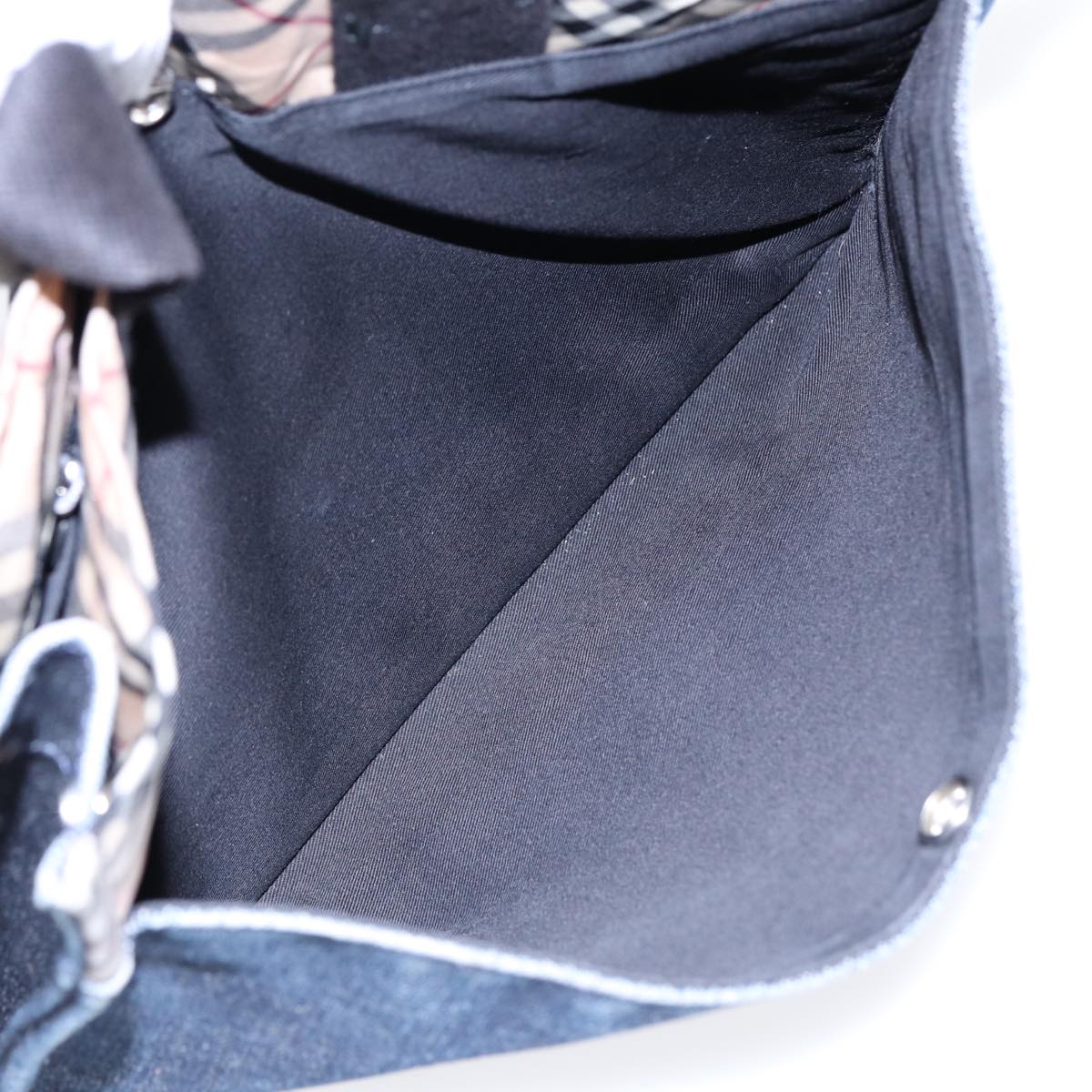 BURBERRY Nova Check Hand Bag Denim Nylon Navy Beige Silver Auth hk1572