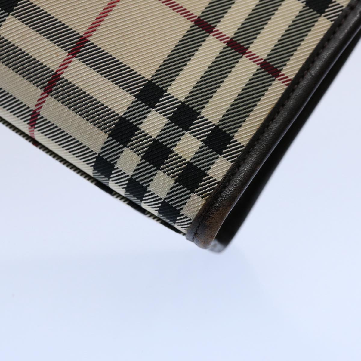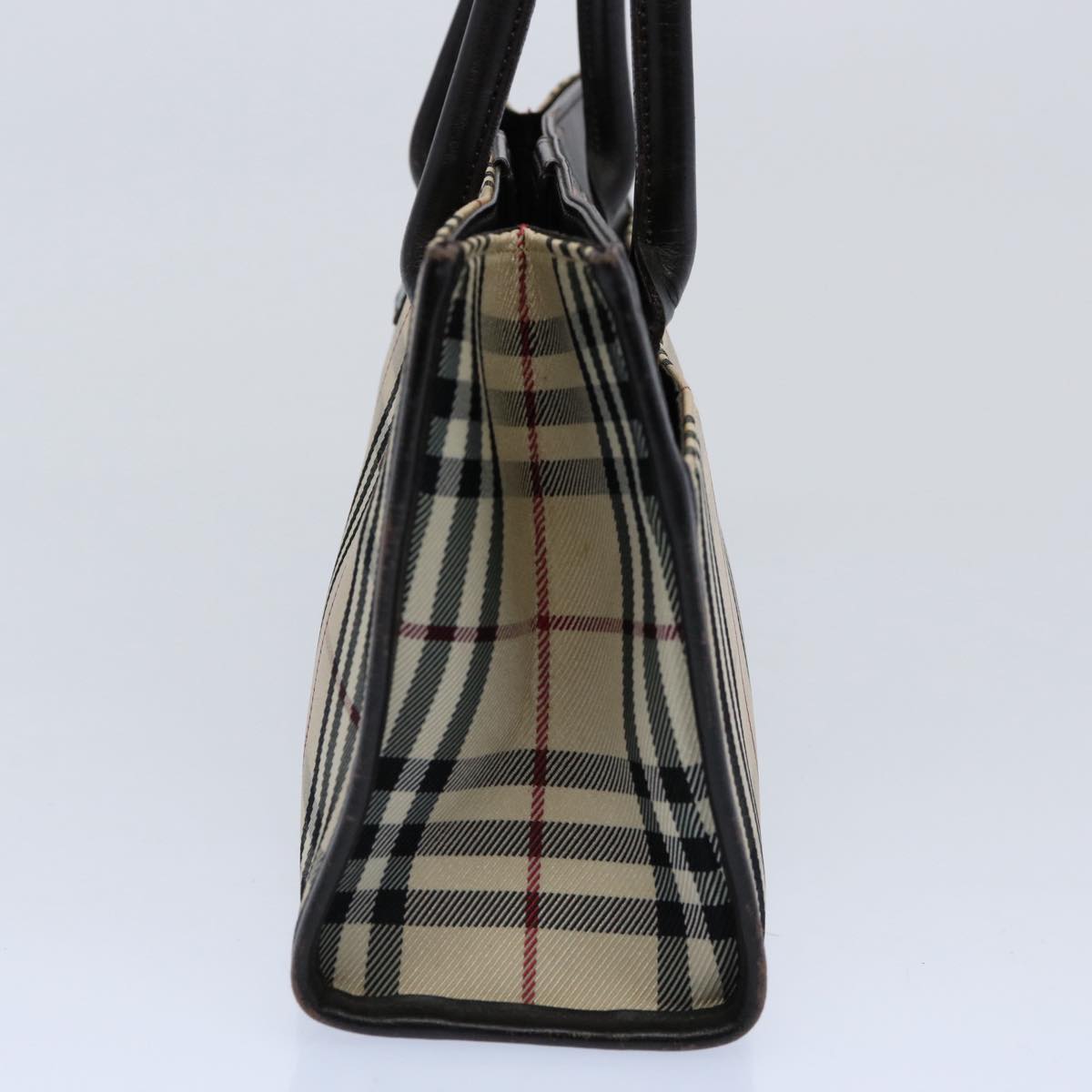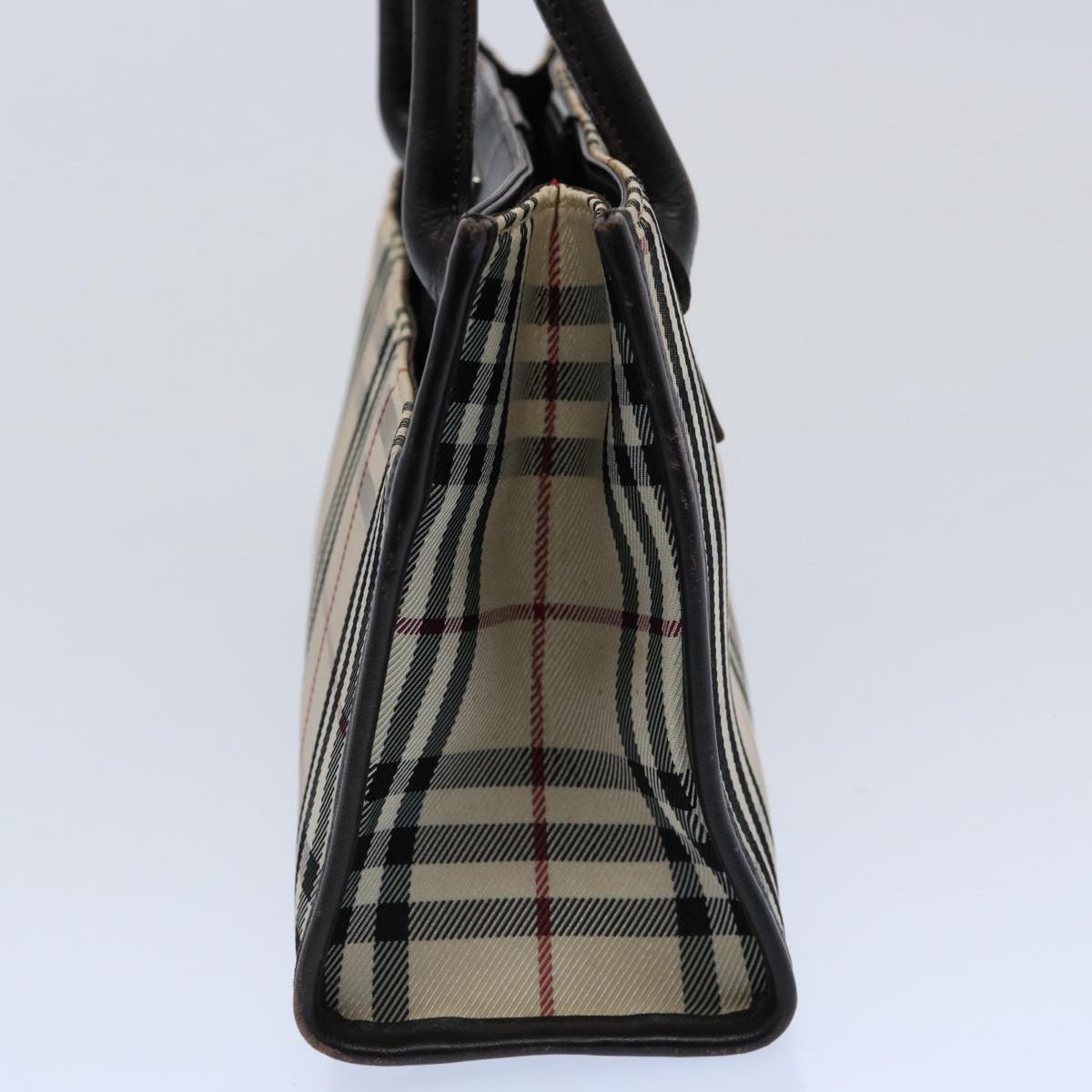 BURBERRY Nova Check Hand Bag Nylon Beige Dark Brown Auth uy141