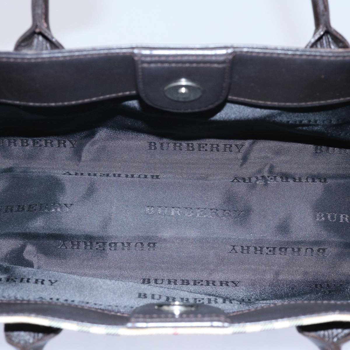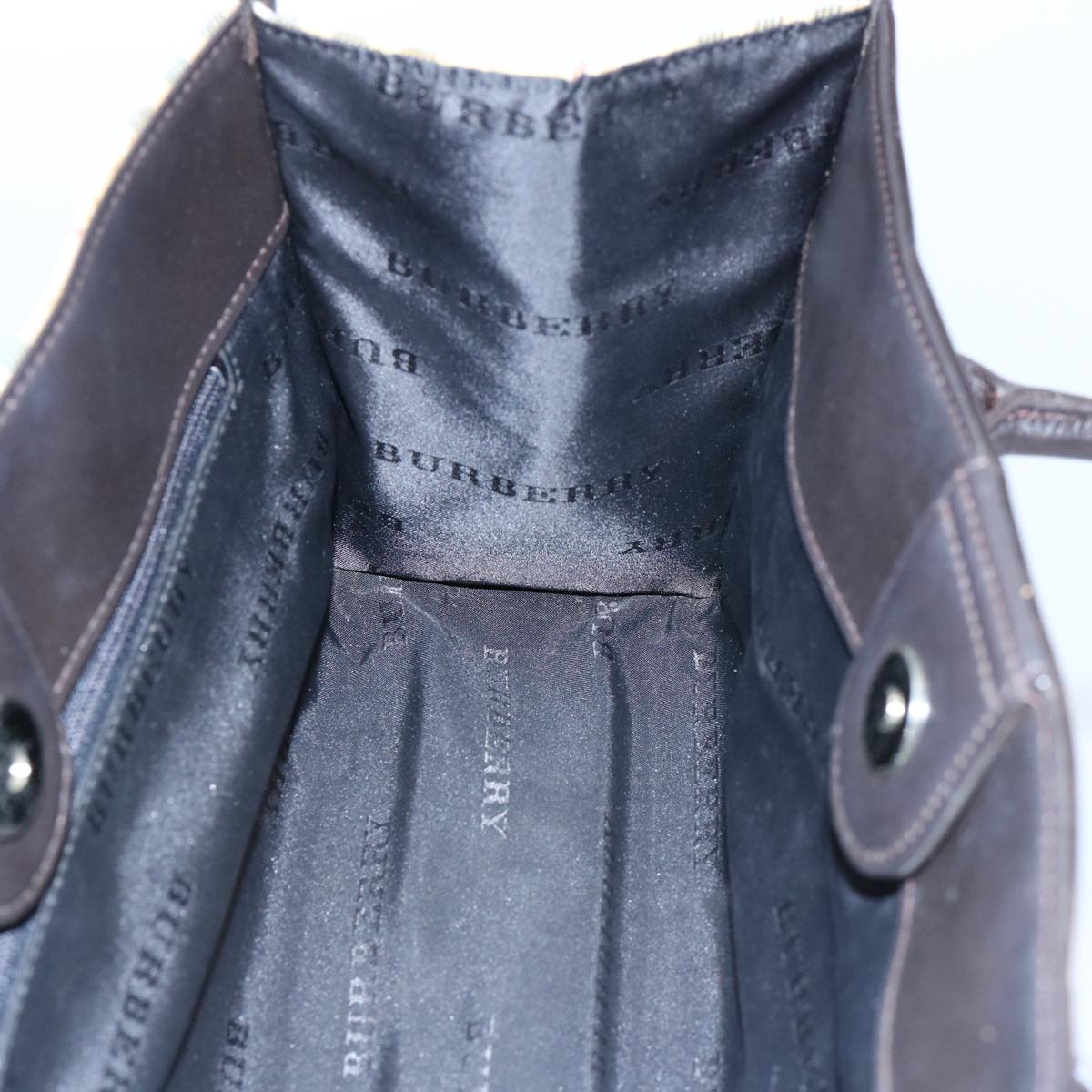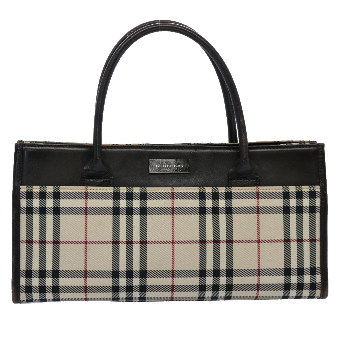 BURBERRY Nova Check Hand Bag Nylon Beige Dark Brown Auth uy141