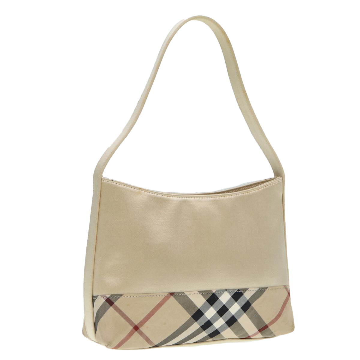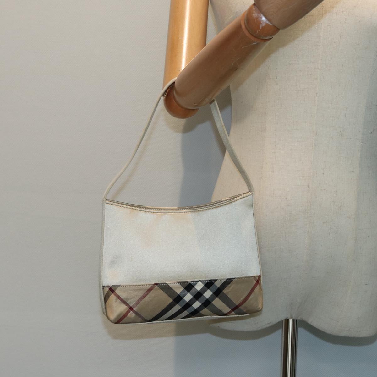 Burberry Nova Check Hand Bag Nylon Beige Silver Auth 88598