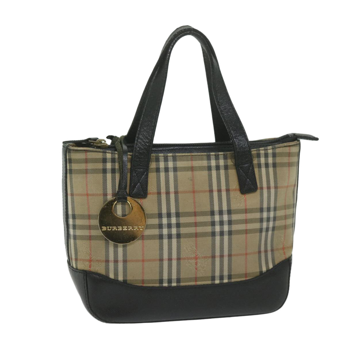 BURBERRY Nova Check Hand Bag Nylon Leather Beige Auth 63558