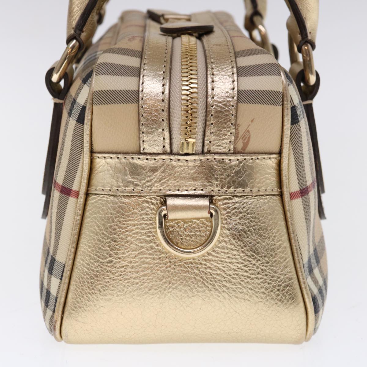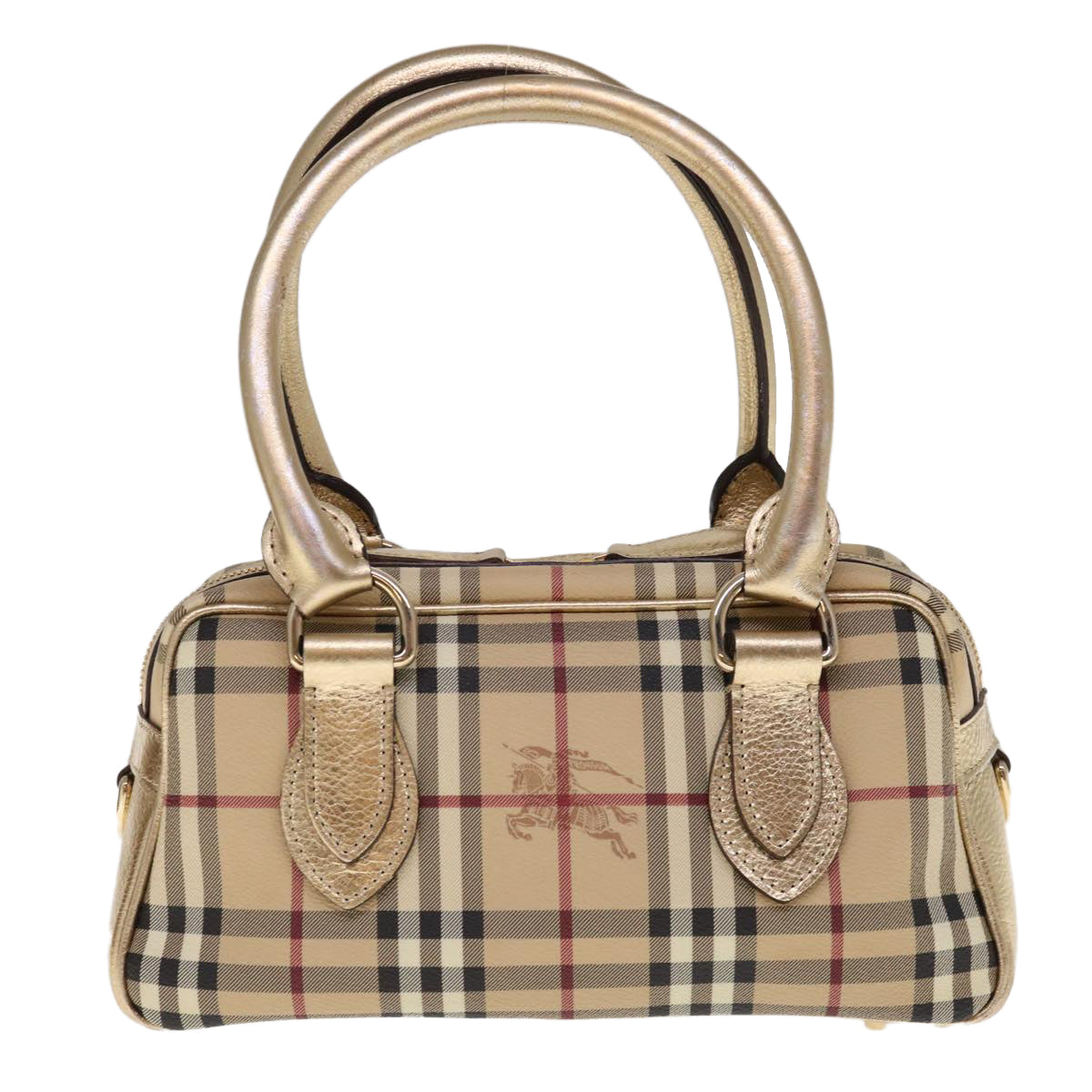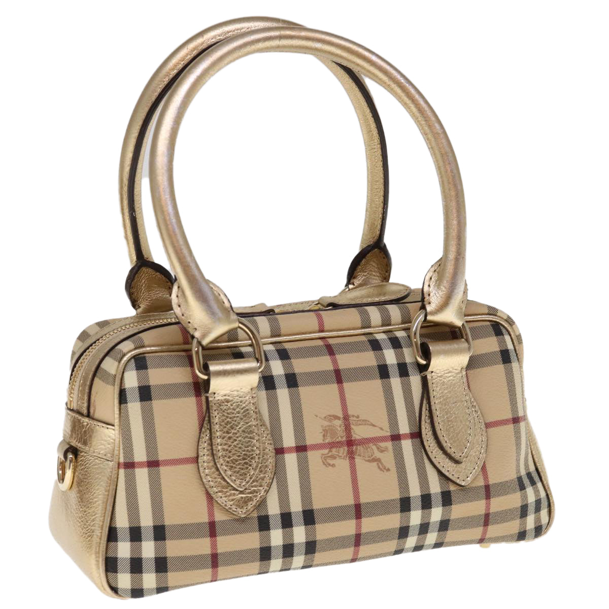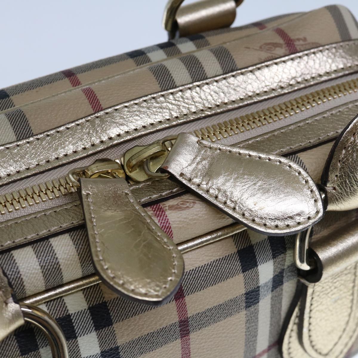 BURBERRY Nova Check Hand Bag PVC Leather Beige Auth 64593