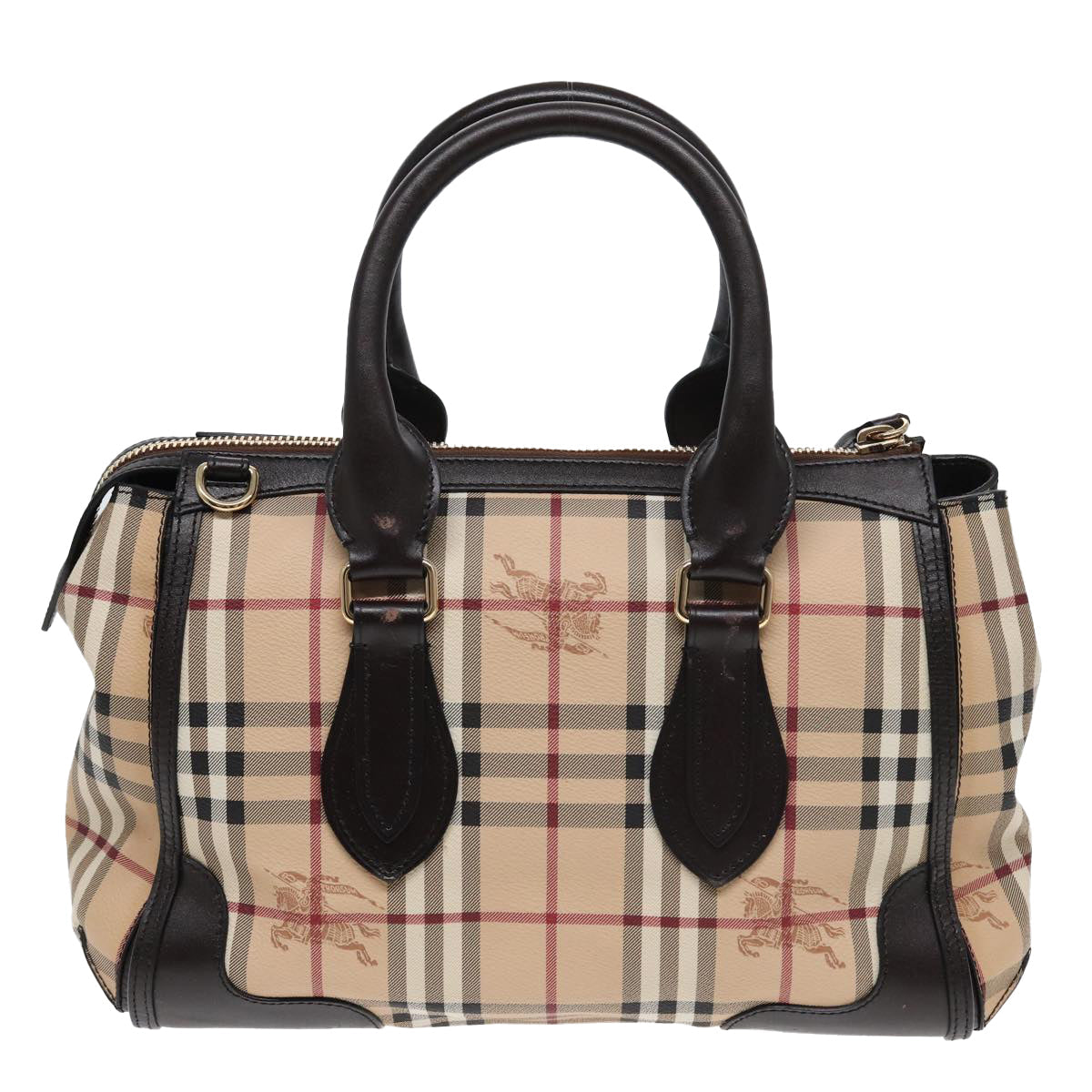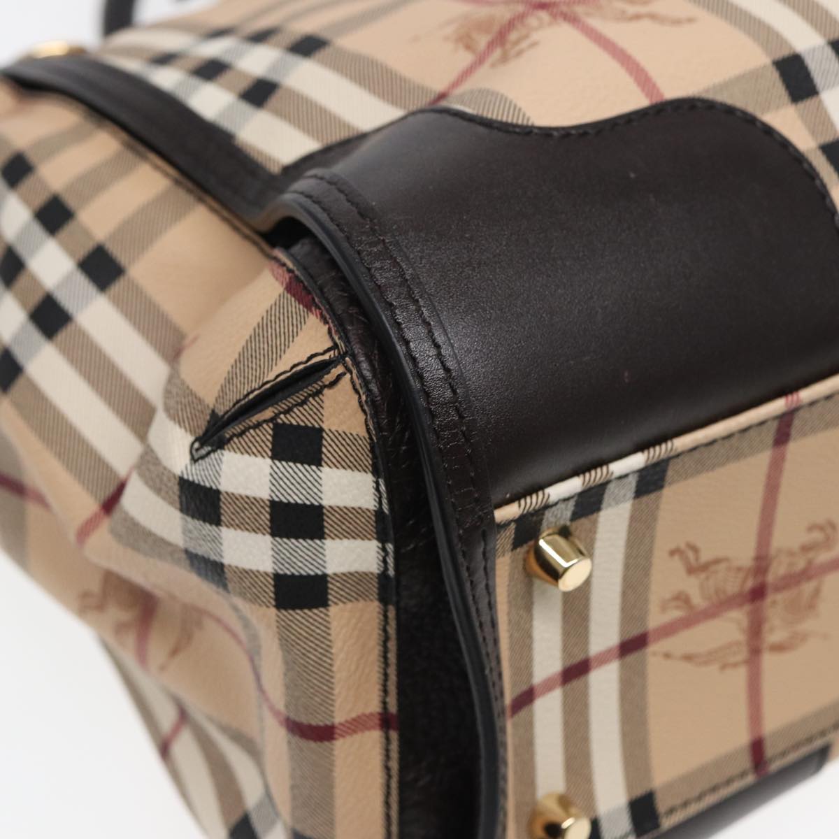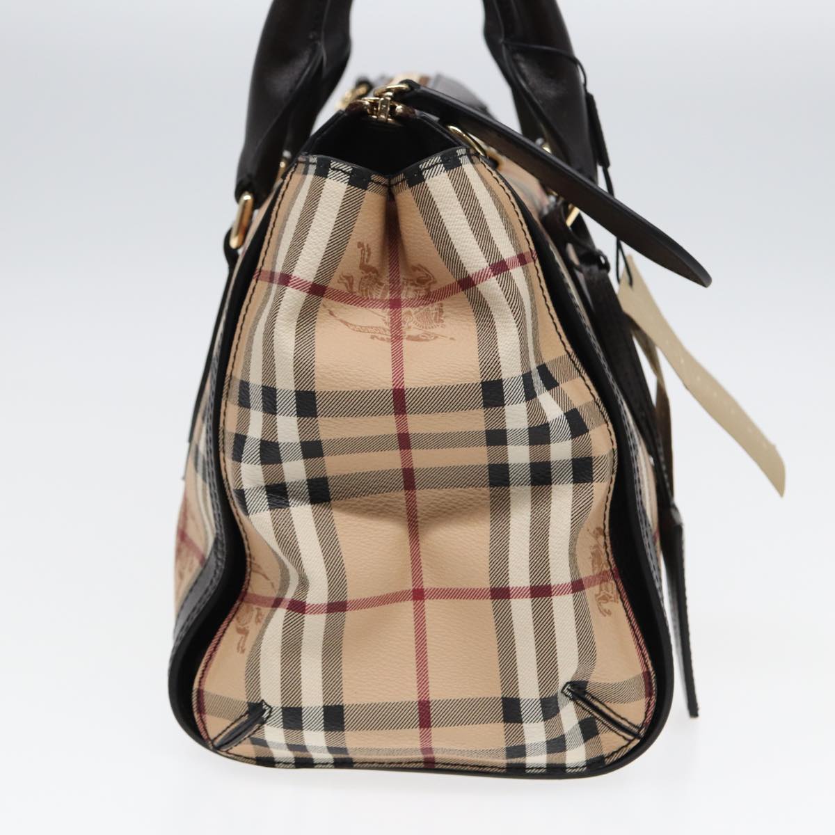 BURBERRY Nova Check Hand Bag PVC Leather Beige Auth 83146