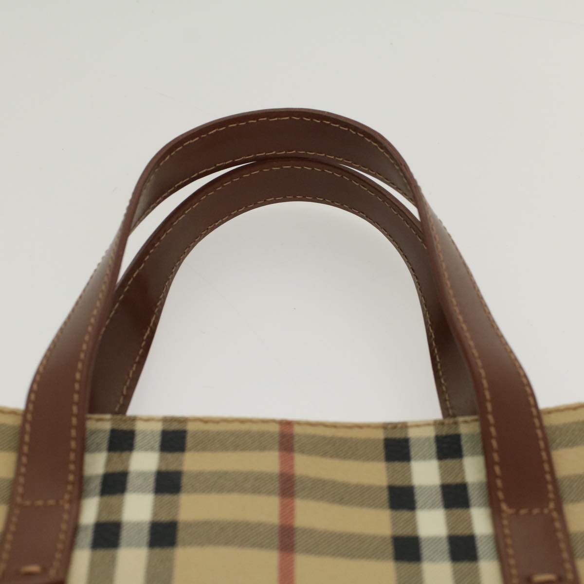 BURBERRY Nova Check Hand Bag Pvc Leather Beige Auth Yk8286