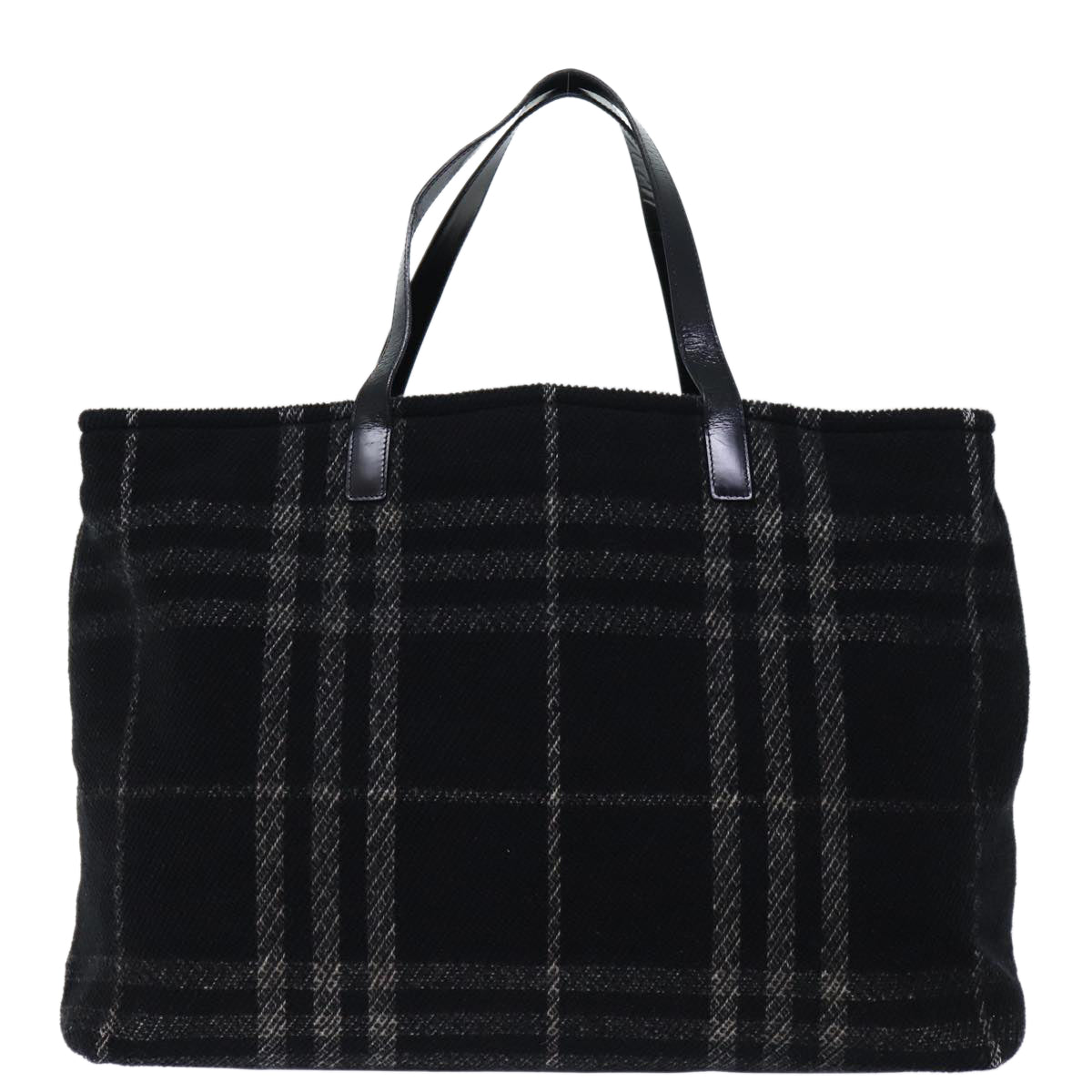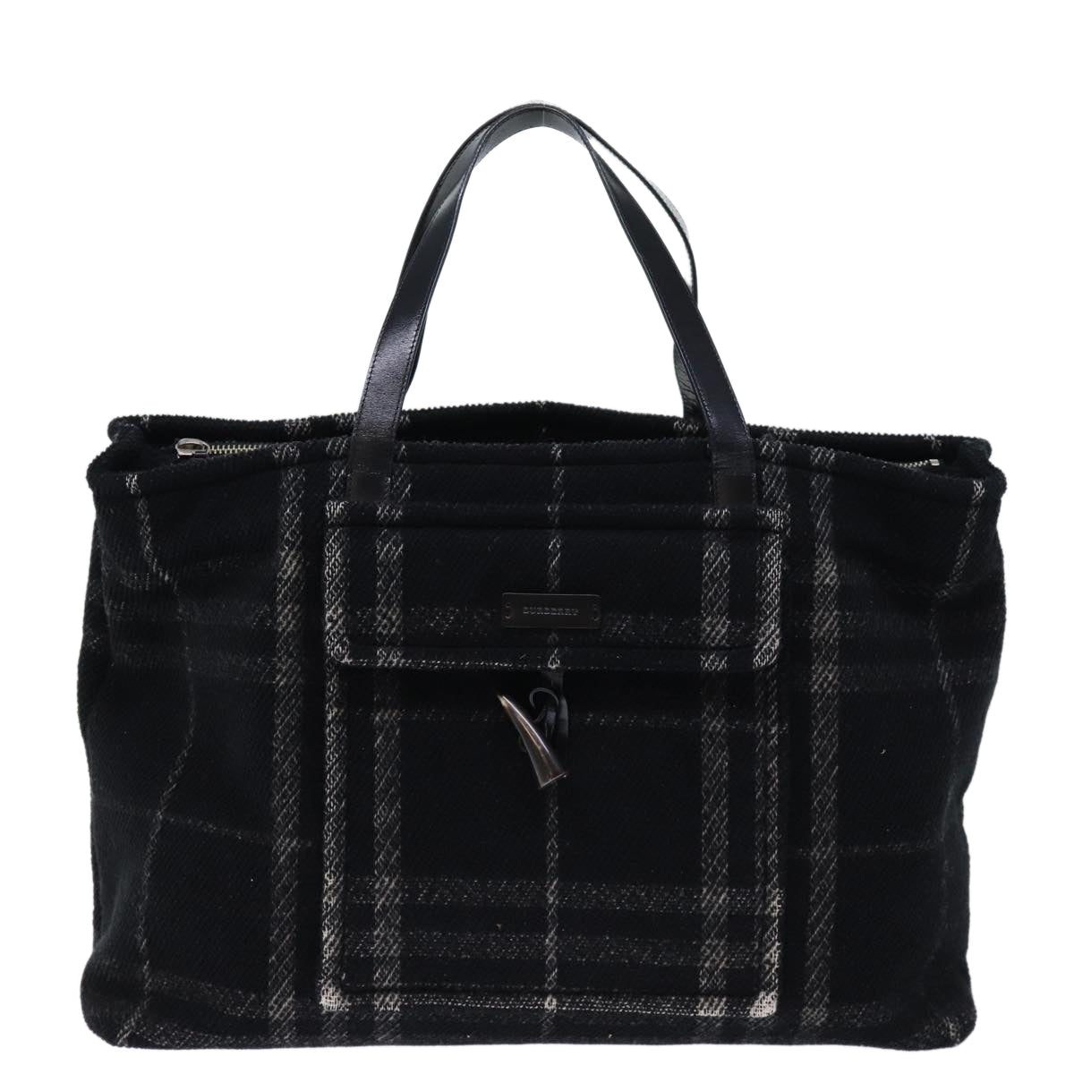 BURBERRY Nova Check Hand Bag Wool Black Auth bs13719