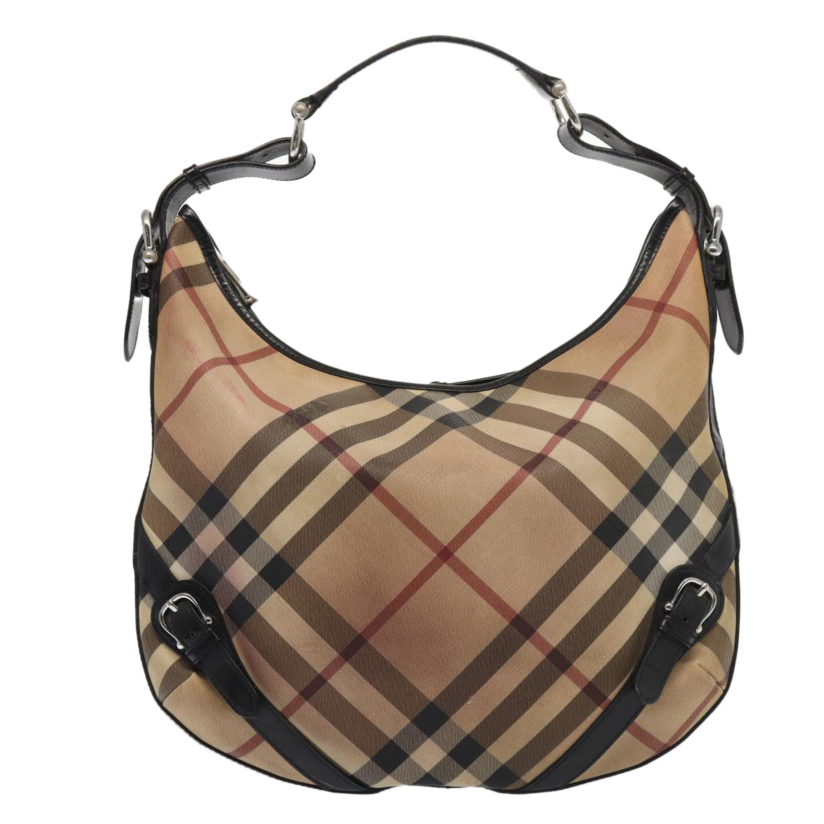 BURBERRY Nova Check Shoulder Bag Beige Black Silver Auth 87777
