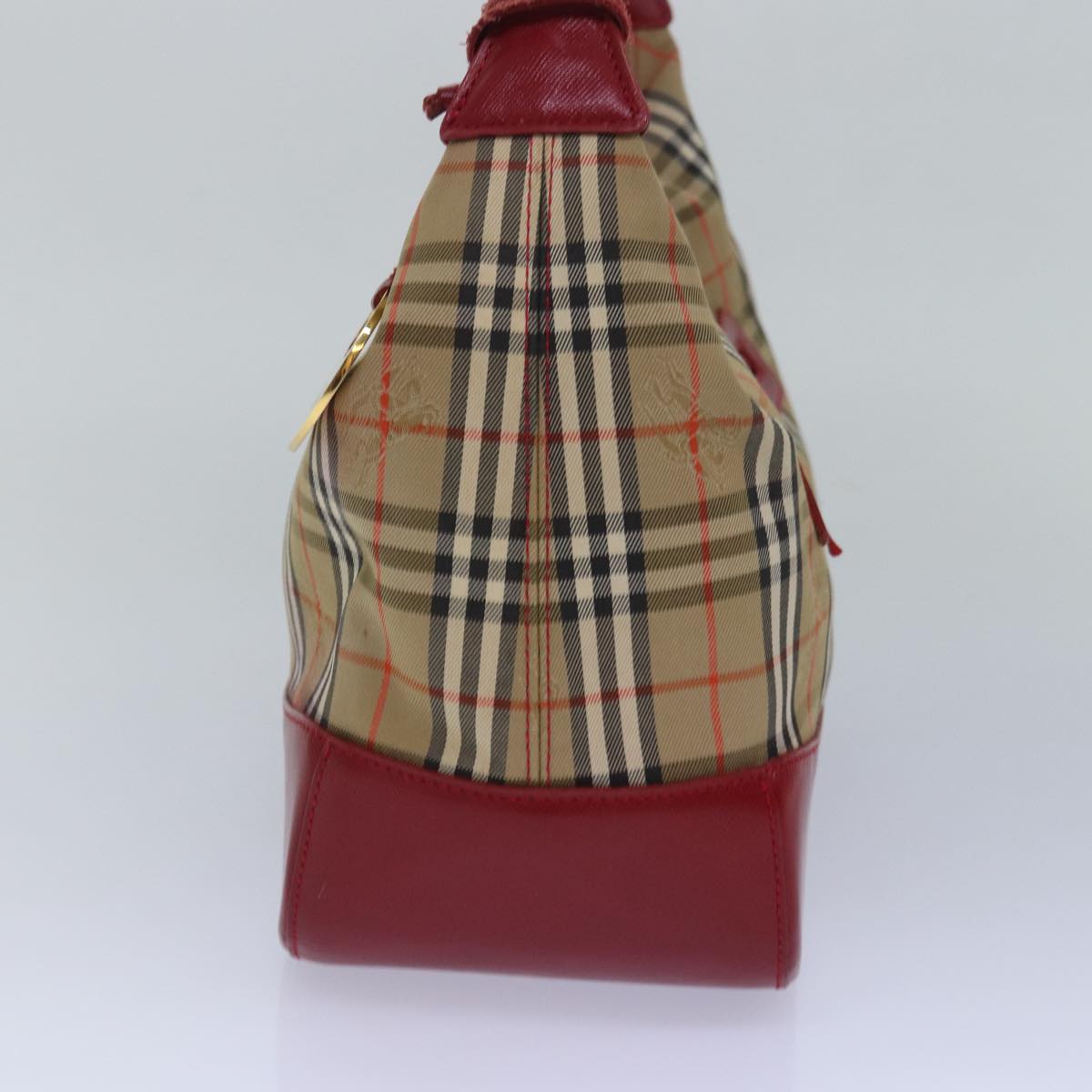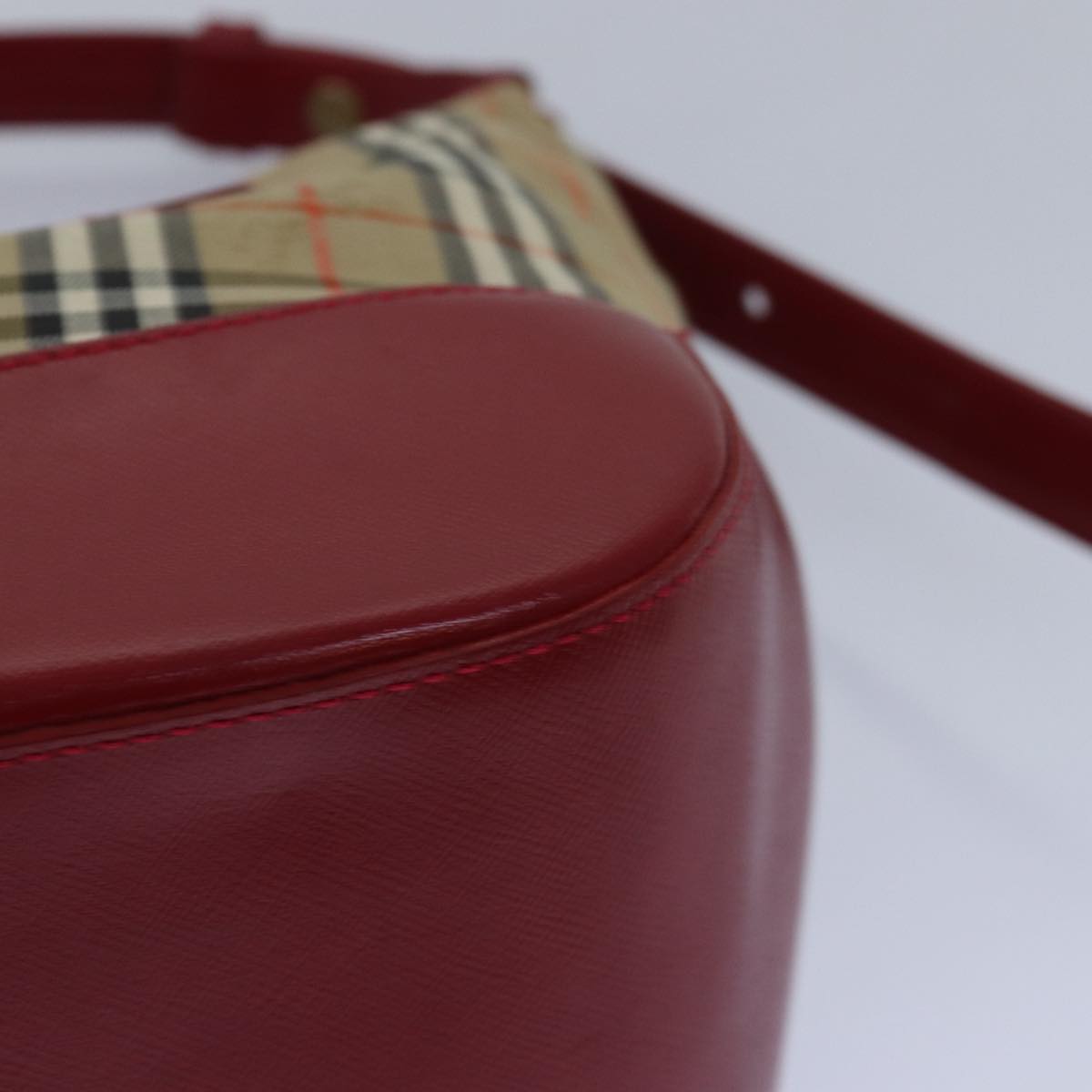 BURBERRY Nova Check Shoulder Bag Canvas Enamel Red Auth 77831