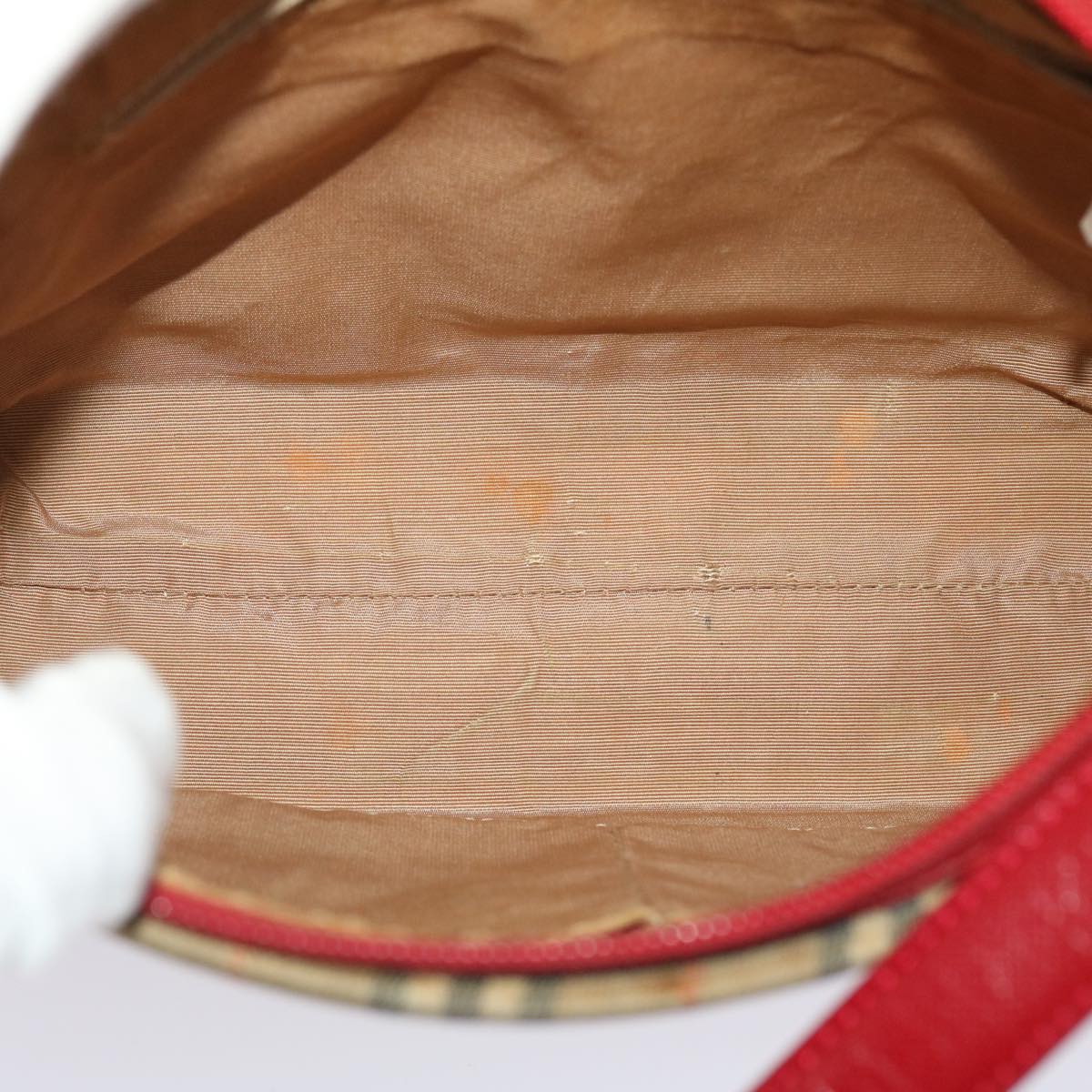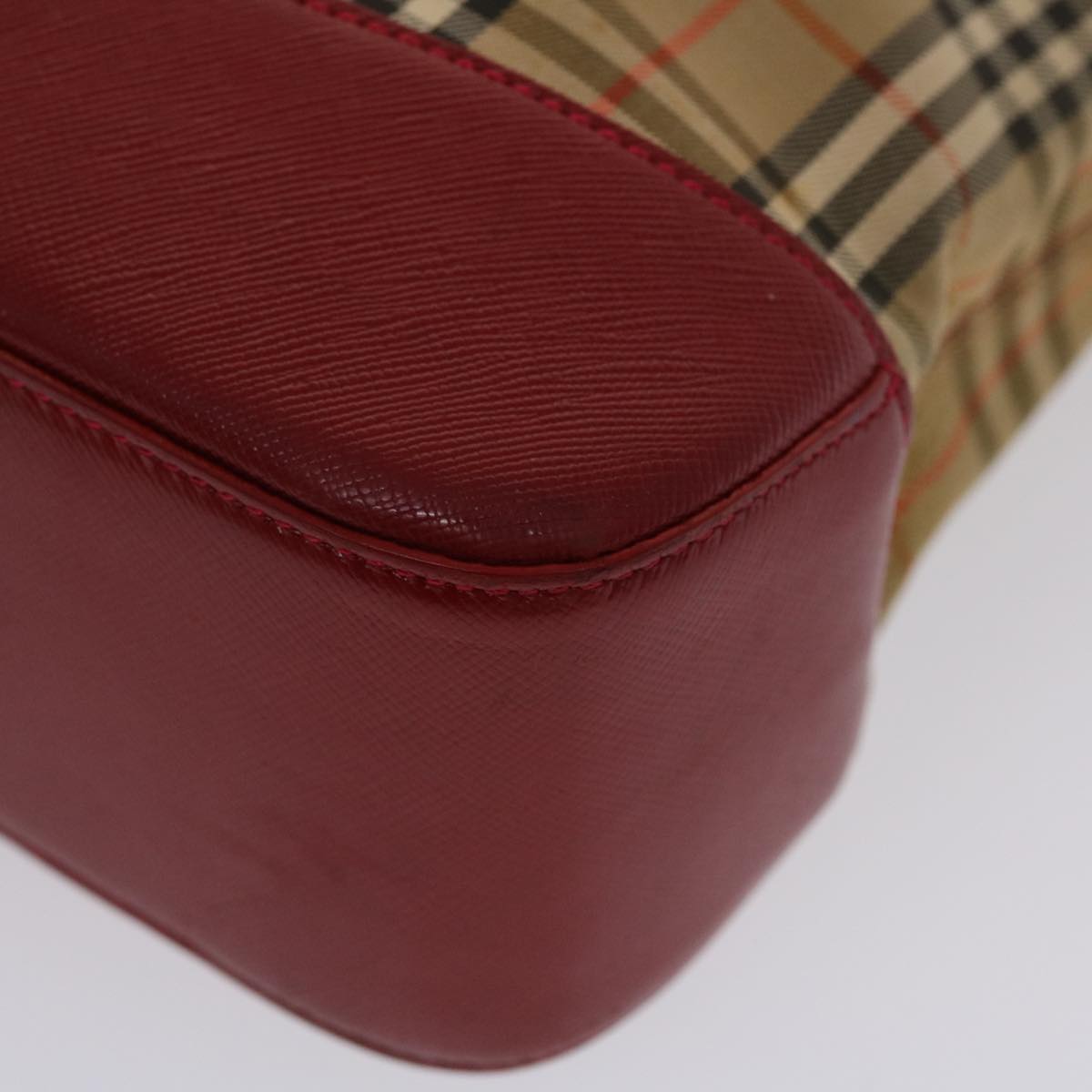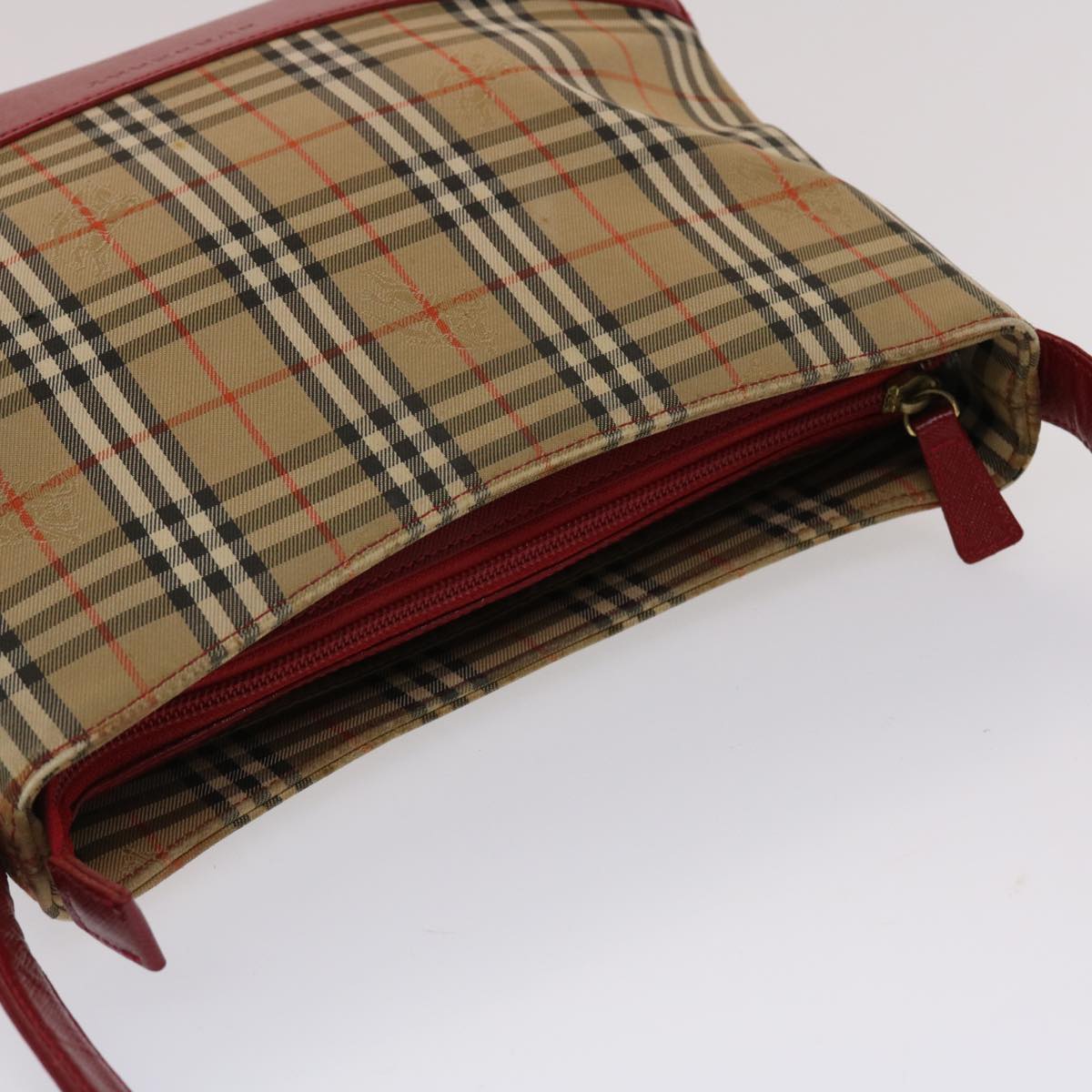 BURBERRY Nova Check Shoulder Bag Canvas Leather Beige Red Auth 49093