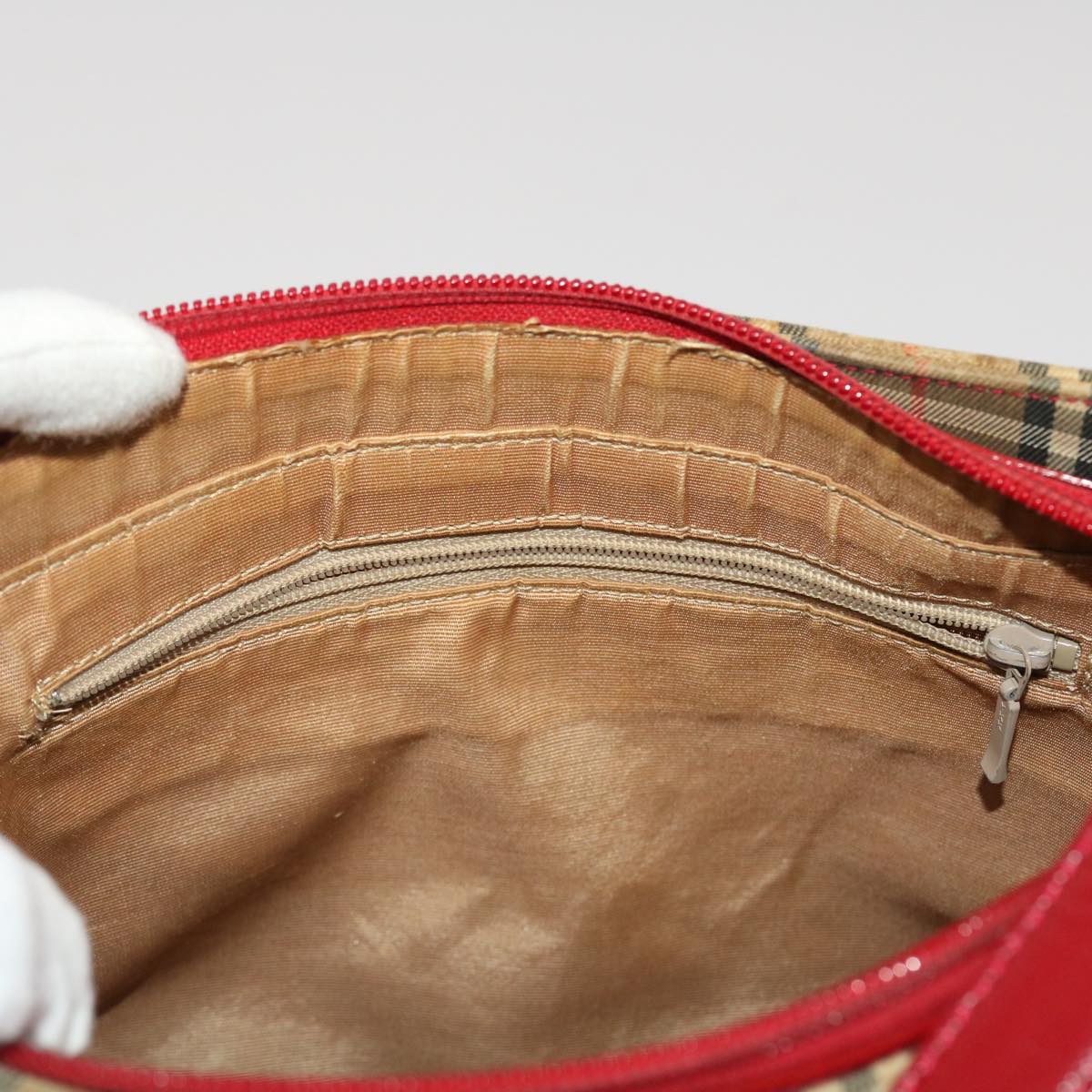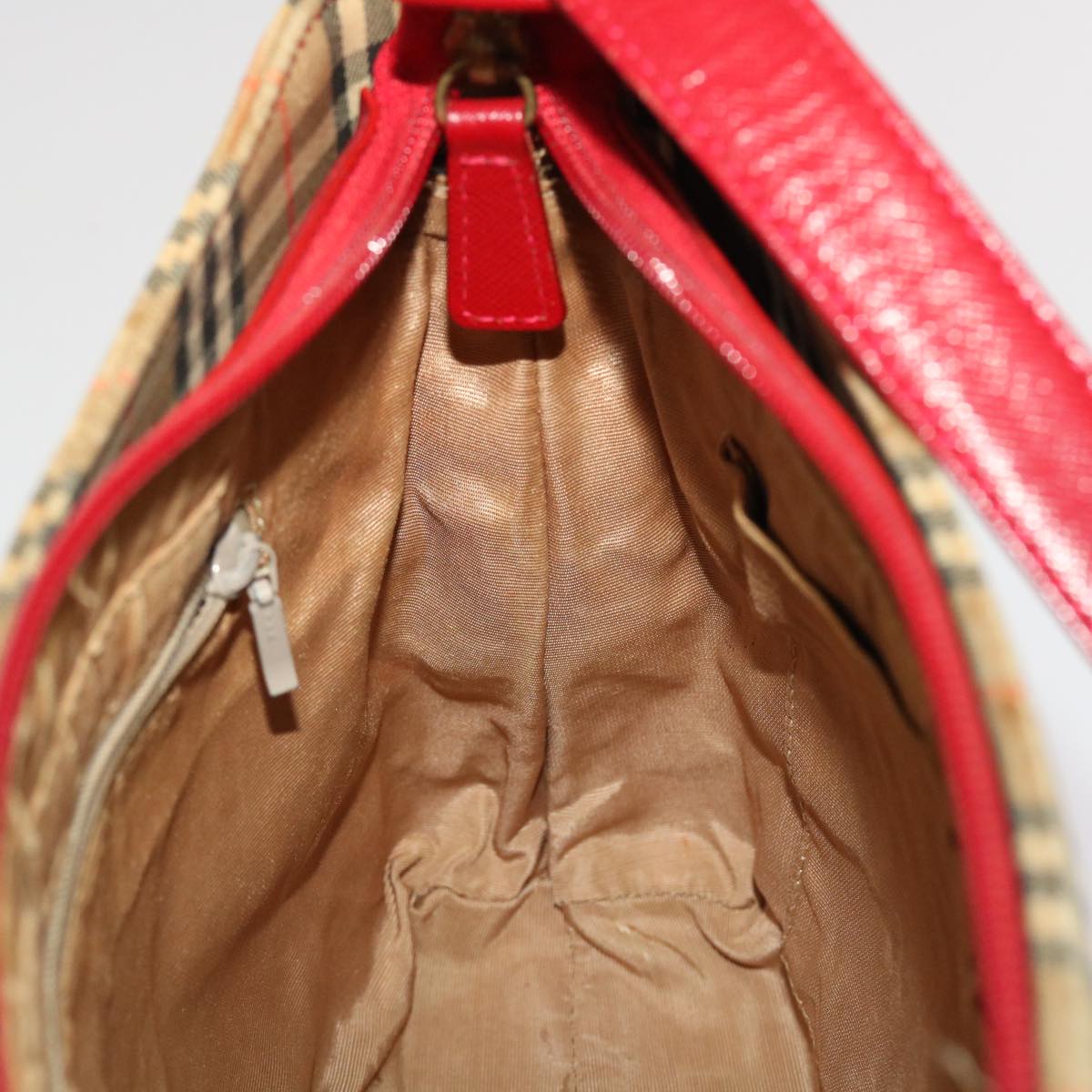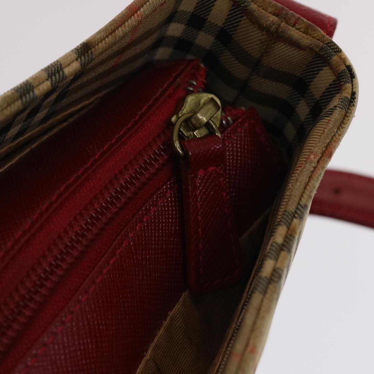 BURBERRY Nova Check Shoulder Bag Canvas Leather Beige Red Auth 49093