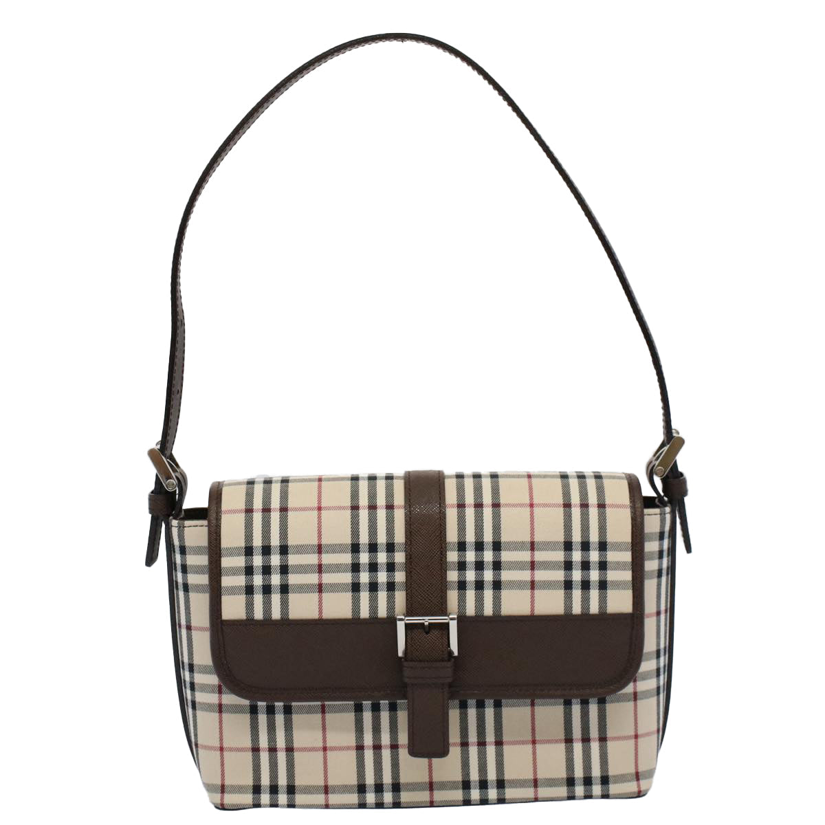 BURBERRY Nova Check Shoulder Bag Nylon Canvas Beige Auth am5185