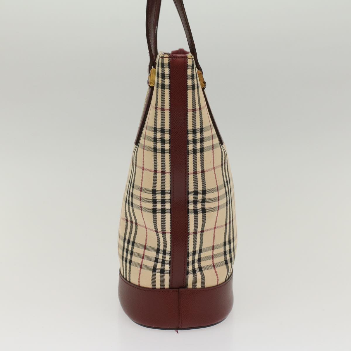 BURBERRY Nova Check Shoulder Bag Nylon Leather Beige Wine Red Auth 52038