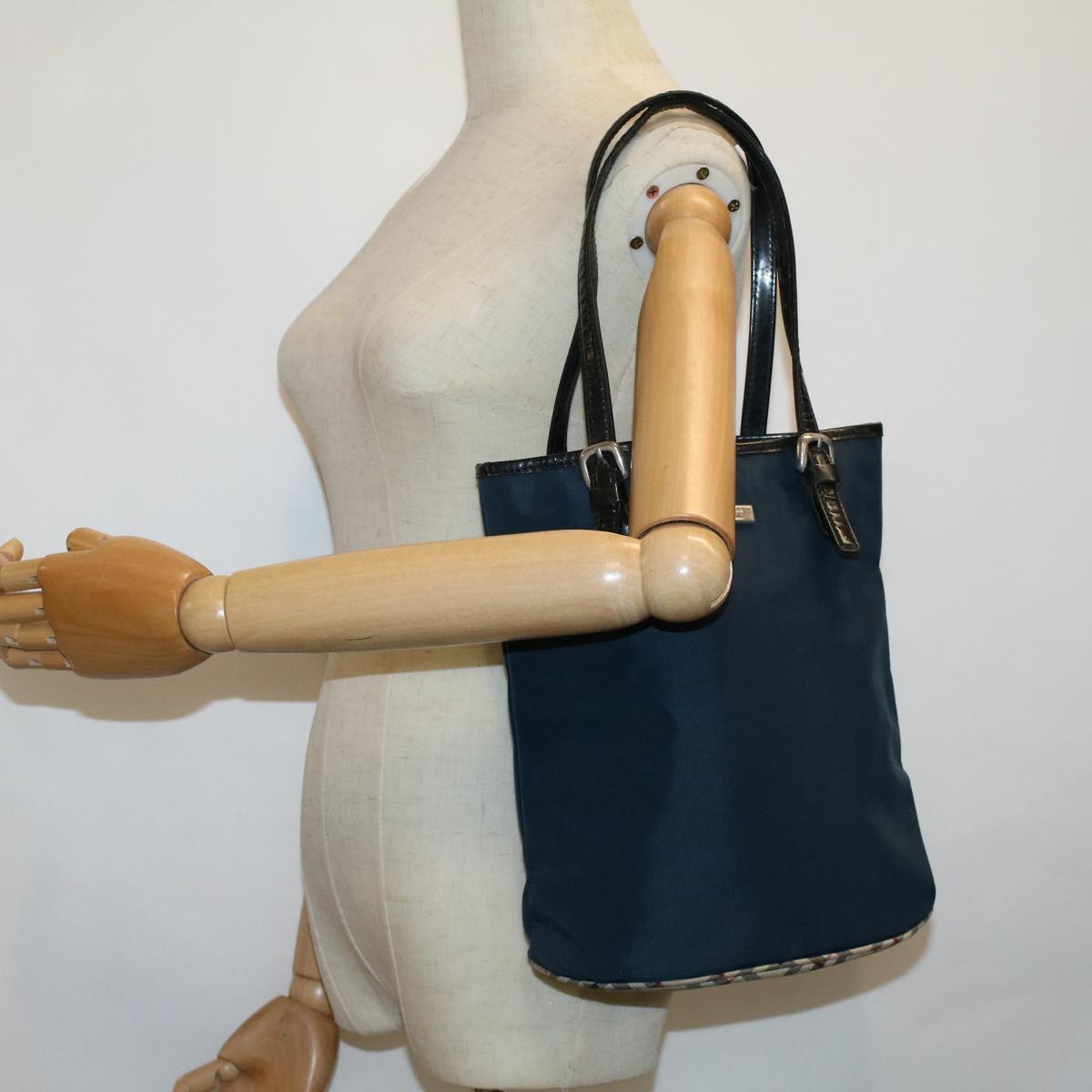 BURBERRY Nova Check Shoulder Bag Nylon Leather Navy Beige Auth bs8926