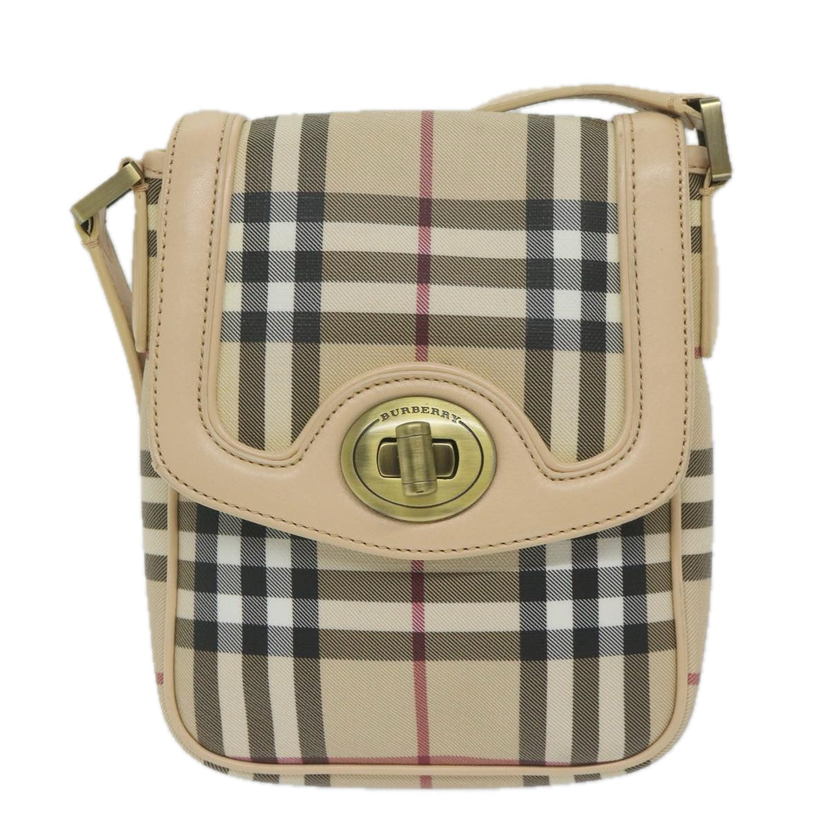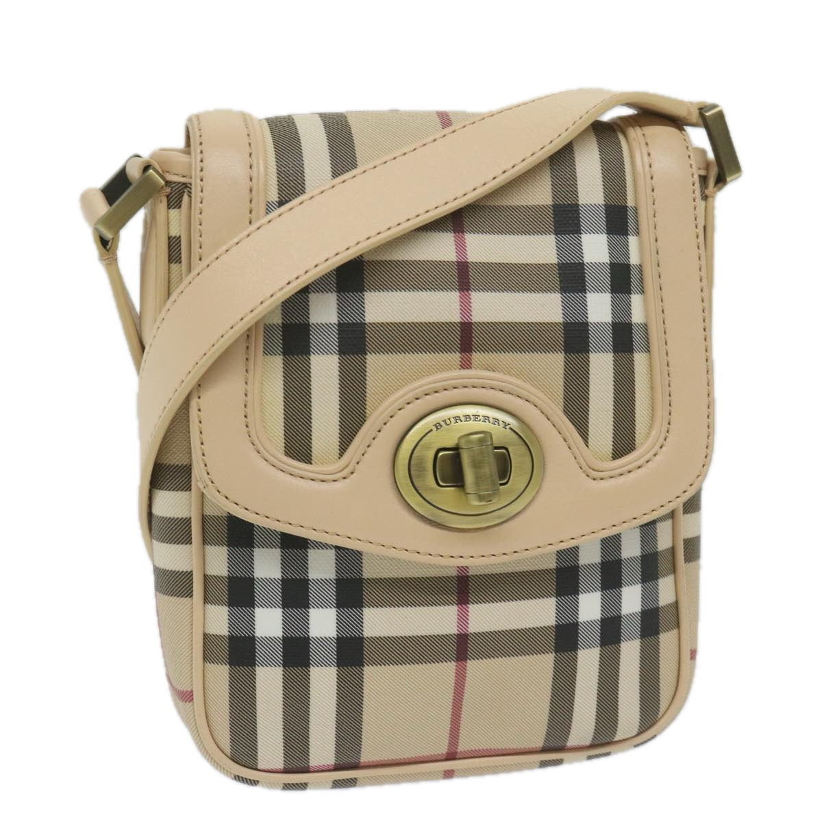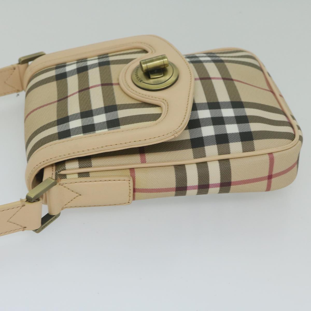 BURBERRY Nova Check Shoulder Bag PVC Leather Beige Auth 60497