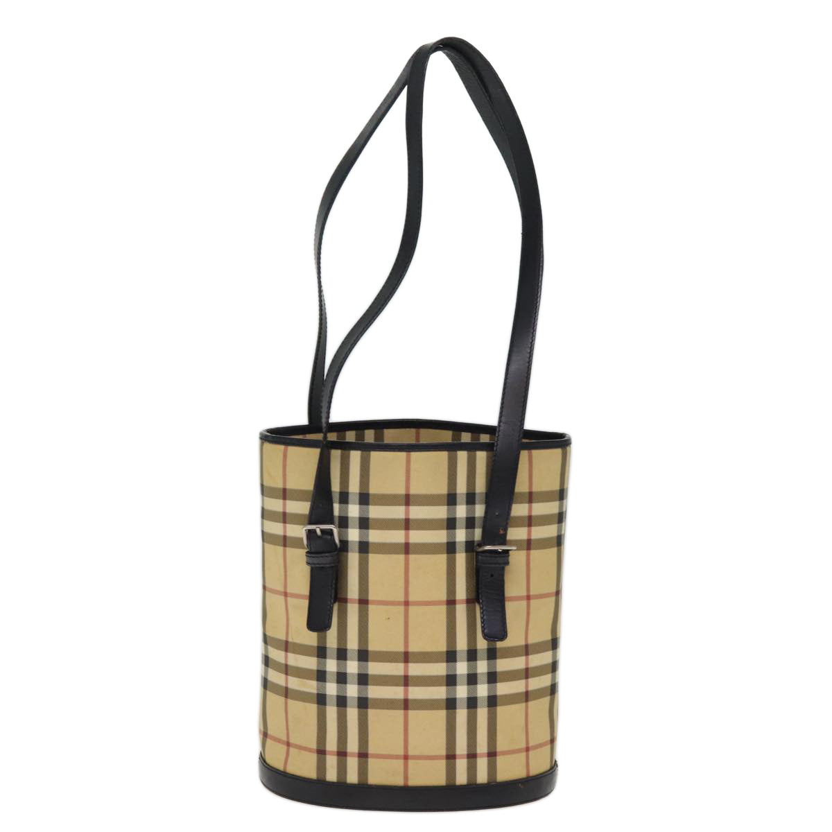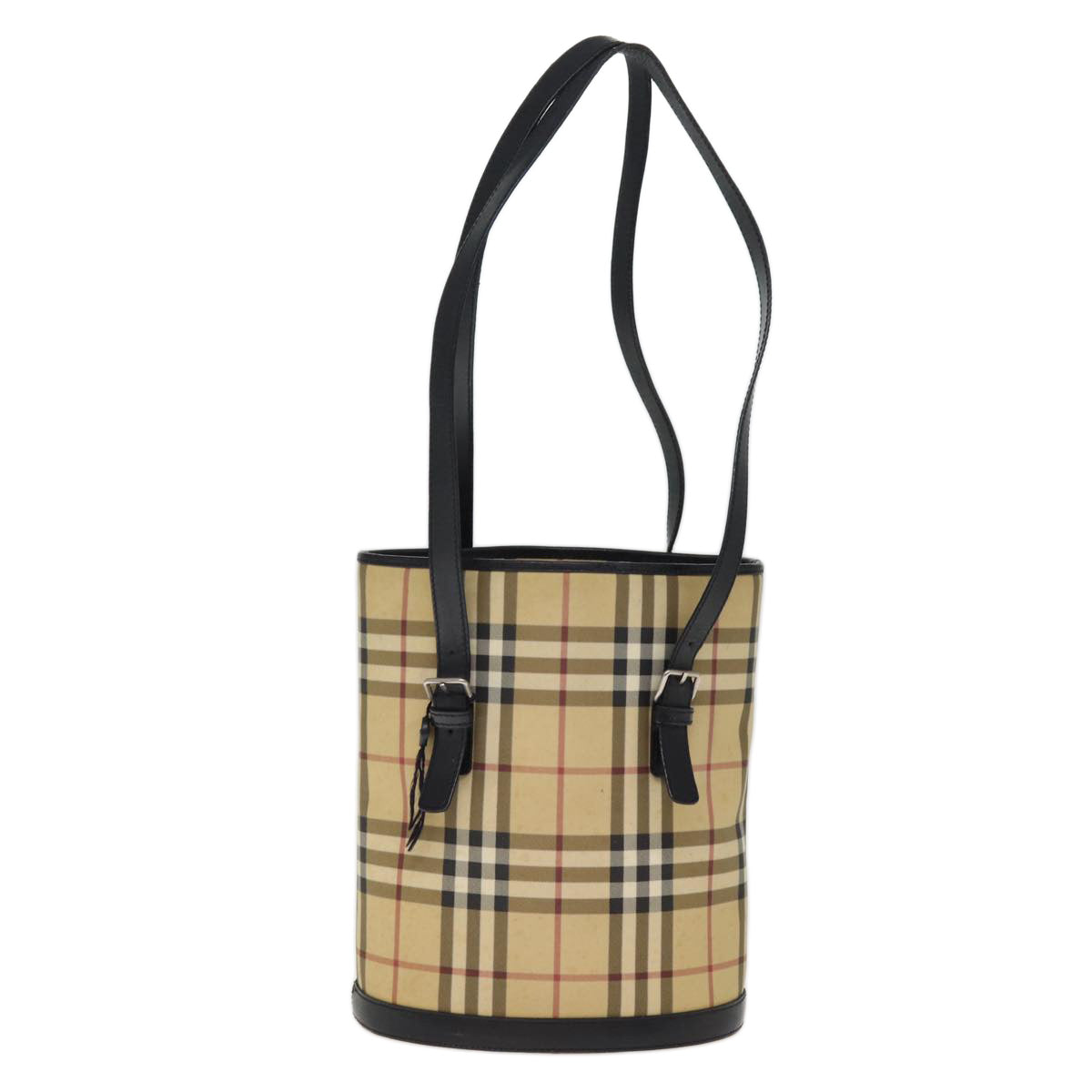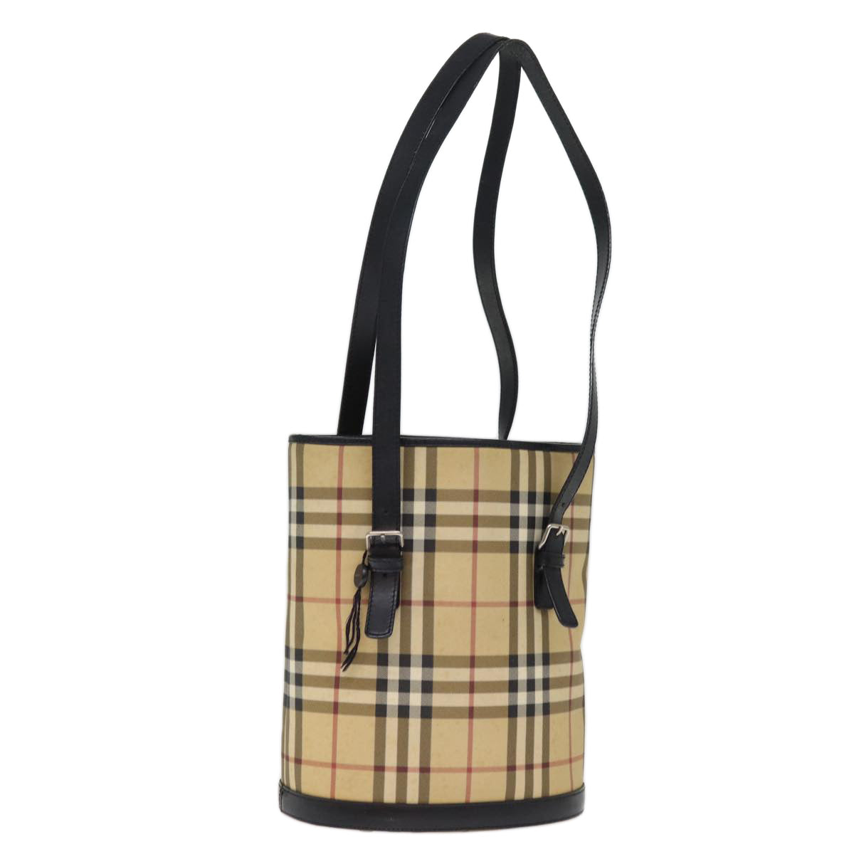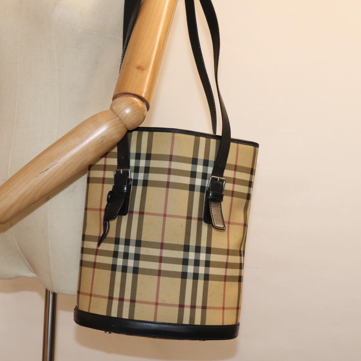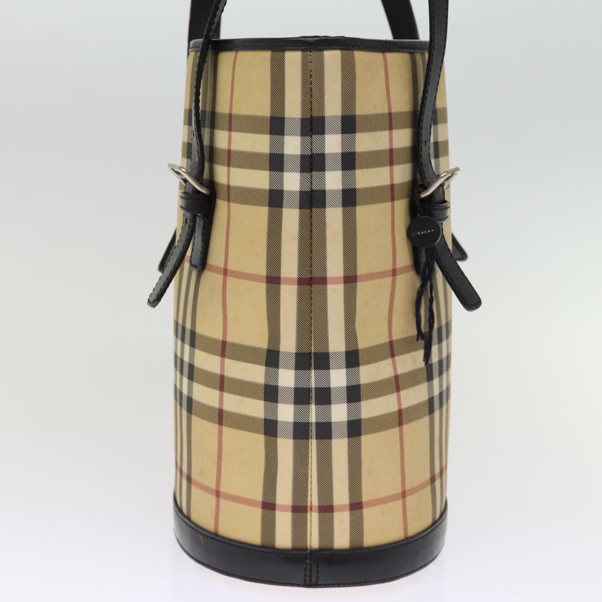 BURBERRY Nova Check Shoulder Bag PVC Leather Beige Auth bs14740