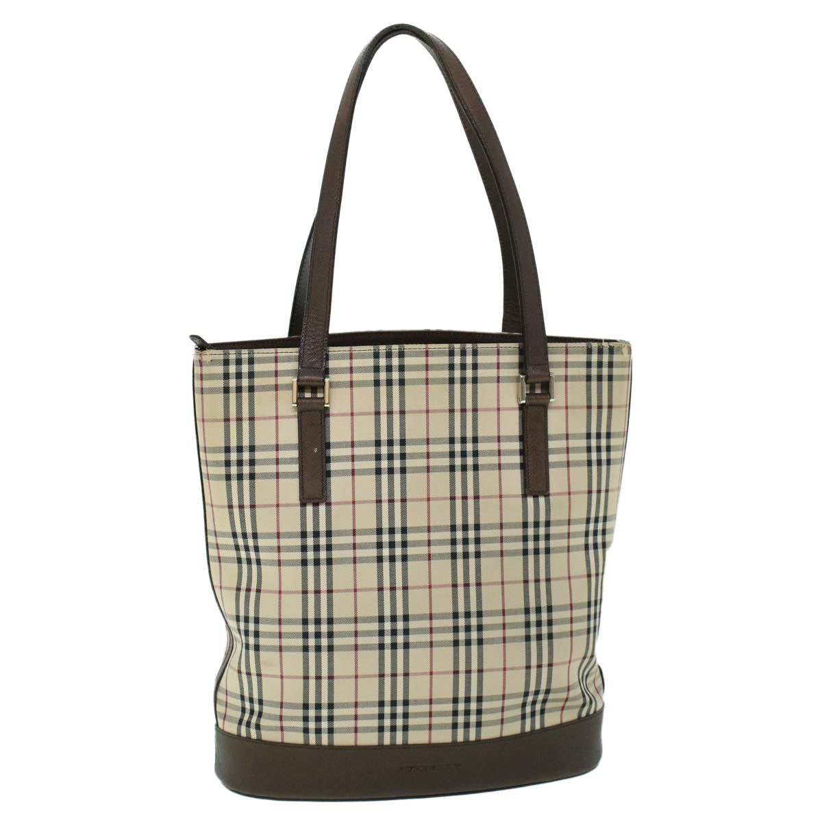 BURBERRY Nova Check Tote Bag Canvas Leather Beige Brown Auth 54025