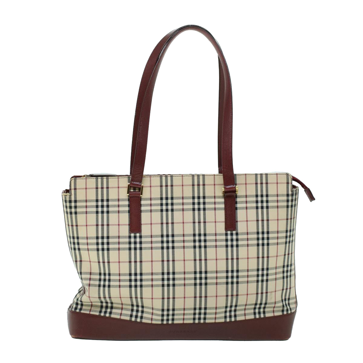 BURBERRY Nova Check Tote Bag Canvas Leather Beige Red Auth 54022
