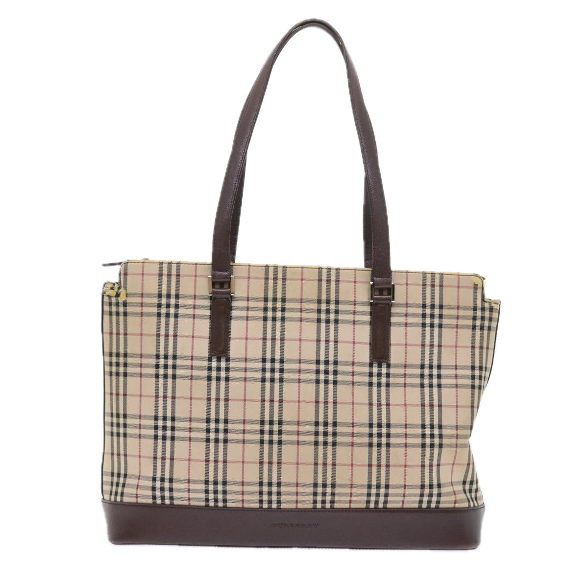 BURBERRY Nova Check Tote Bag Nylon Canvas Beige Auth 56398