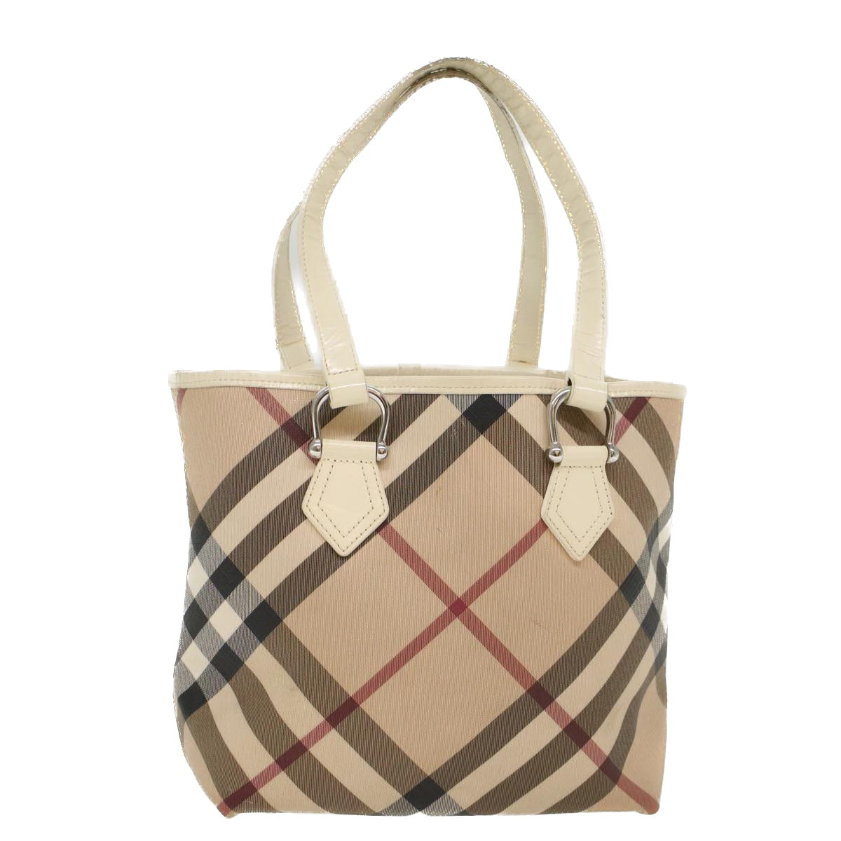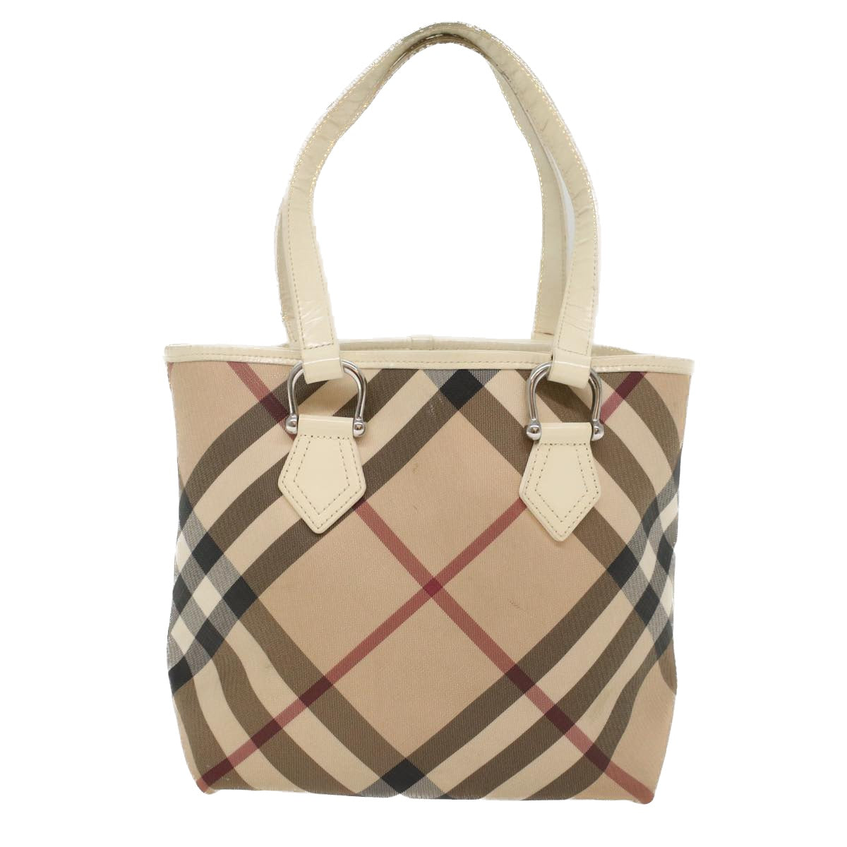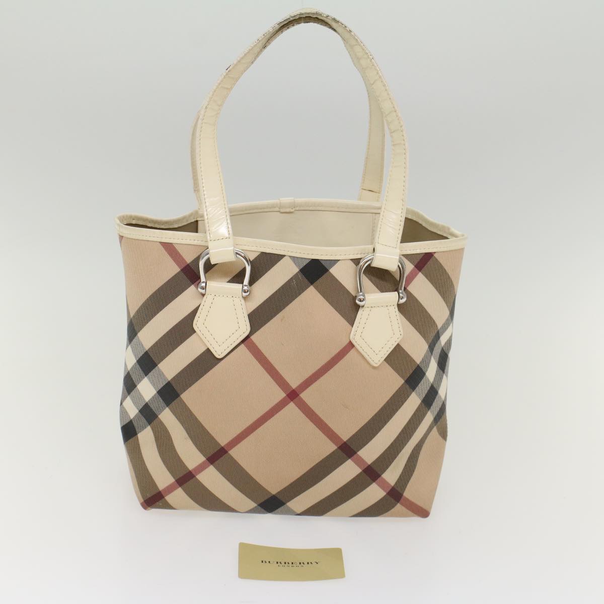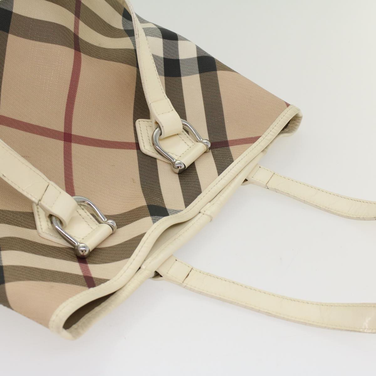 BURBERRY Nova Check Tote Bag PVC Leather Beige Auth 51455