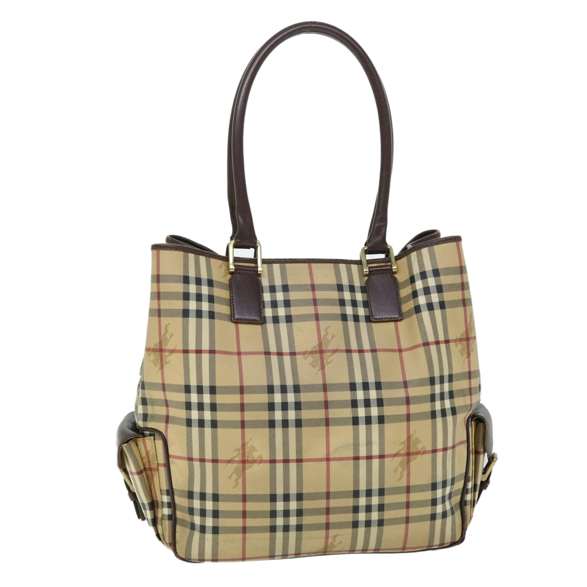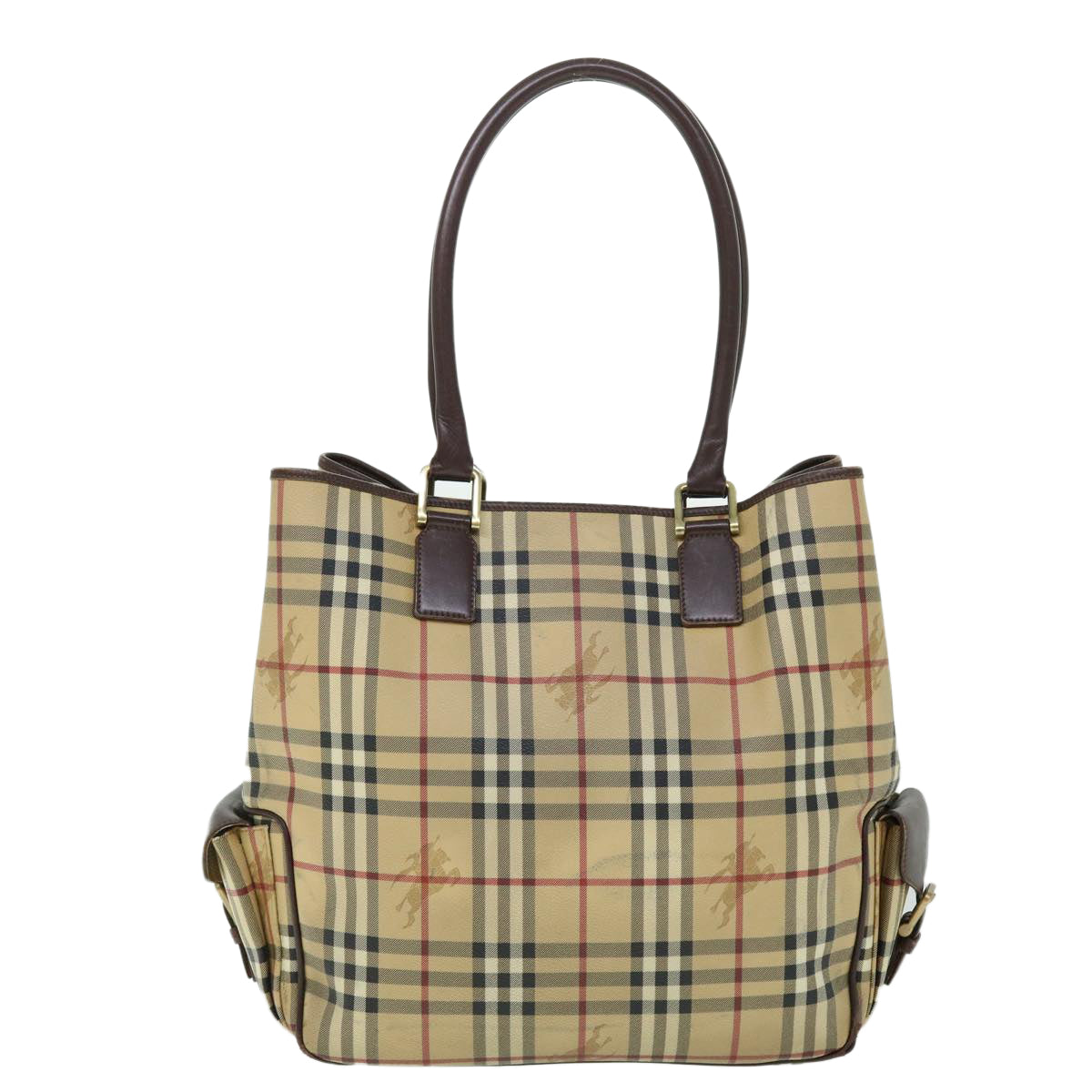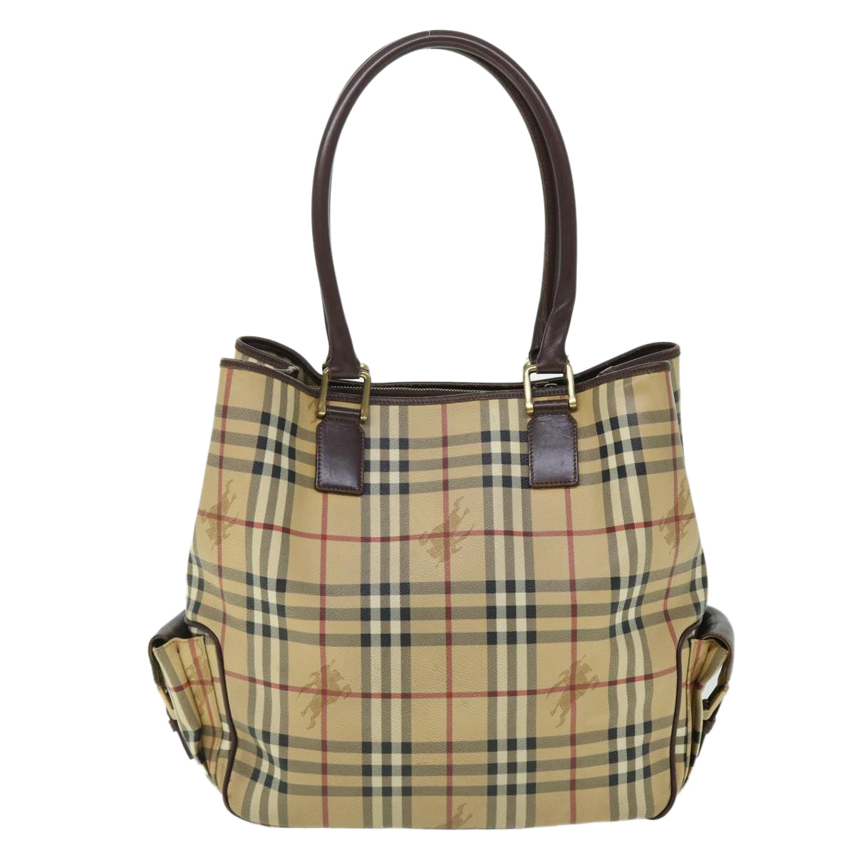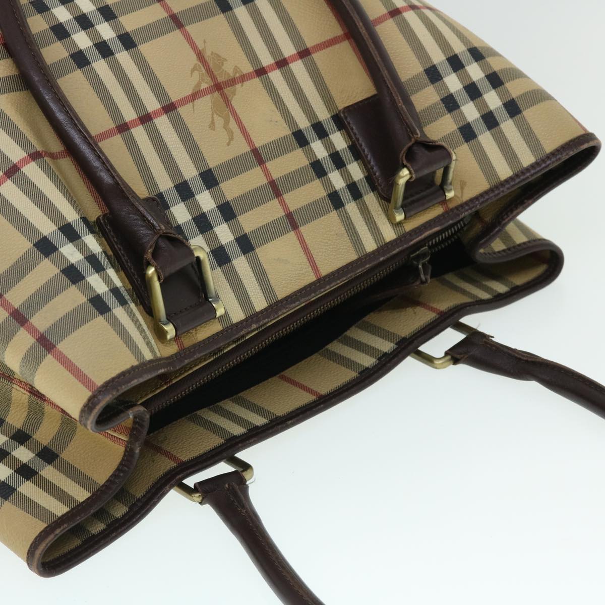 BURBERRY Nova Check Tote Bag PVC Leather Beige Brown Auth 52765