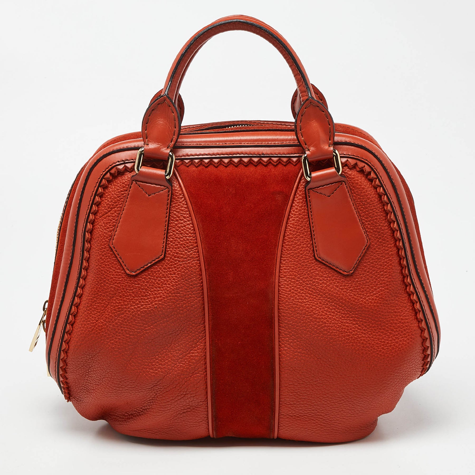 BURBERRY Orange Leather and Suede Tassel Satchel