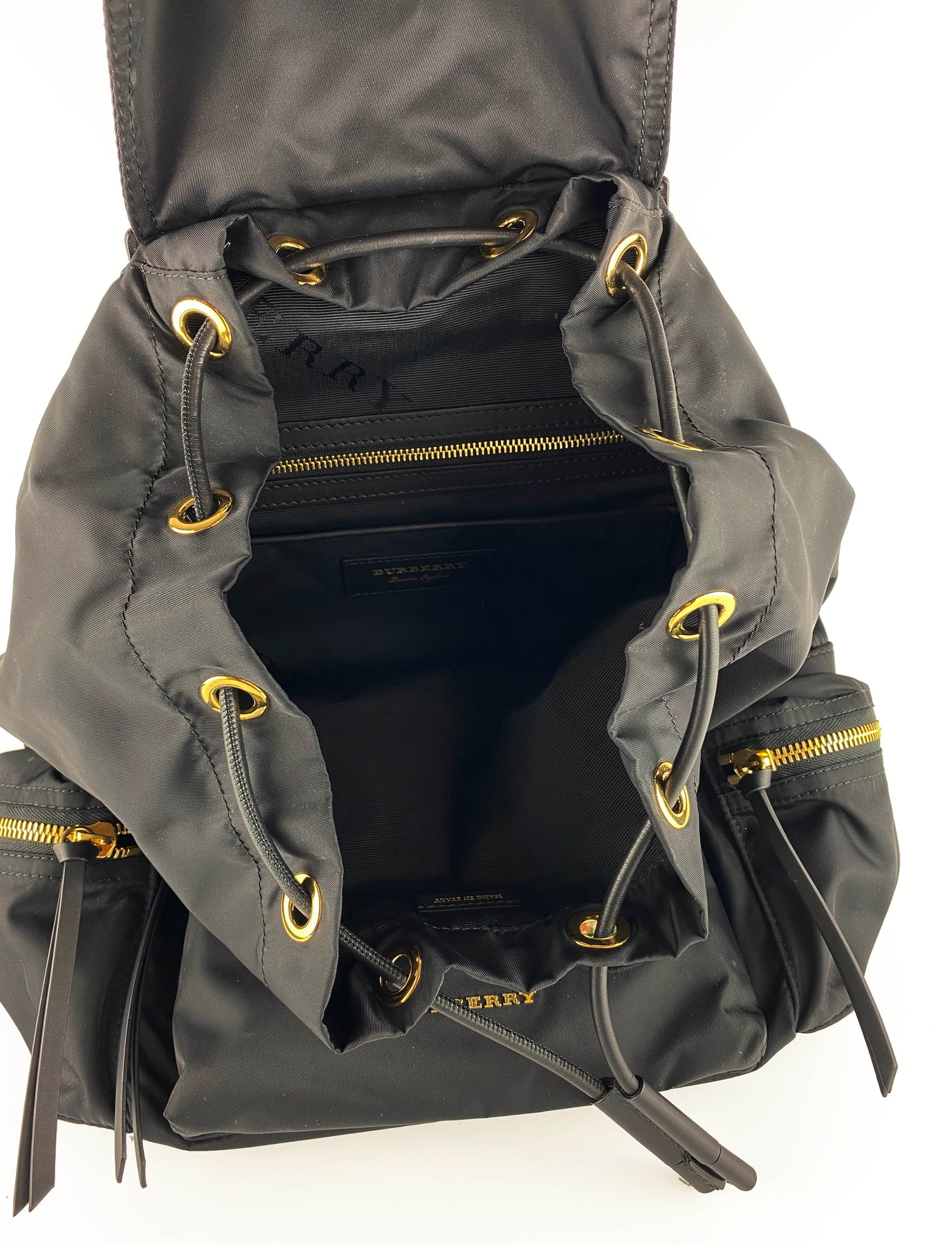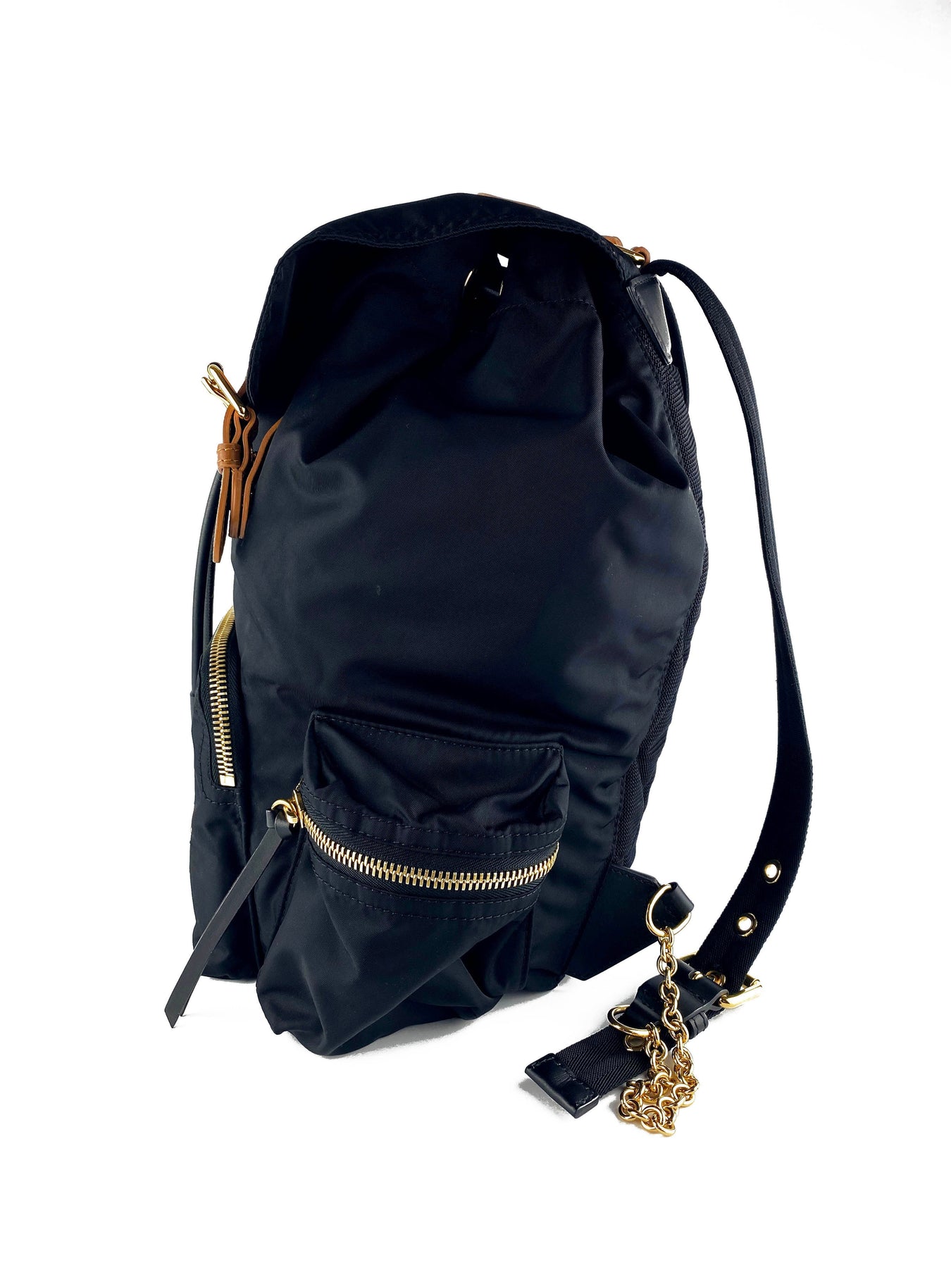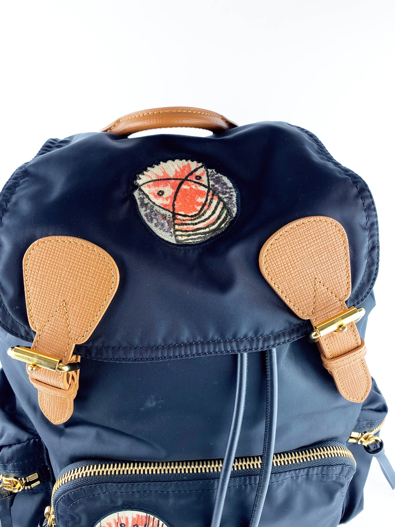 Description : Effortlessly cool and slick nylon backpack with appliqued patches. In excellent condition.