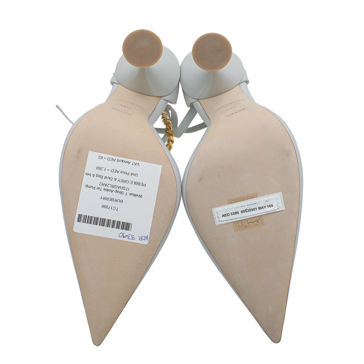 Burberry Pebble Grey Wellton T Strap Ankle Tie Pump 38.5
