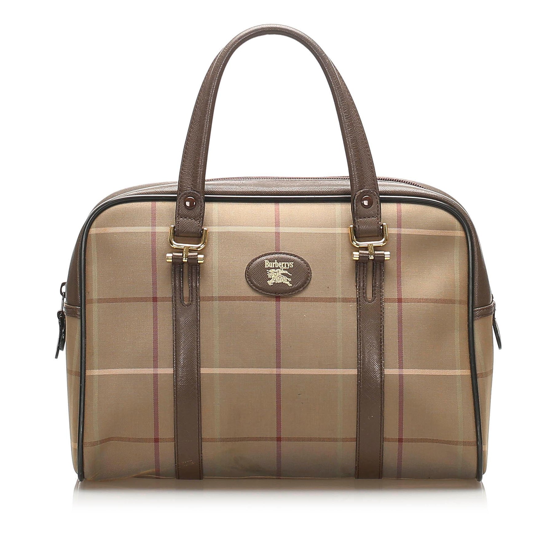 Burberry Plaid Canvas Boston Bag (SHG-12139)