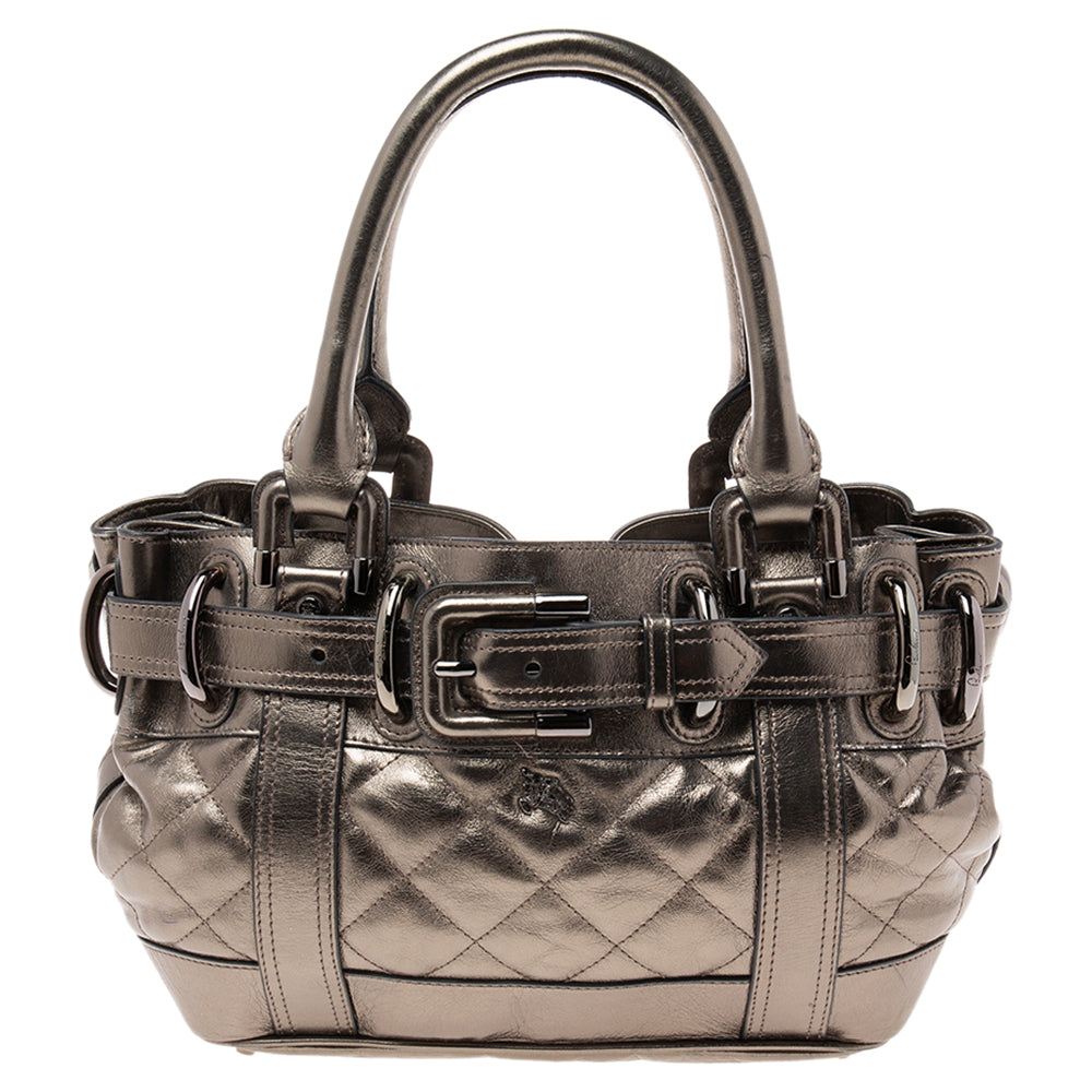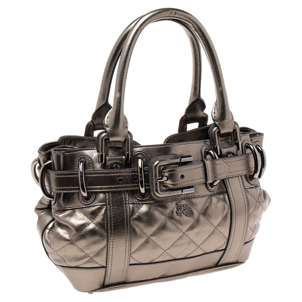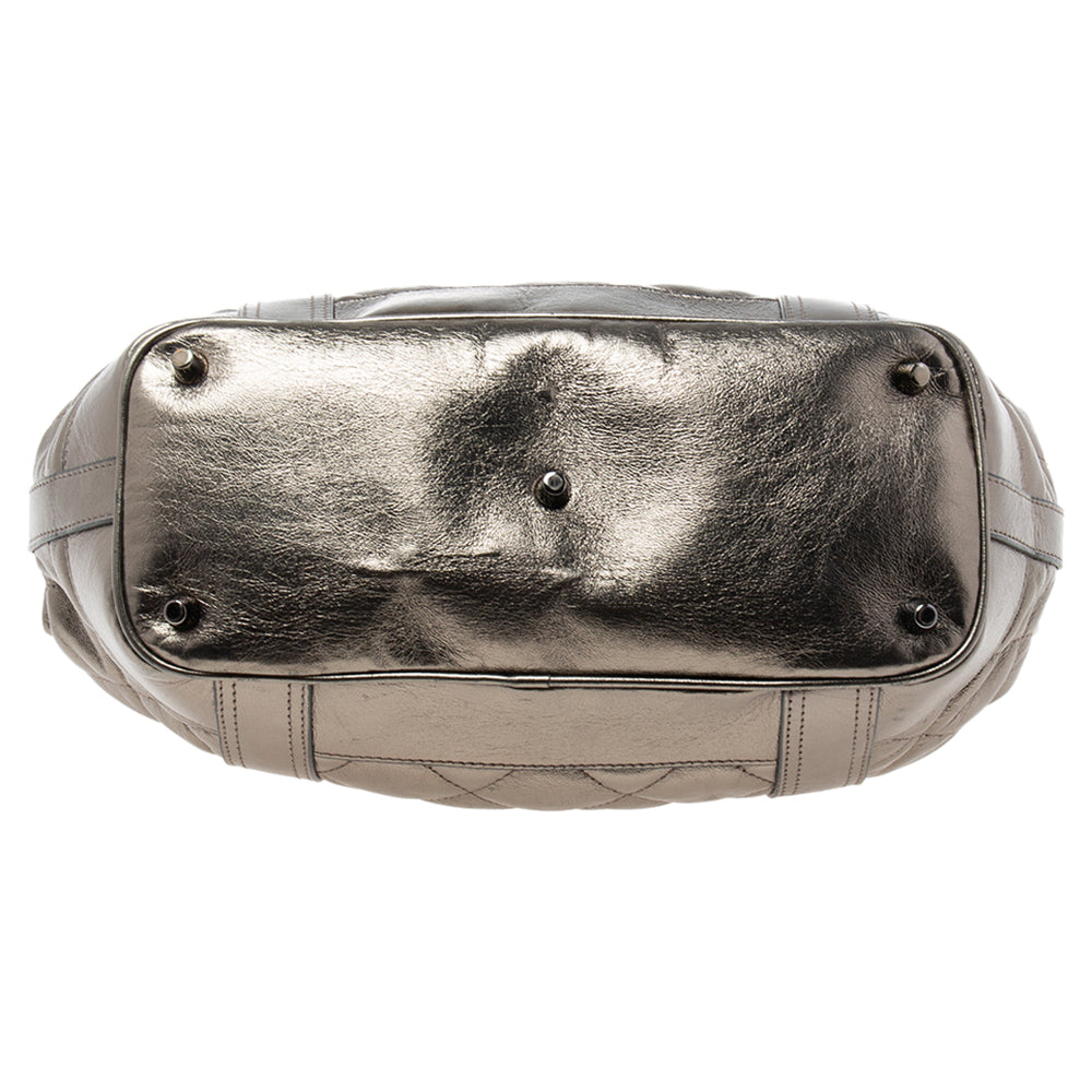 BURBERRY PRORSUM Metallic Gunmetal Quilted Leather Beaton Tote