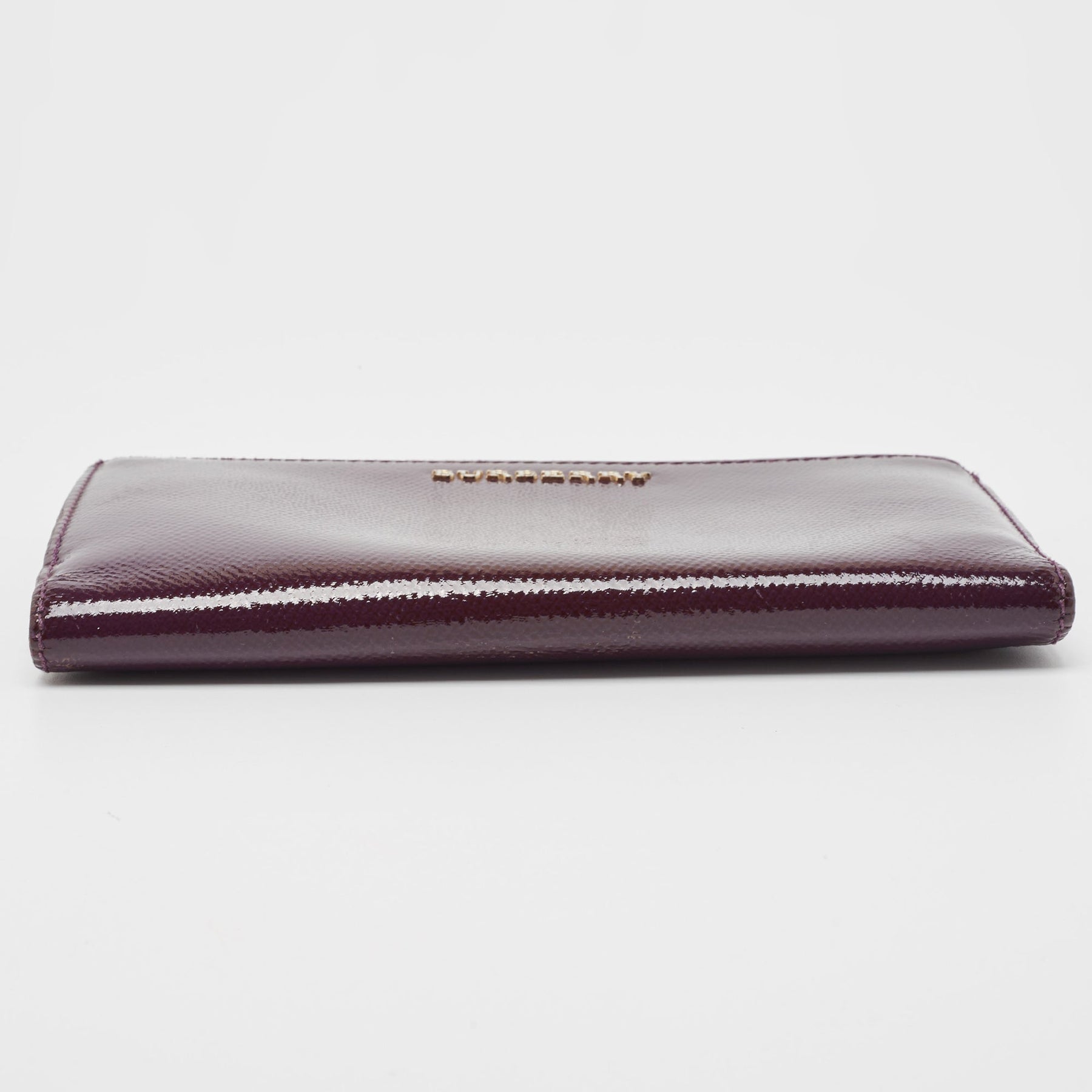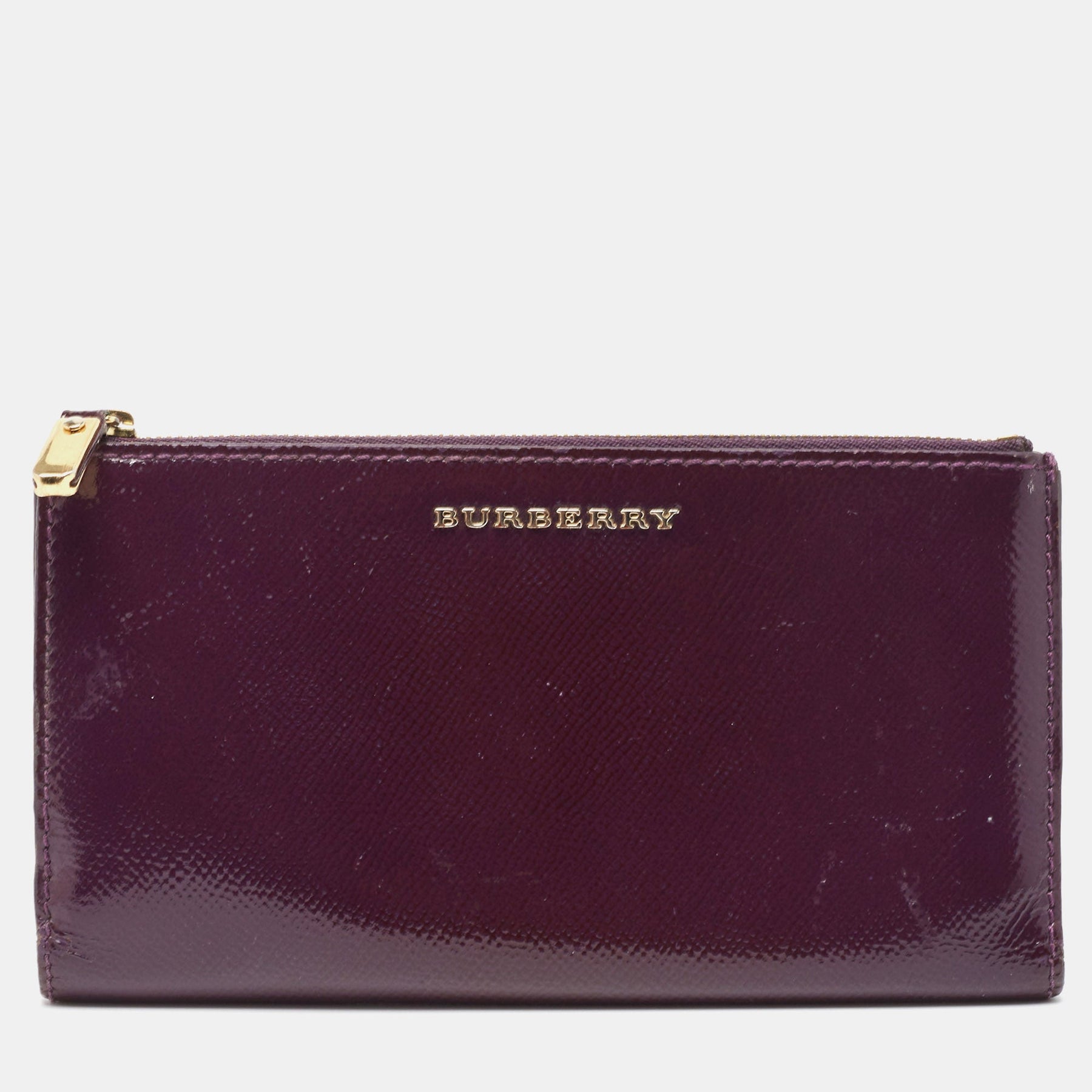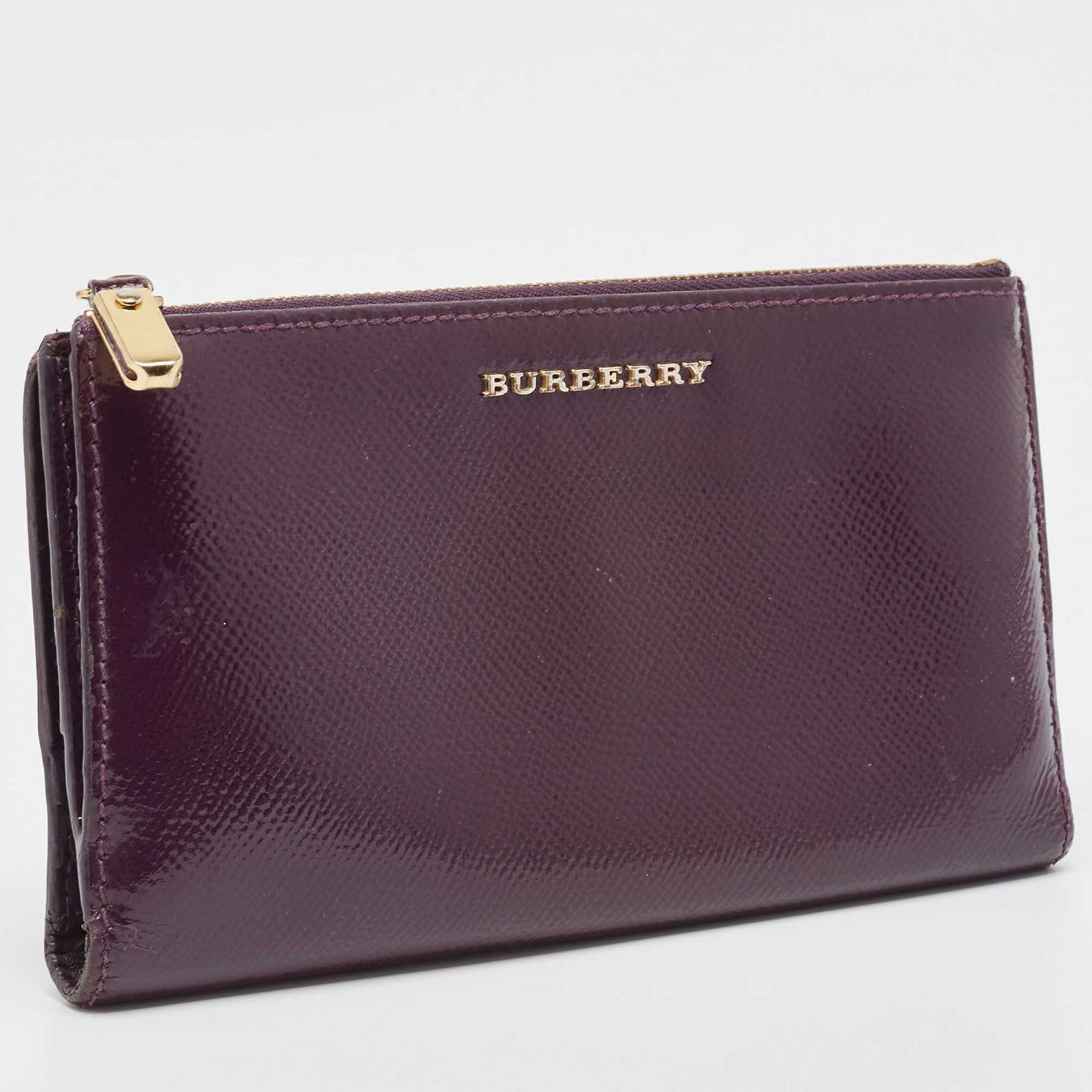 BURBERRY Purple Patent Leather Zip Bifold Wallet